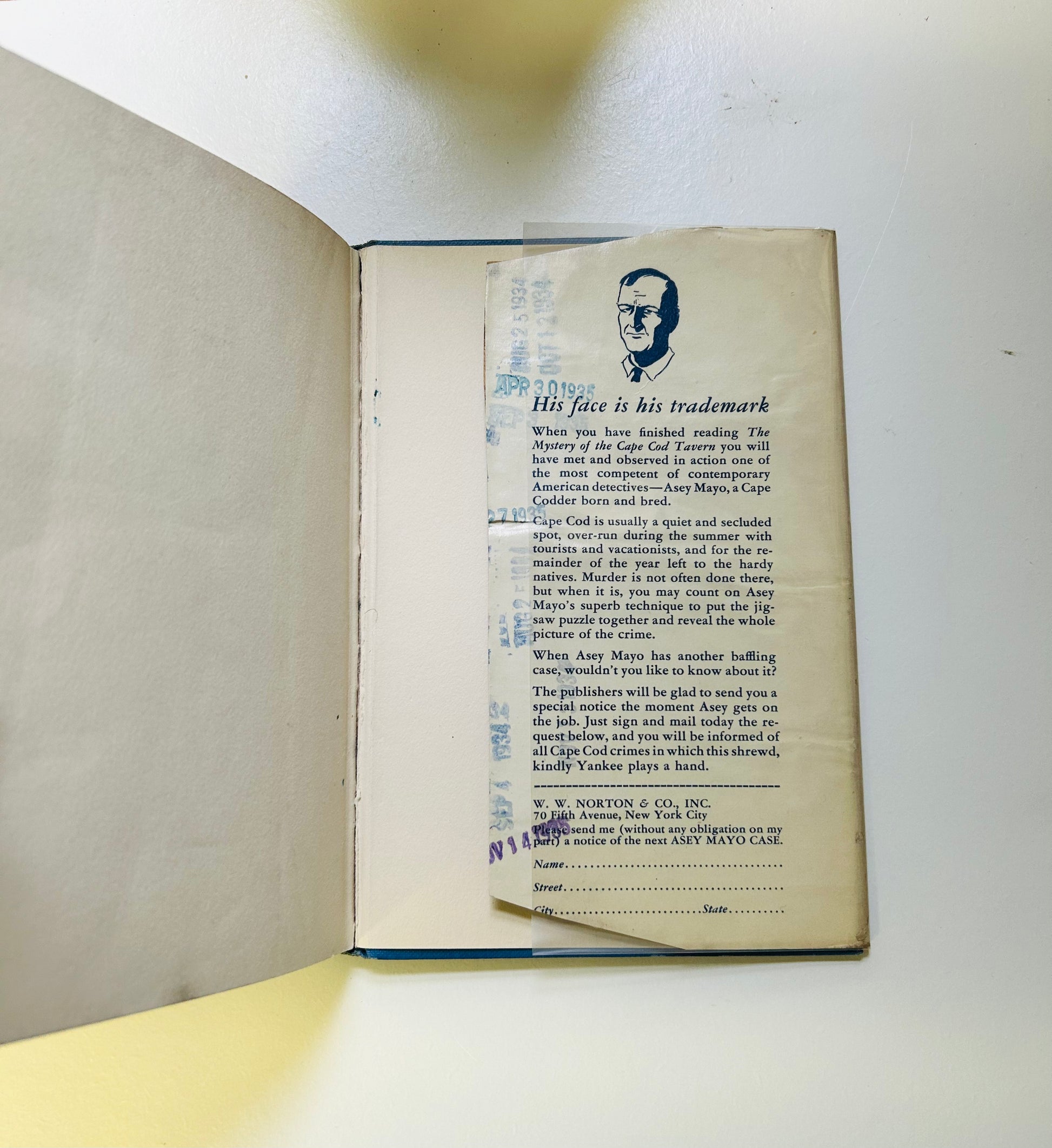 "Author's fourth book that features her famous crime-solver, Asey Mayo. A near fine, bight copy in a stunning, bright dust jacket. During this adventure Asey investigates the murder of Eve Prence, a woman writer with a spectacular past, who is found murdered in the Cape Cod Tavern. Eve had run this as a Bohemian resort for herself and her friends. An exceptional copy of a title that is scarce in any edition."