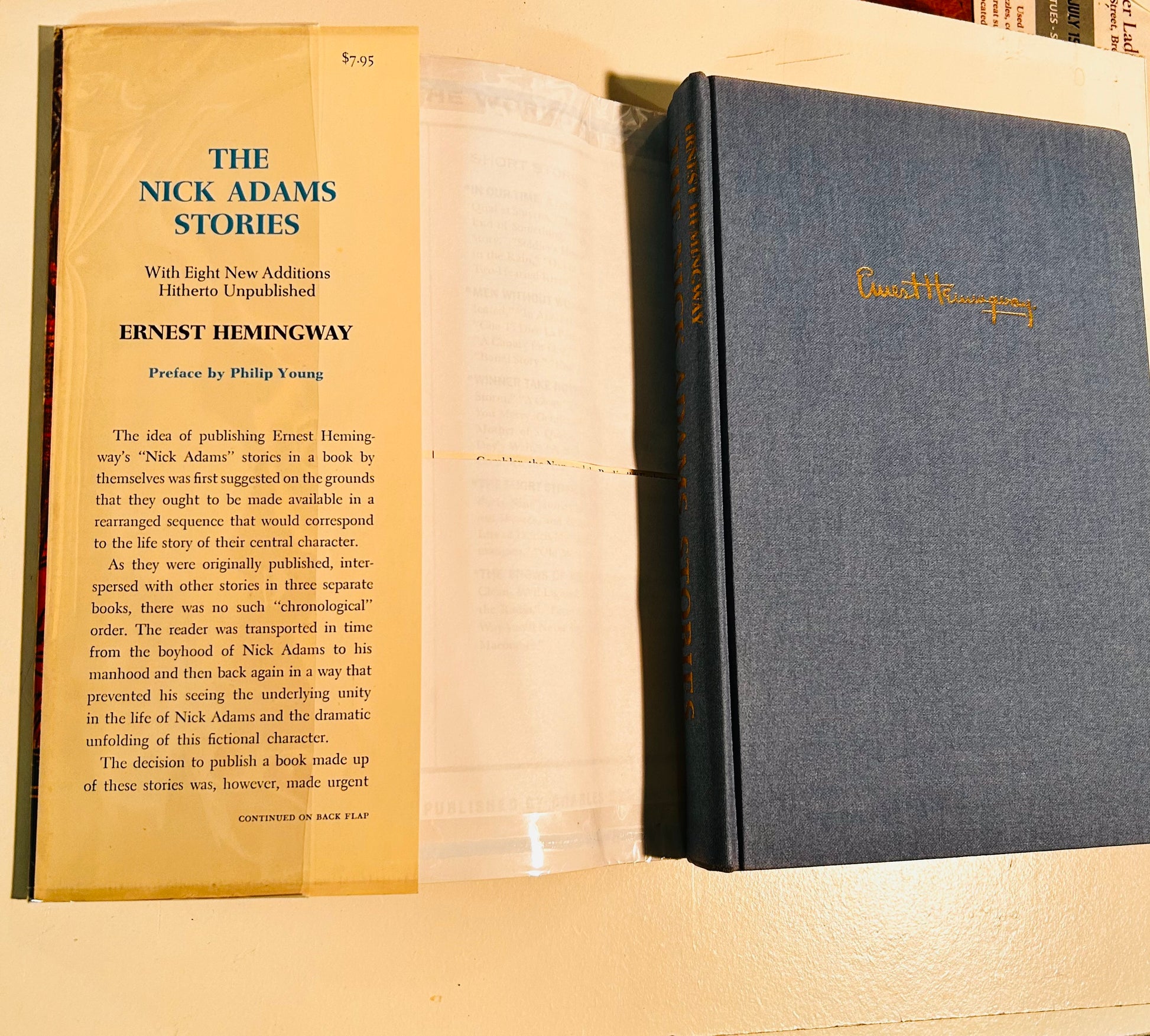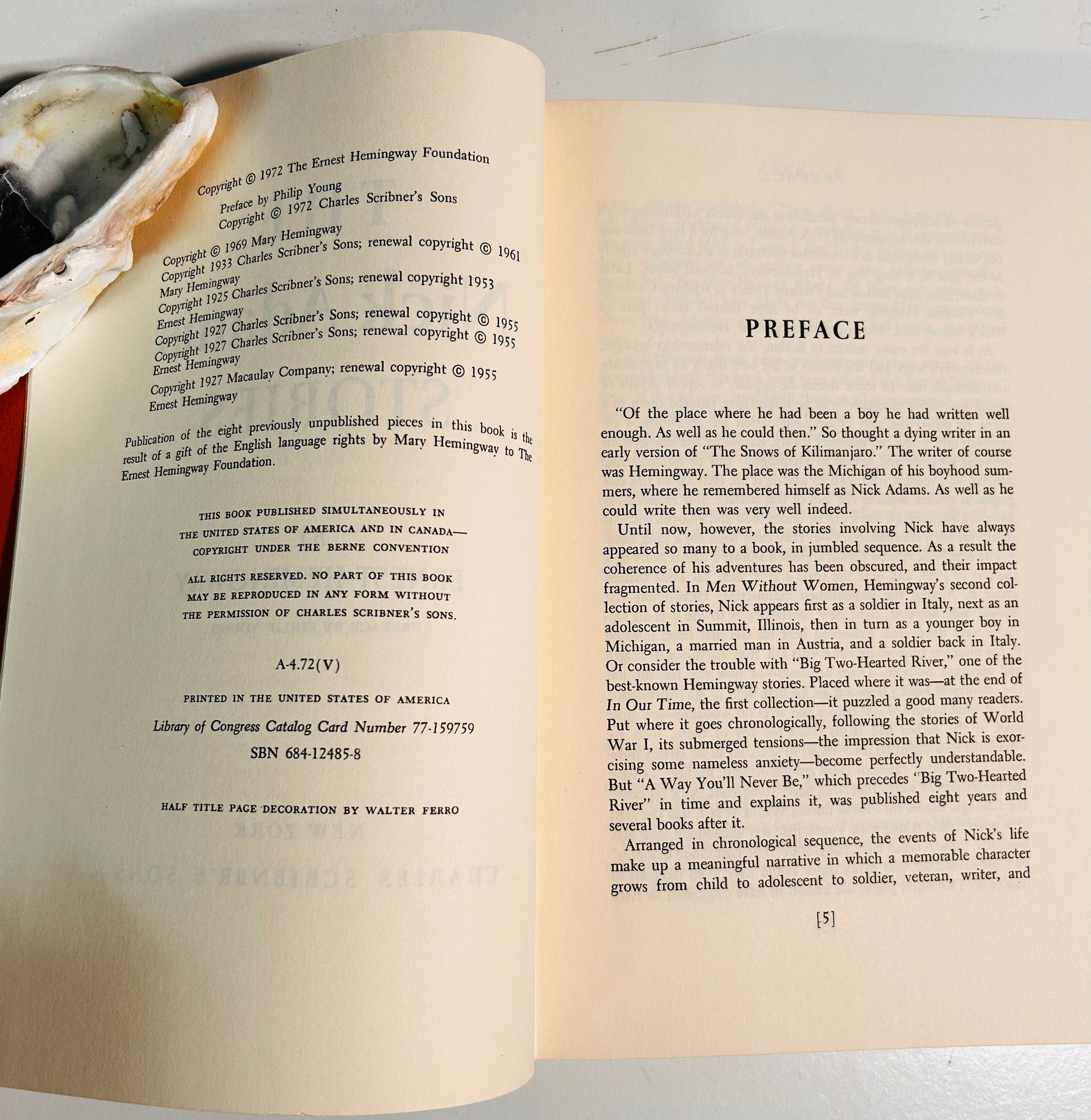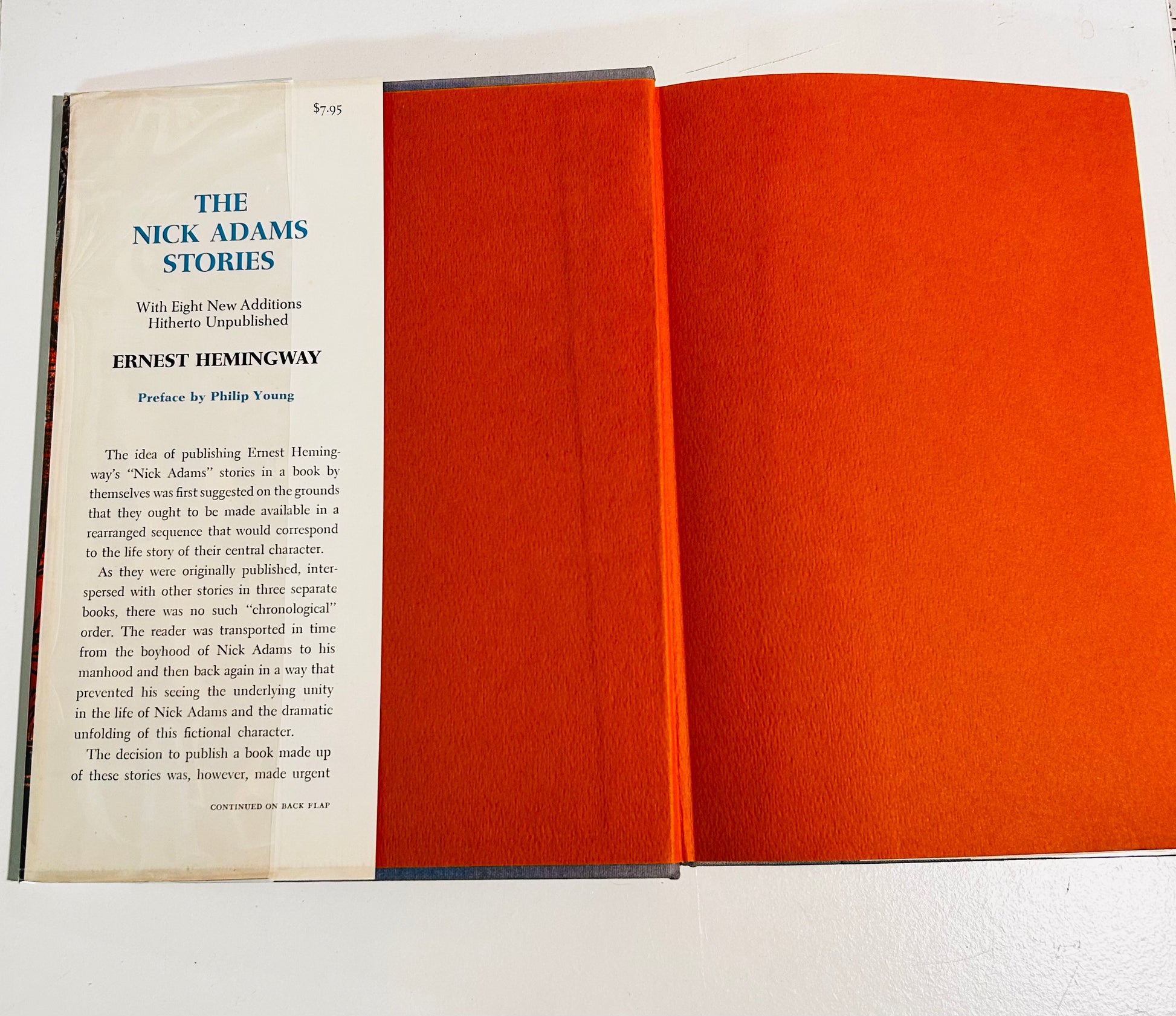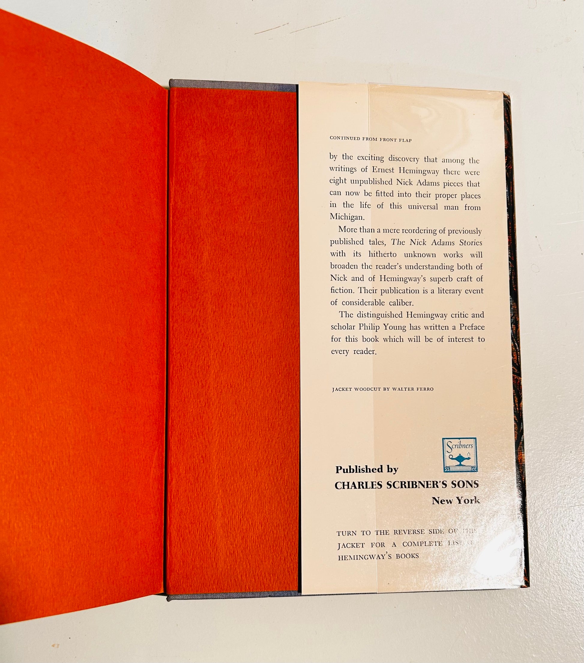 Ernest Hemingway. First edition. New York: Charles Scribner's Sons, 1972. Both unclipped dust jacket (in a mylar wrapper) and hardcover are in Near Fine condition. No writing or markings found in this well-preserved edition, 268 pp. Jacket has original price $7.95 on inside flap. Dust jacket design by Walter Ferro. Preface by Philip Young. This is a collectible copy.