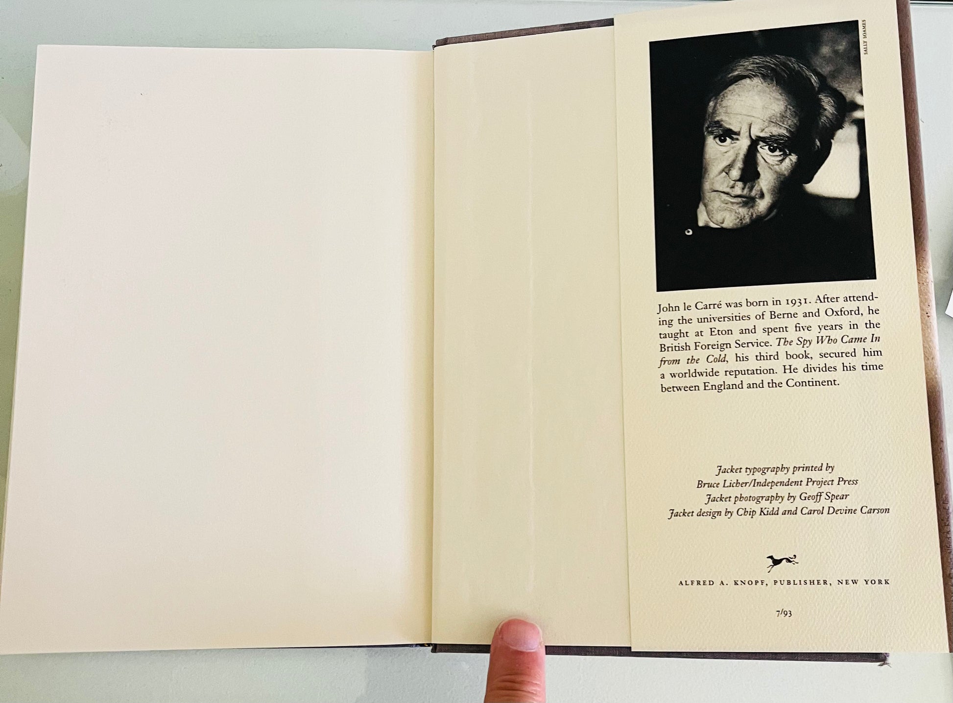 John le Carre. Stated first American edition. BOMC edition. New York: Alfred A. Knopf, 1993. An unclipped jacket designed by Chip Kidd and Carol Devine Carson. No writing or markings in the book, 429 pp. some small chipping on top of jacket. This was the authors 14th novel and a great TV mini series.