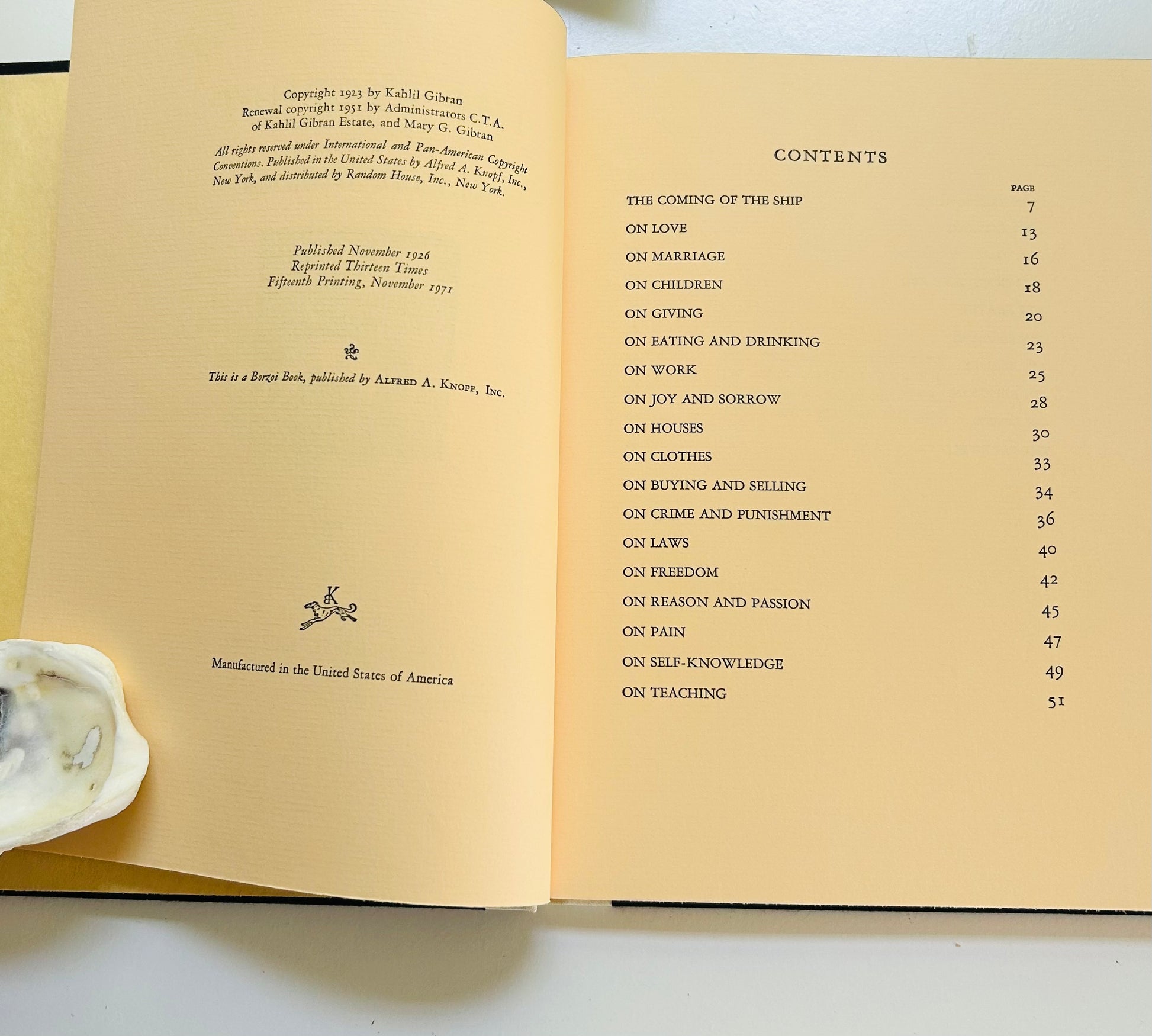 Kahlil Gibran. Later edition, fifteenth printing. New York: Alfred A. Knopf, 1971. Housed in a beautiful slipcase. The slipcase is in Very Good condition while the book is in Near Fine condition. No writing or markings found in this well-preserved copy, 84 pp. Collectible in slipcase.