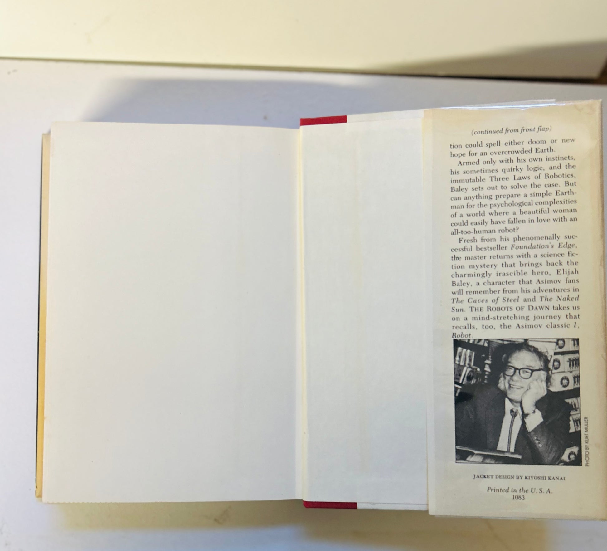 Isaac Asimov. Stated first edition. New York: Doubleday and Company, 1983. Both unclipped dust jacket, in a mylar protective wrapper, and hardcover are in Near Fine condition. No writing or markings found in the book, 419 pp. There are early signs of chipping on top of spine. Jacket designed by Kiyoshi Kanai.