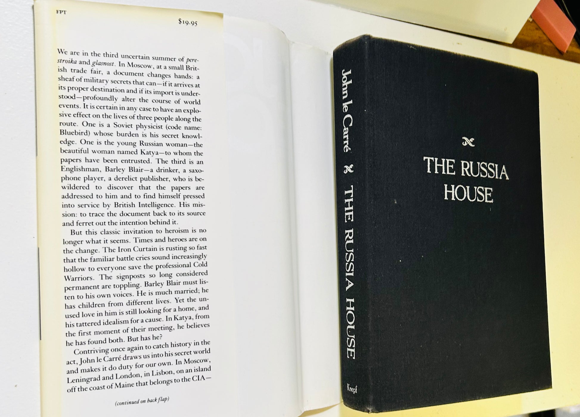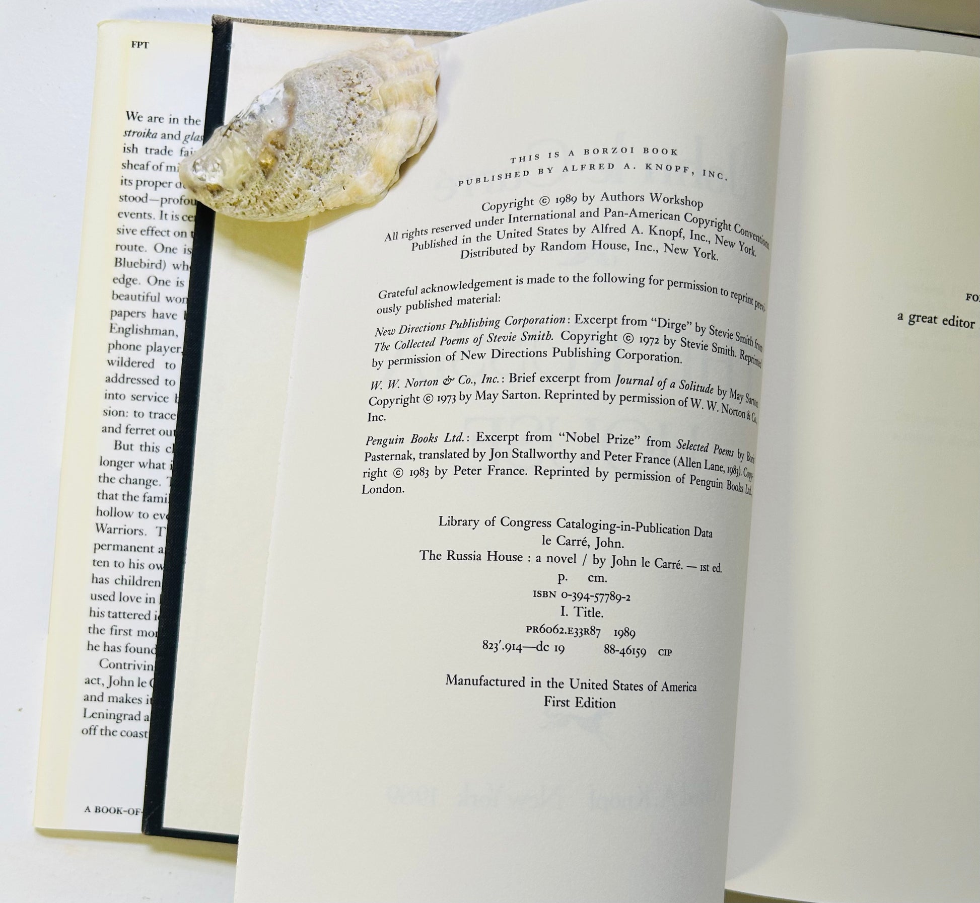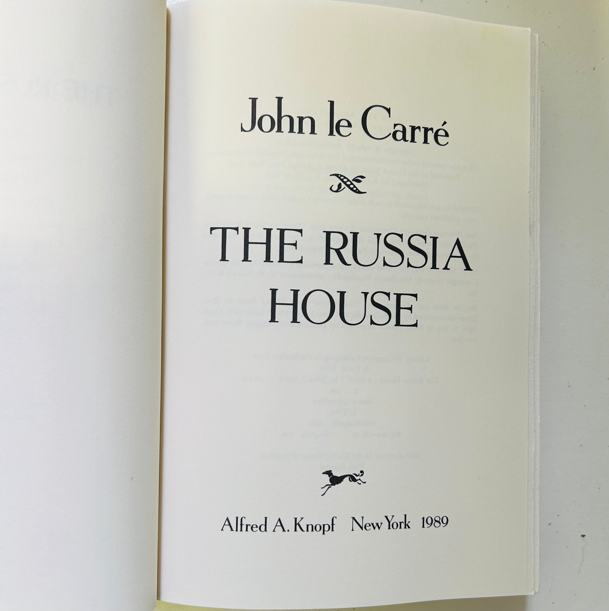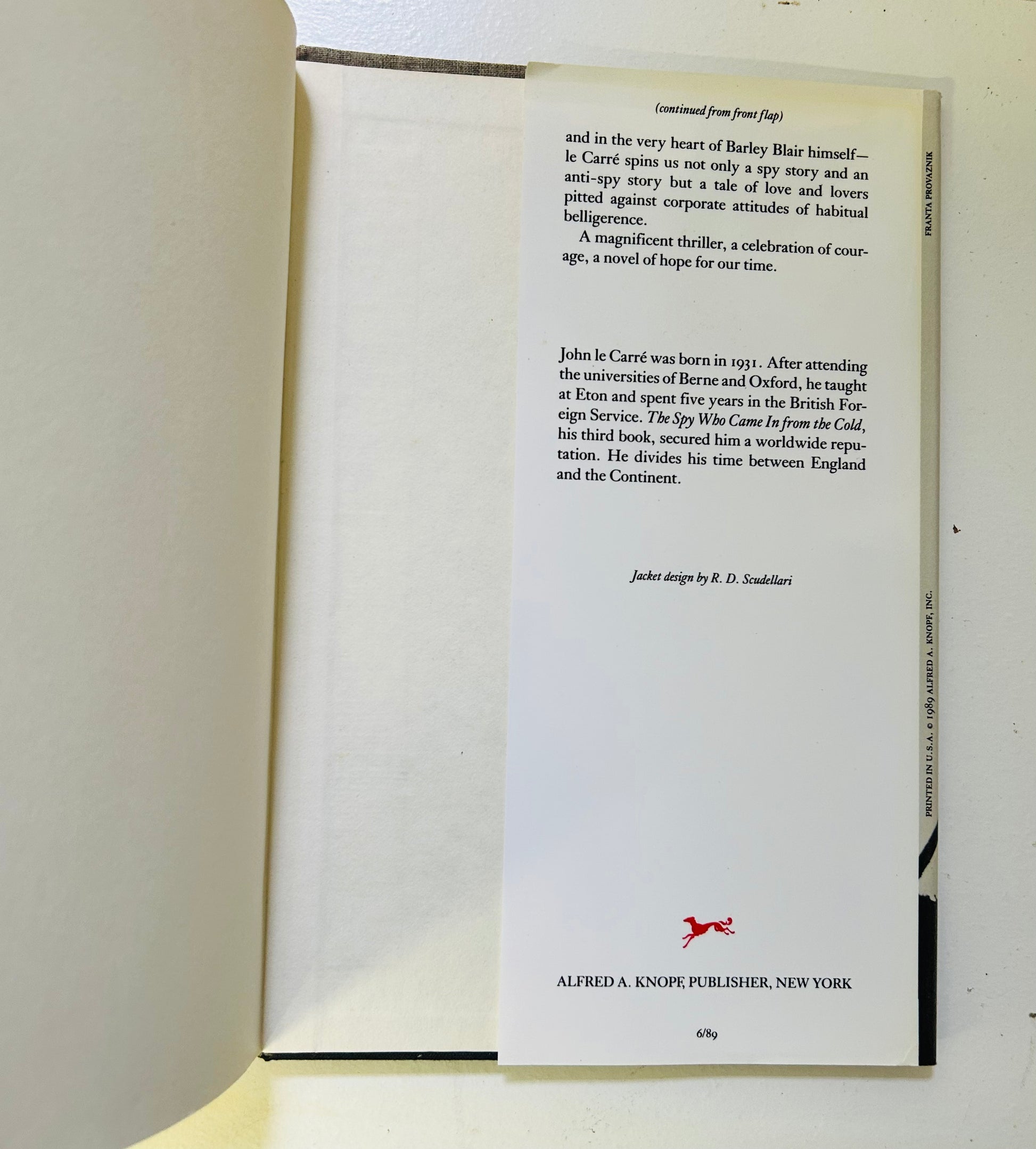 John le Carre. First American edition (stated). New York: Alfred A. Knopf, 1989. Both unclipped dust jacketj and hardcover are in Very Good+ No writing or markings in the book, 353 pp. Jacket design by RD Scudellari.