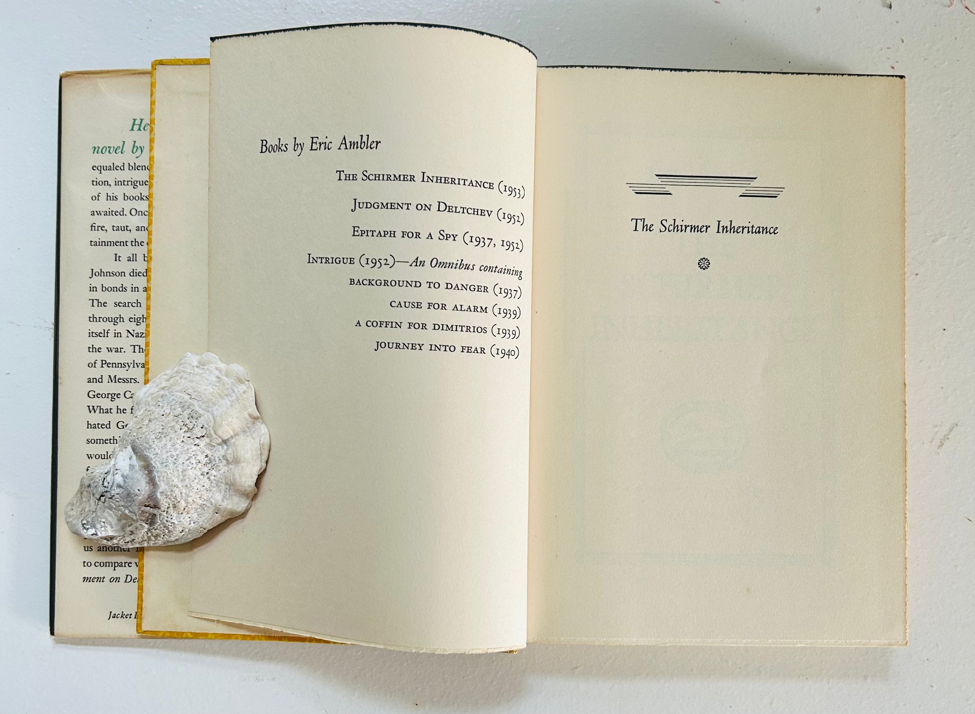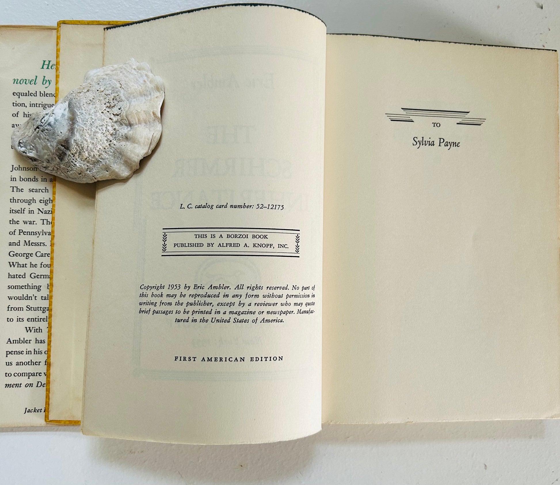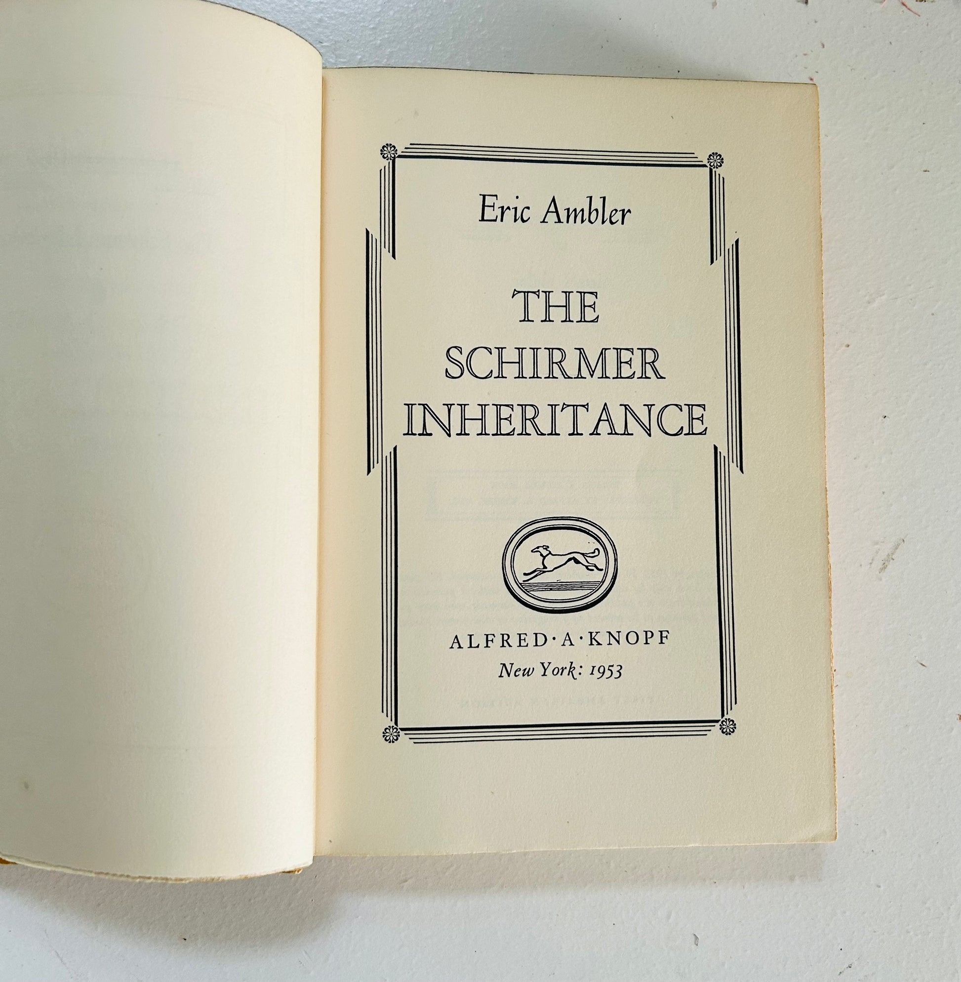 Eric Ambler. First American edition (stated). New York: Alfred A. Knopf, 1953. Both unclipped dust jacket, in a mylar protective wrapper, and hardcover are in Very Good+ condition. Jacket design by Jean Carlu and author's photo by Elliott Erwitt. No writing or markings in the book, 246 pp. In publisher's original yellow paper-covered boards printed in a design by W. A. Dwiggins resembling repeating rows of fleurs-de-lys, the spine lettered in black within an ivory field mimicking a paper label. Has some toning on the dust jacket.