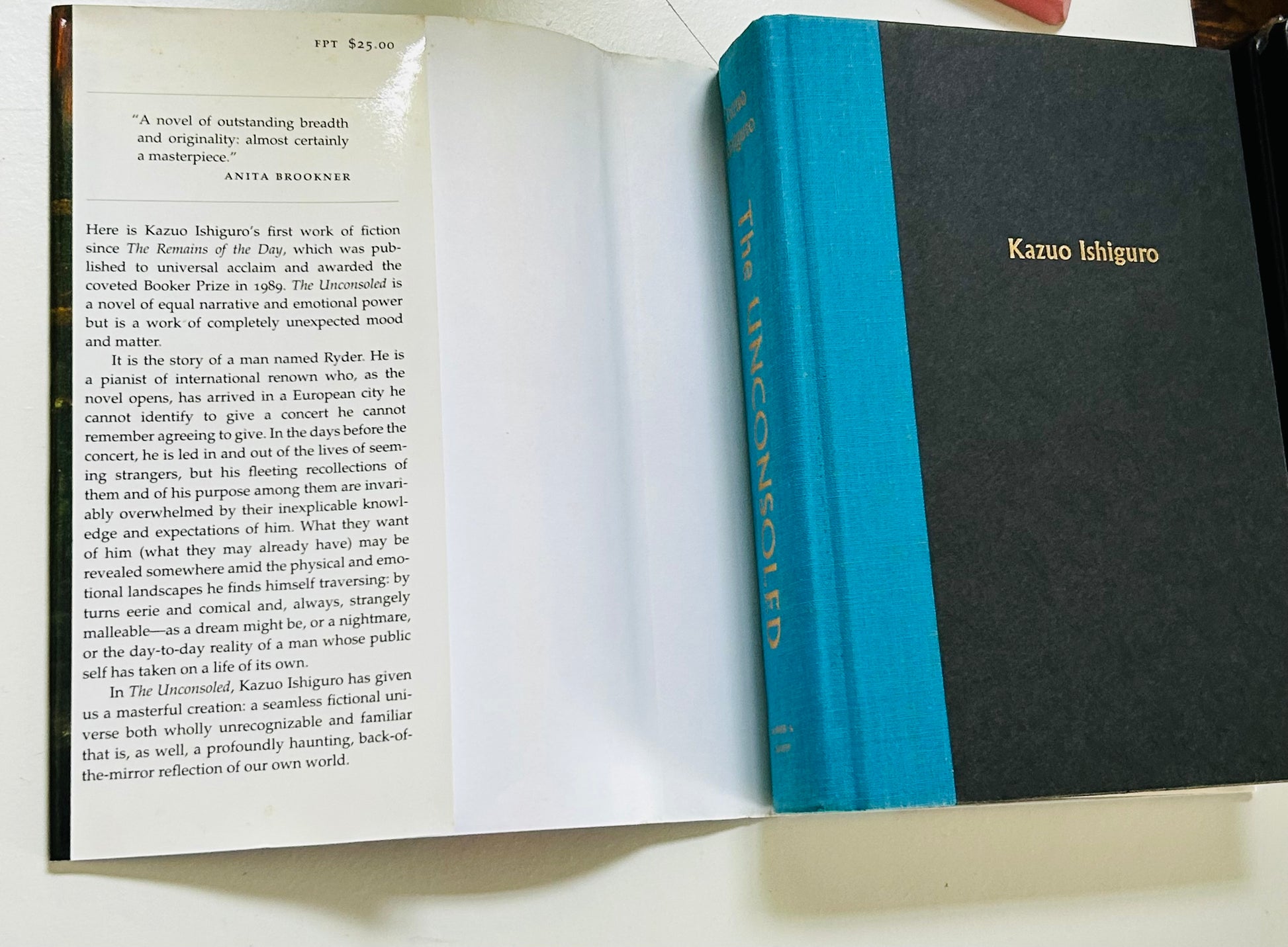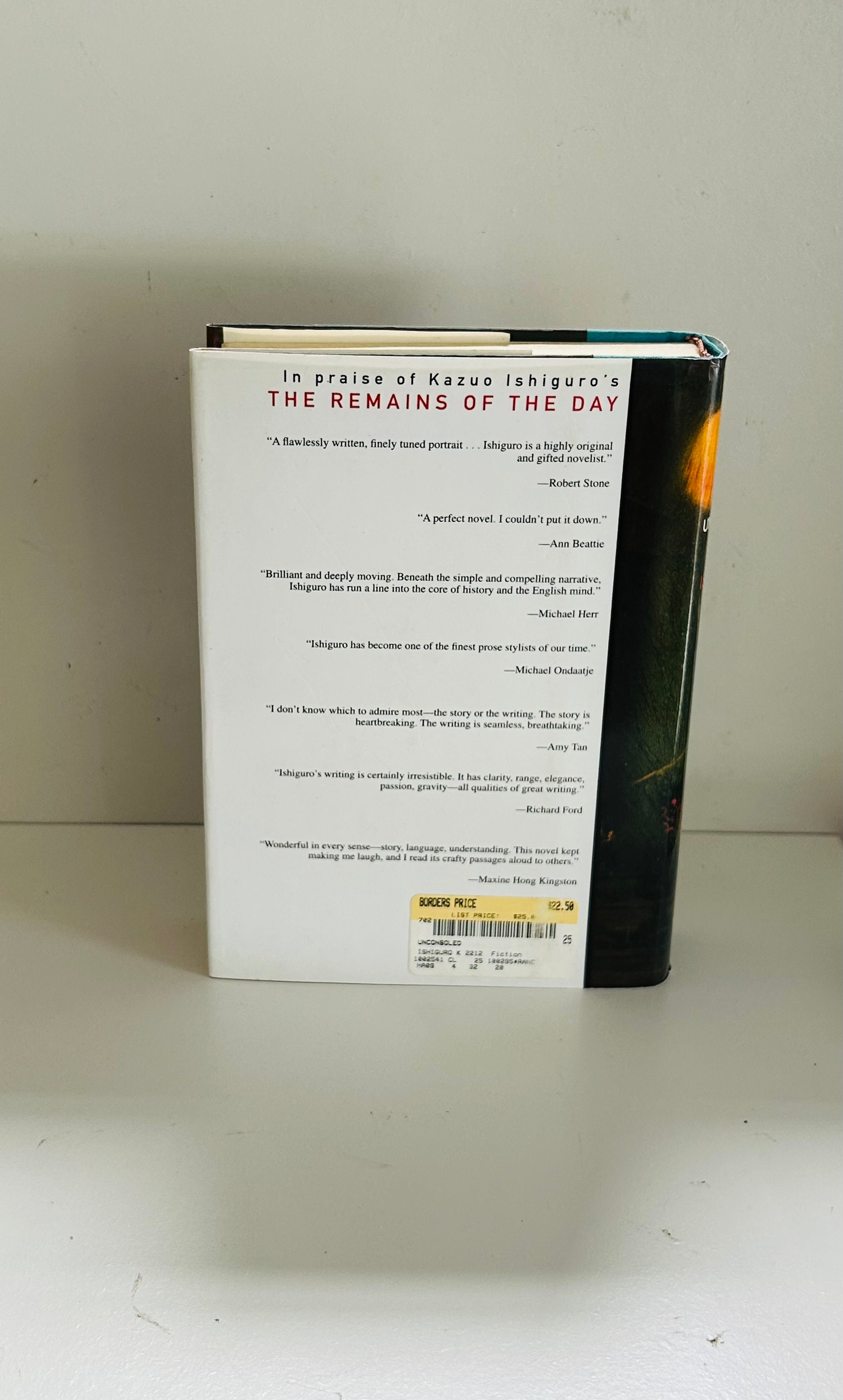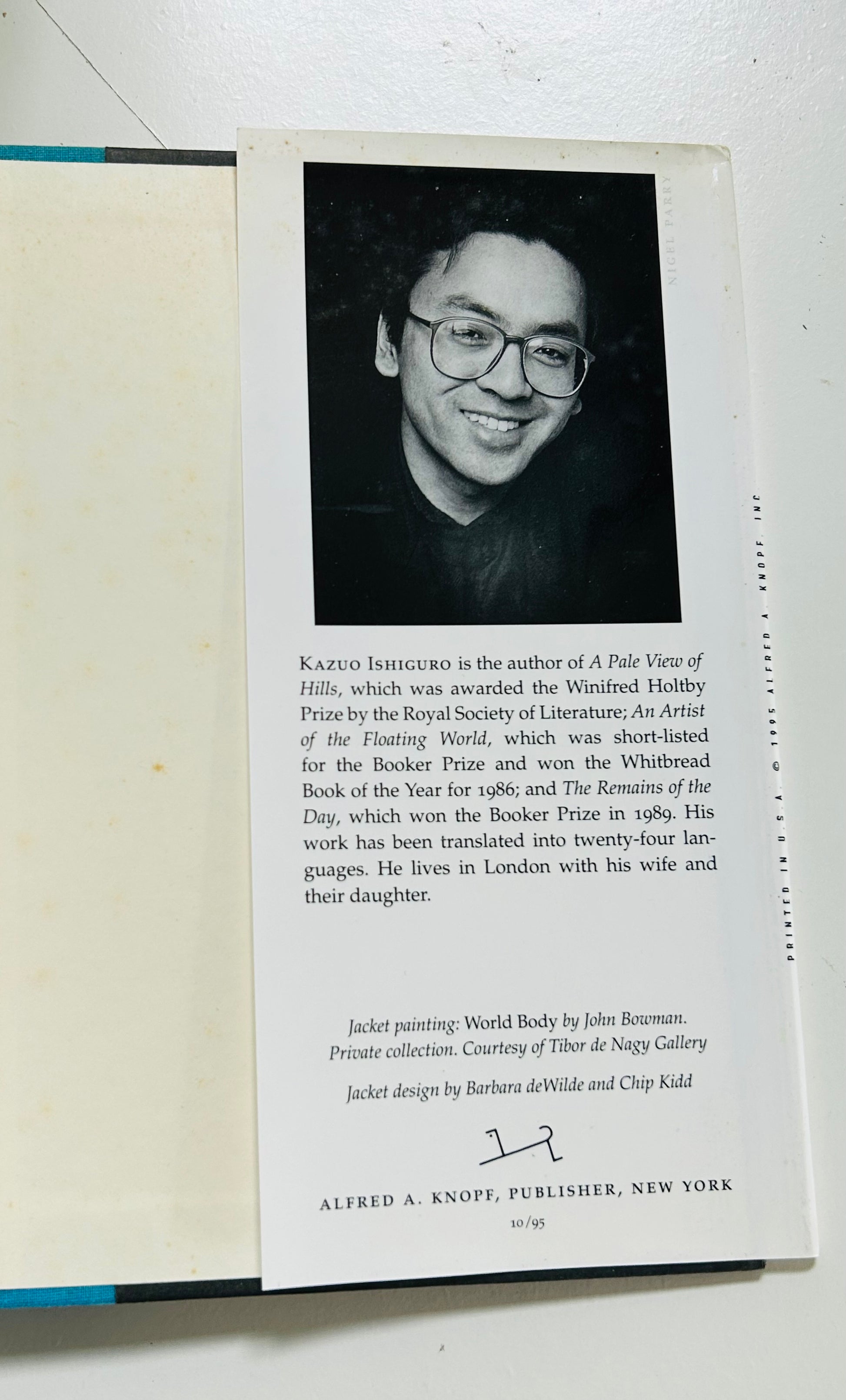 Kazou Ishiguro. Stated first American edition. New York: Alfred A. Knopf, 1995. Both unclipped dust jacket and hardcover are in Very Good+ and Near Fine condition respectively. No writing or markings found in the book, 535 pp. Has a former bookstore sticker on rear jacket, otherwise, like new.
