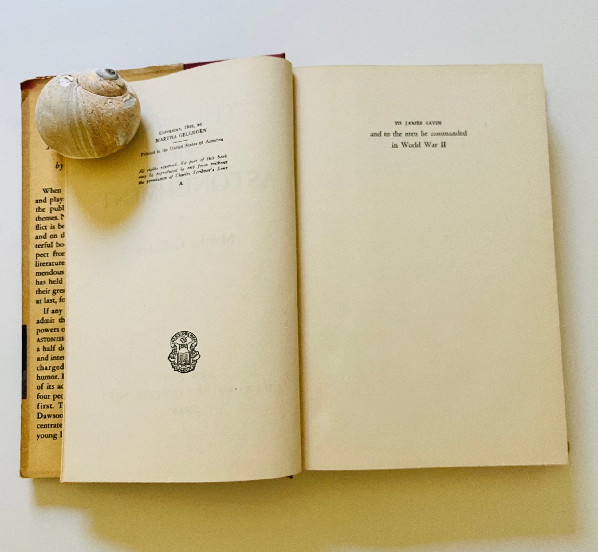 Martha Gellhorn. New York: Charles Scribner's Sons, 1948. First edition. A VG hardcover in a G+ unclipped, dust jacket, 325 pp. Gellhorn was the third wife of Ernest Hemingway.
