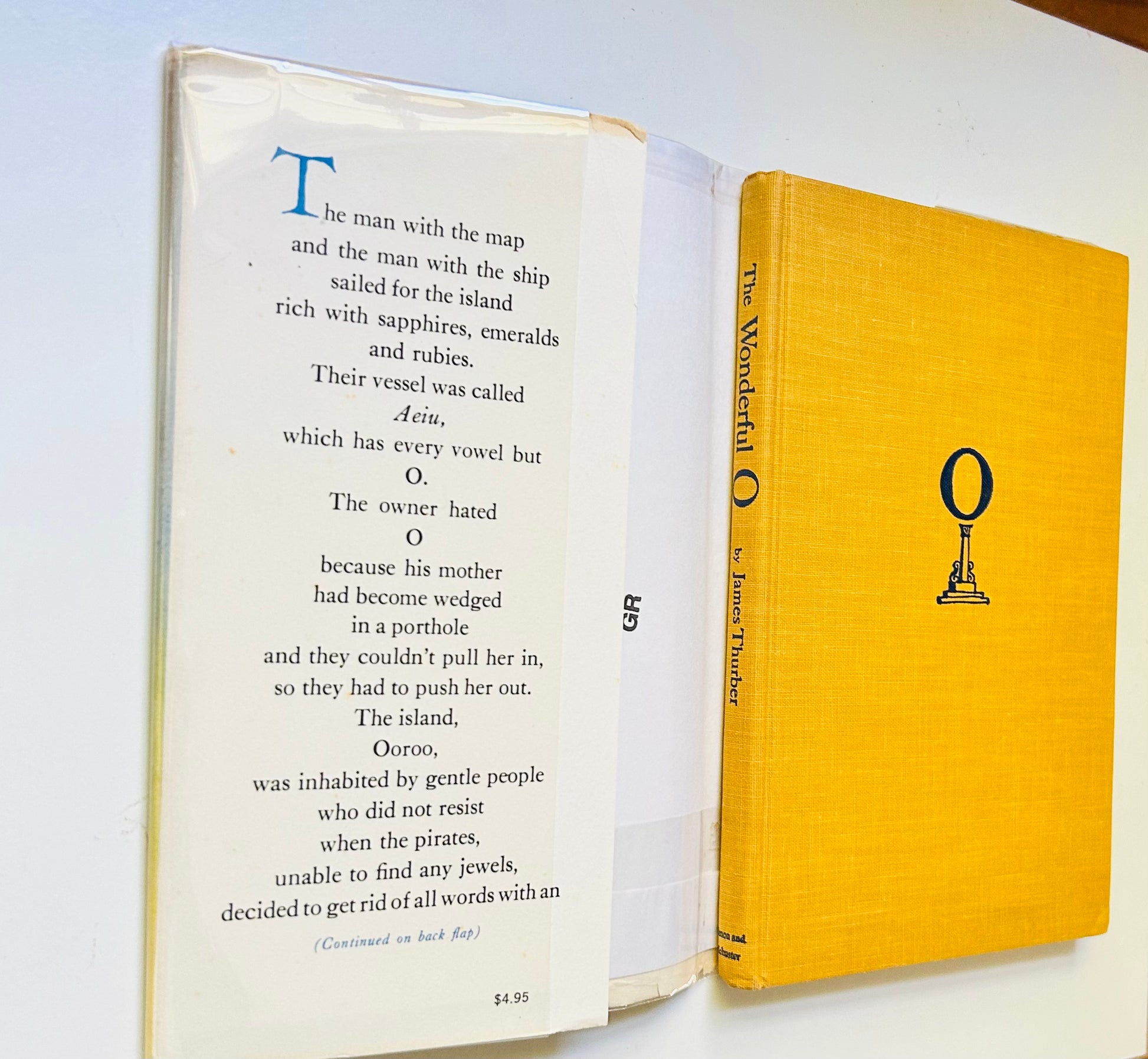 The man with the map and the man with the ship sailed for the island rich with sapphires, emeralds and rubies. The last of Thurber's five short-book fairy tales for children, the story is set on the island of Ooroo where confusion reigns when the letter of O is banished.