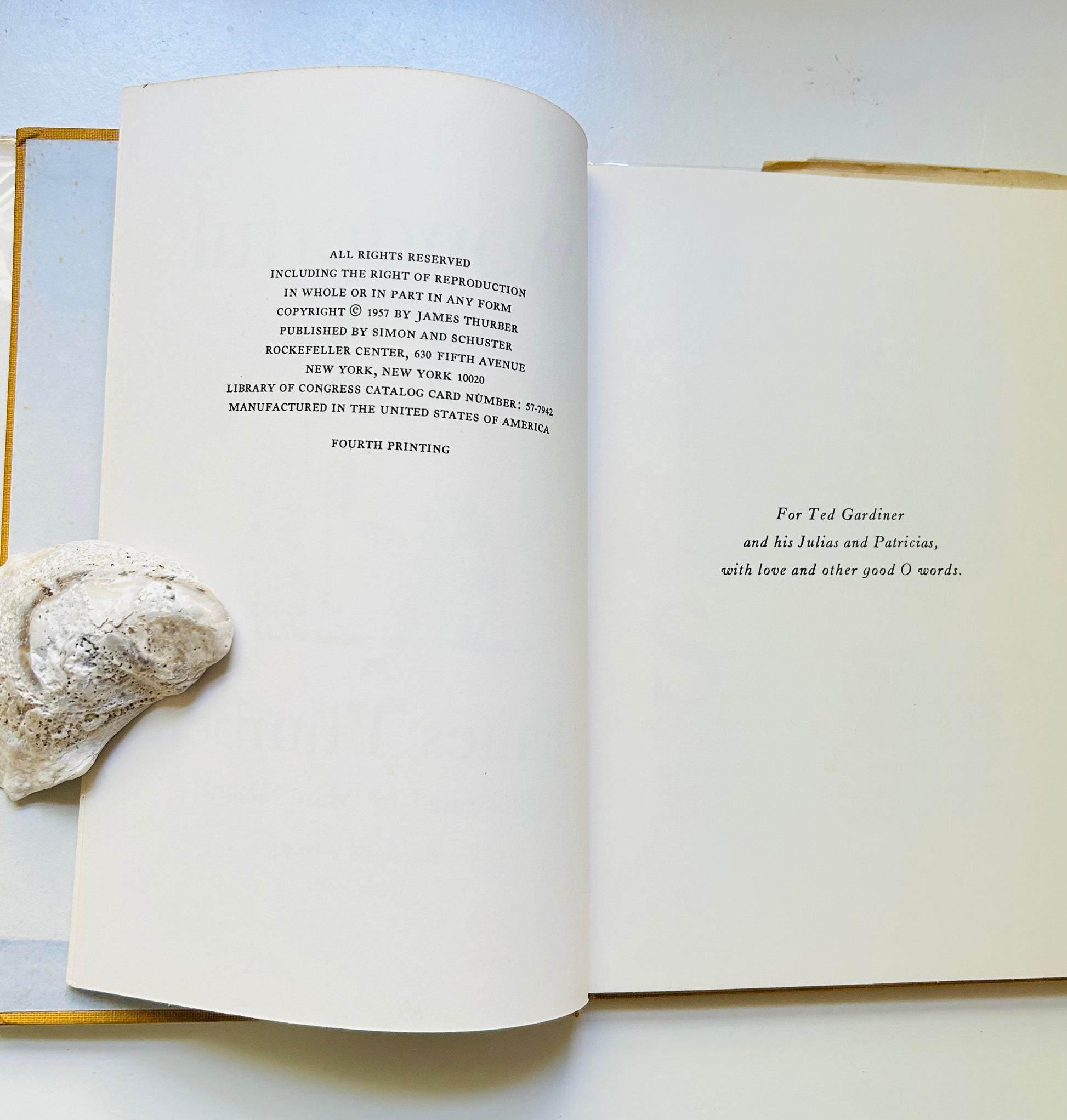James Thurber. First edition, fourth printing (stated). New York: Simon and Shuster, 1957. Both unclipped dust jacket and hardcover are in Near Fine condition. Dust jacket in a mylar protective wrapper, designed by Marc Simont, the 1957 winner of the Caldecott Medal. No writing or markings in the book, 73 pp.