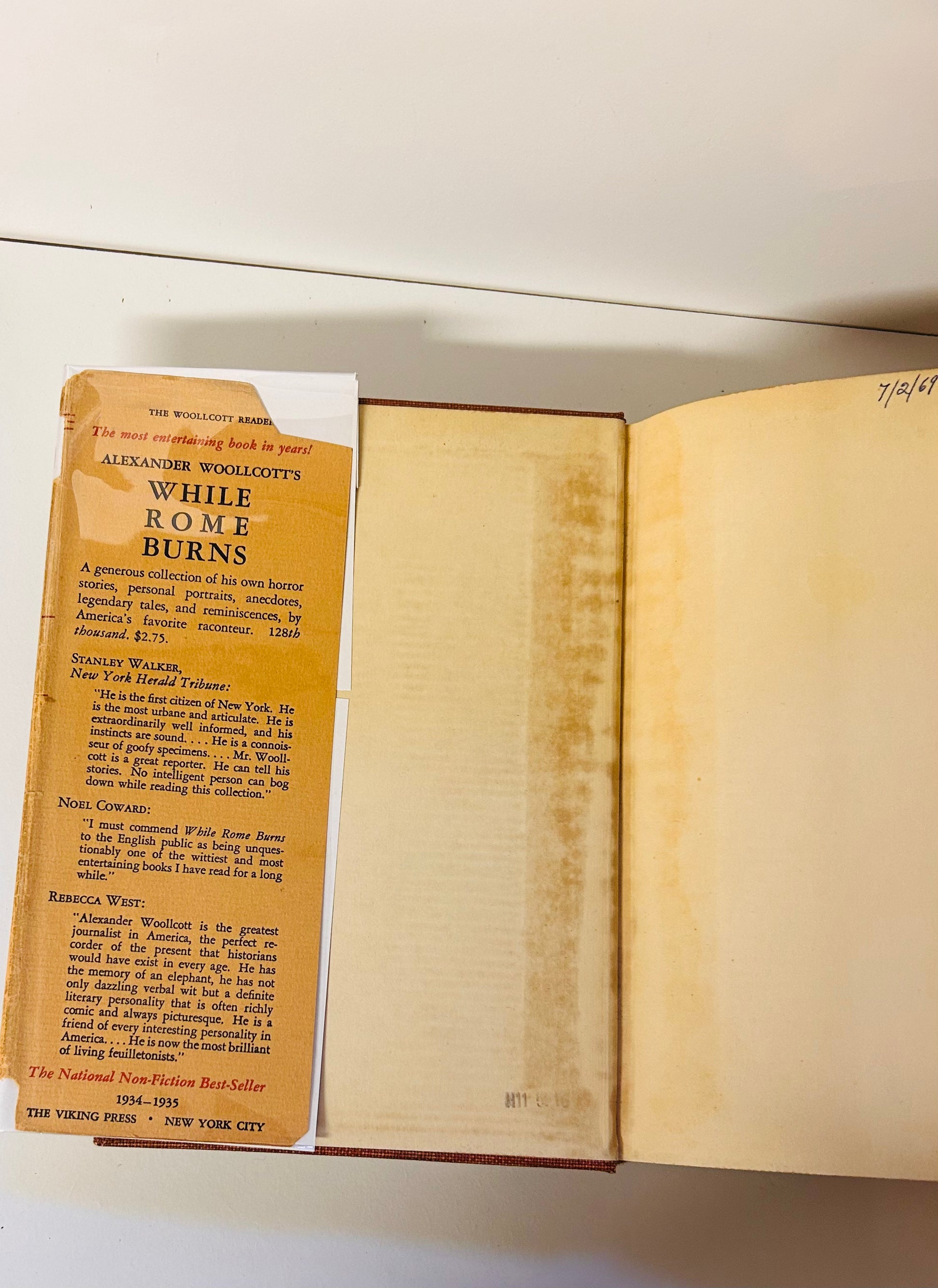 Alexander Woollcott. First edition. New Yor: The Viking Press, 1935. Dust jacket is price-clipped and wrapped in mylar. Jacket is in Good condition with missing sections in front/back of jacket. The hardcover is in Very Good+ condition with some writing on flyleaf, others no markings in this book, 1010 pp.