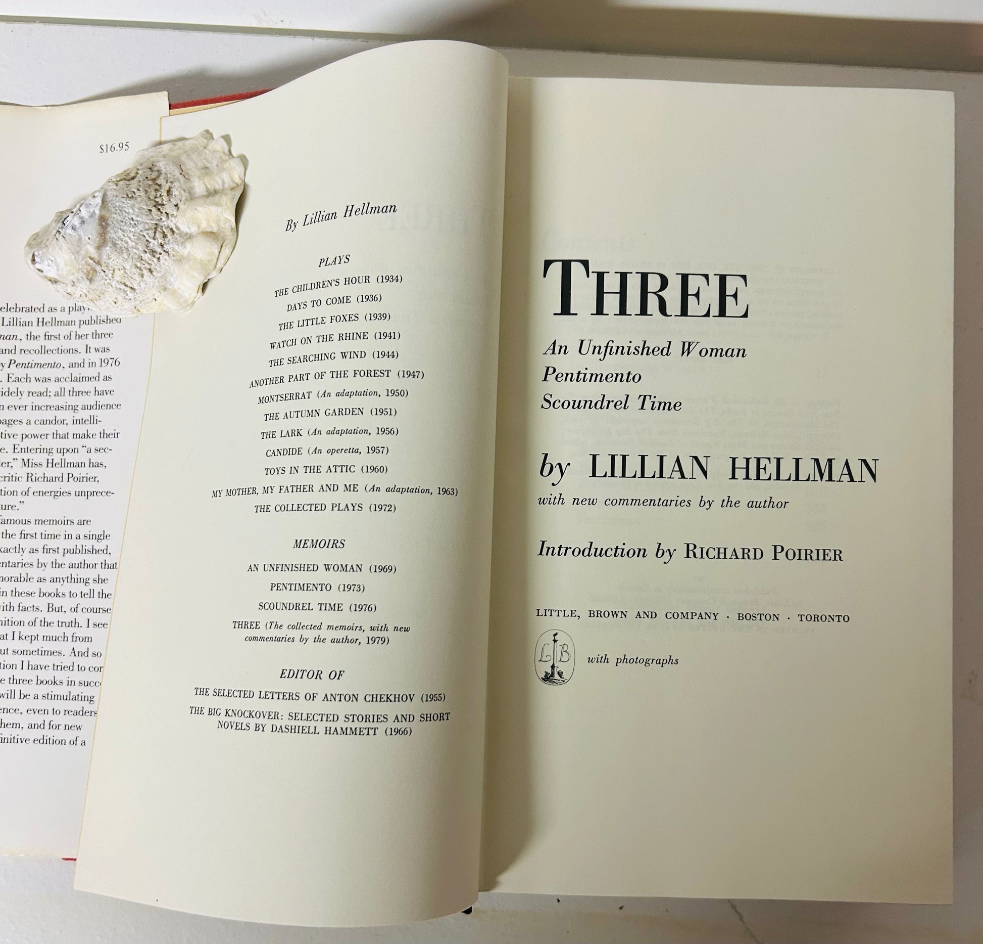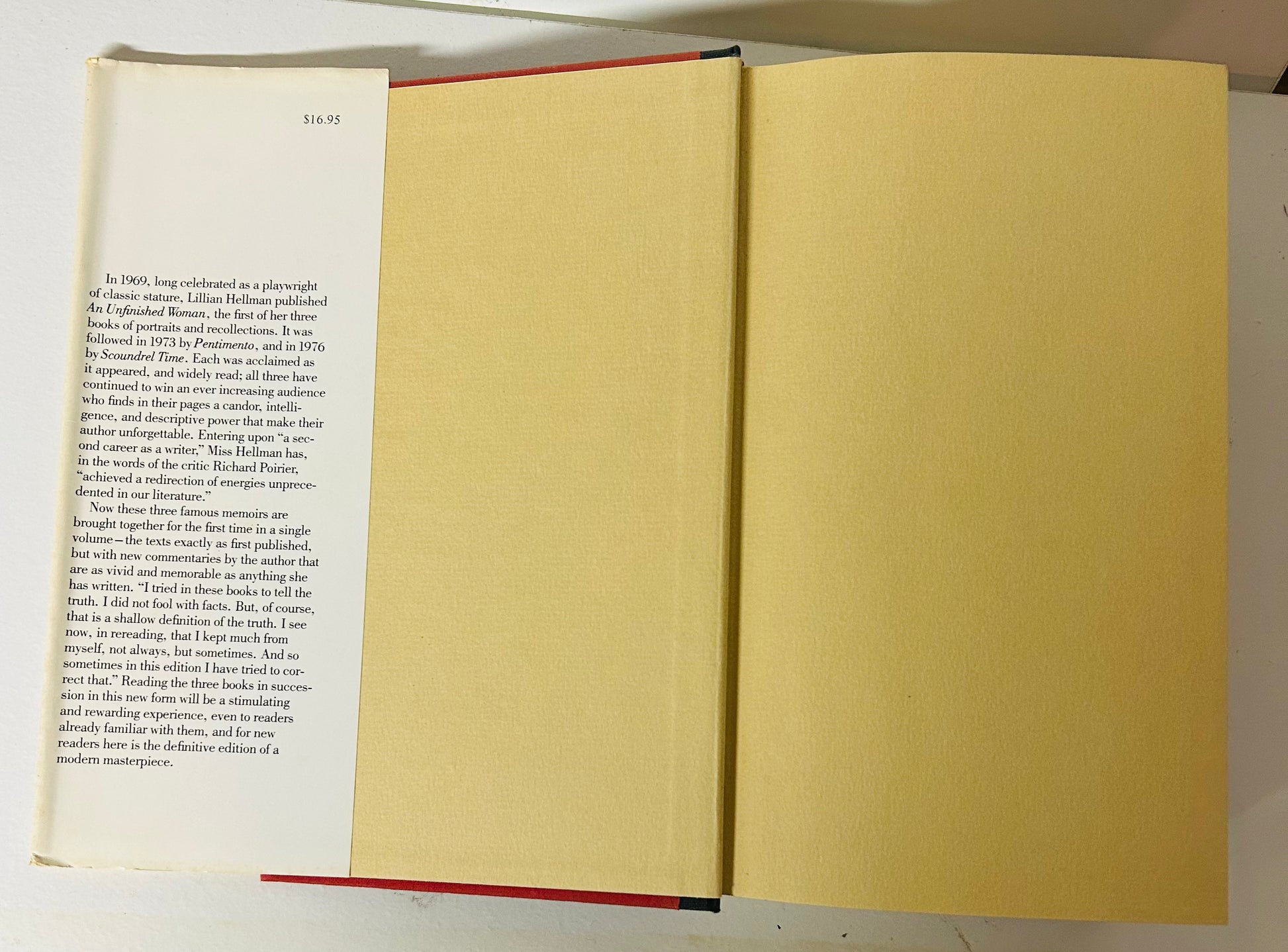 Includes three of Hellman's well known works: An Unfinished Women, Pentimento and Scoundrel Time. Three memoirs with new commentaries by the author.