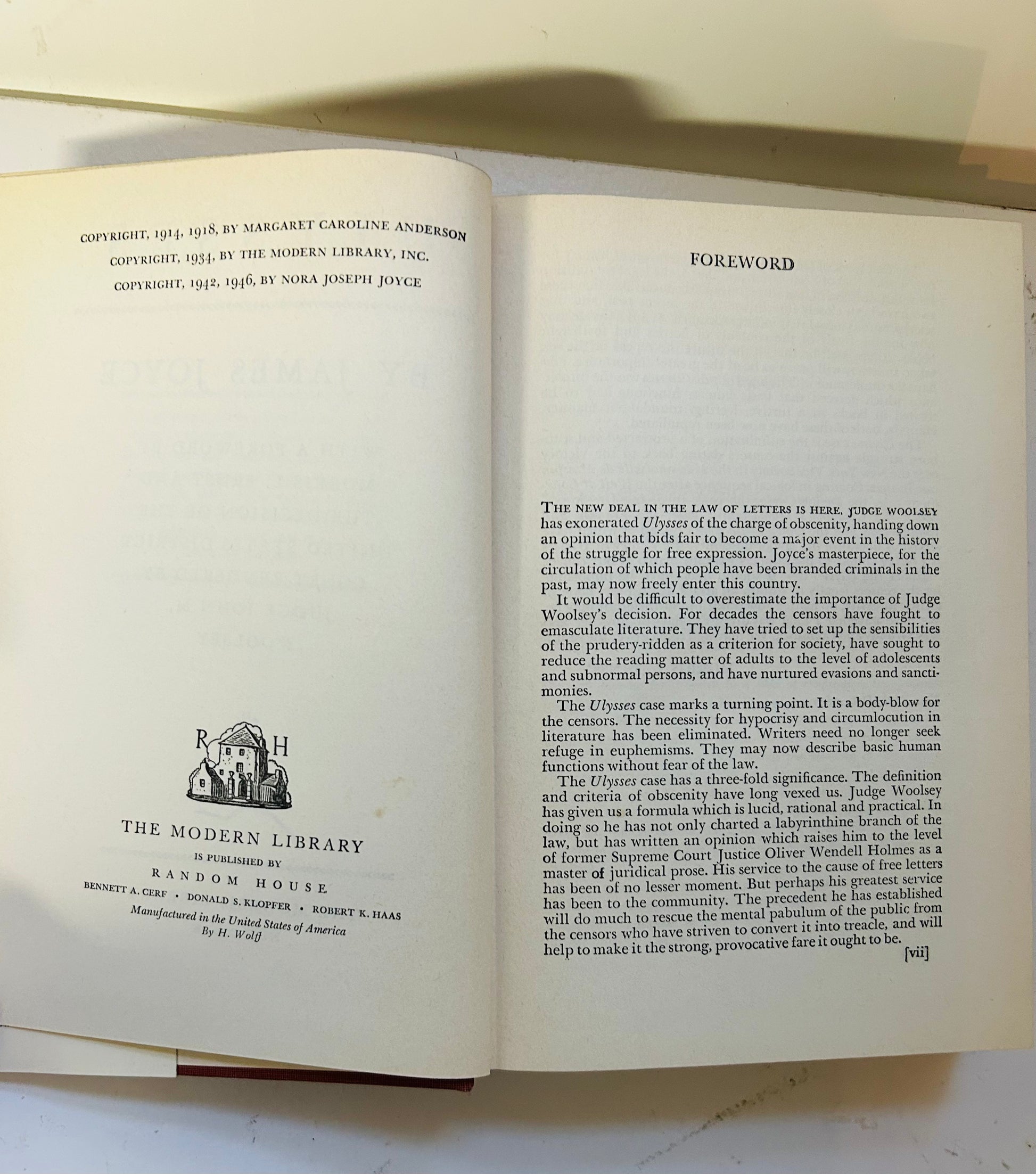 New edition text corrected and type completely reset and new plates made. One of greatest novels ever written. First published by Sylvia Beach, Shakespeare and Company, in Paris, 1922.