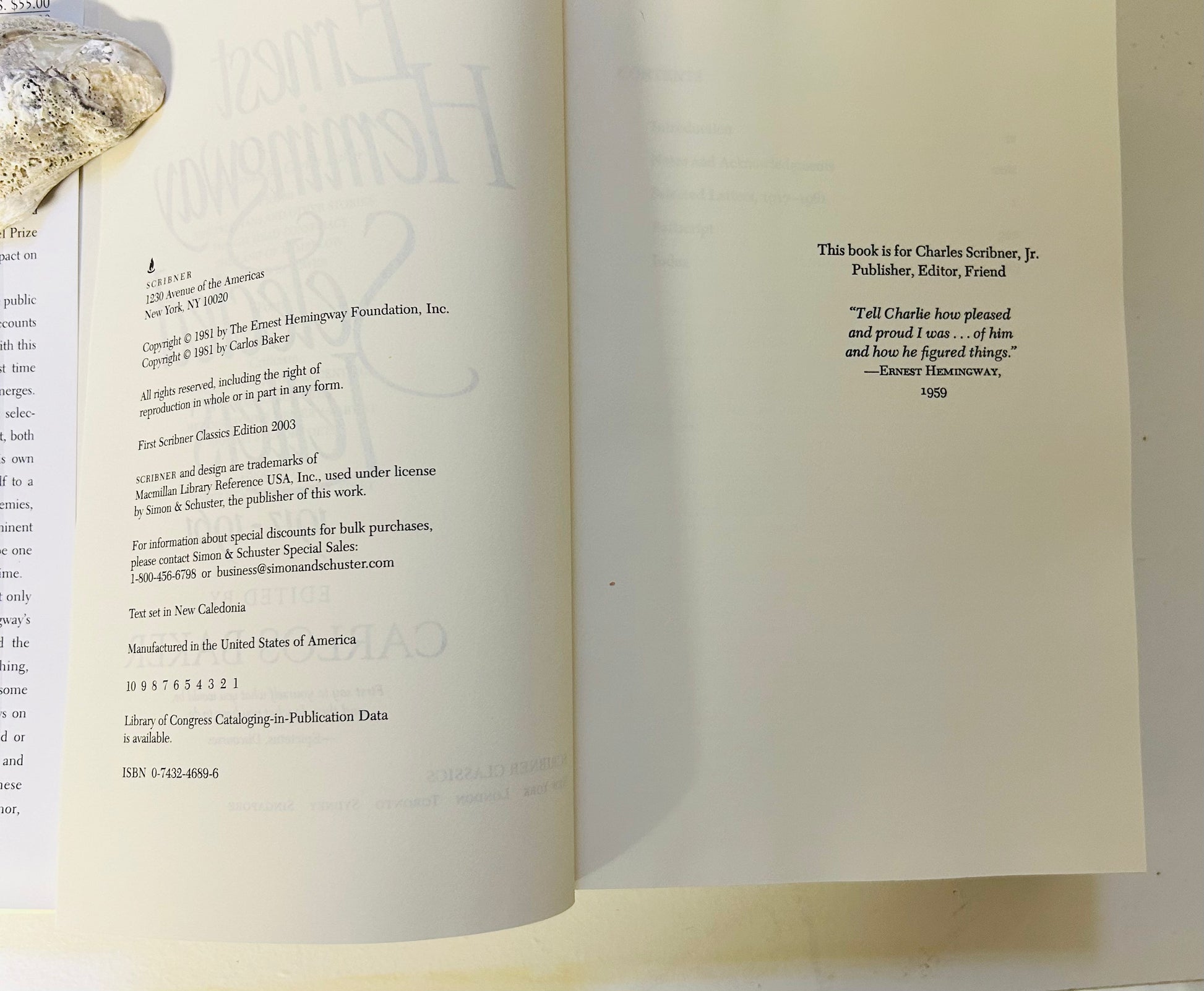 Carlos Baker, editor. First edition thus. New York: Scribner, 2003. Both unclipped dust jacket, in a mylar protective wrapper, and hardcover are in Near Fine condition. No writing or markings in this well preserved edition, 948 pp. First Scribner Classics Edition.