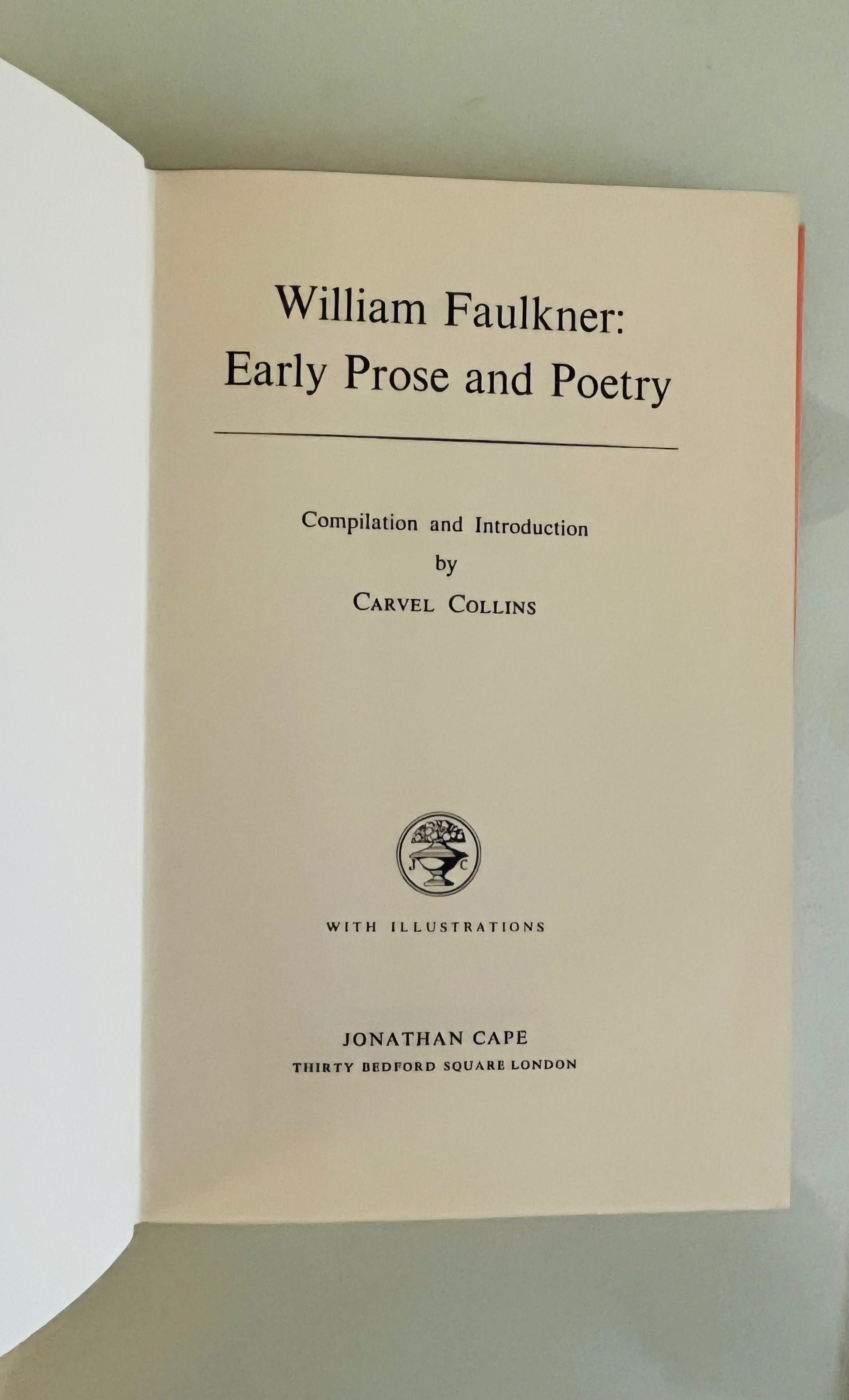 William Faulkner. First U.K. Edition. Compilation and Introduction by Carvel Collins. Dust Jacket: Fine. An unclipped jacket in a mylar protective wrapper. Jacket designed beautifully by Jonathan Cape. Hardcover: Fine. London: Jonathan Cape, 1963. No writing or markings in this well preserved first edition, 134 pp. Illustrated with drawings. Green cloth with silver lettering on the spine.