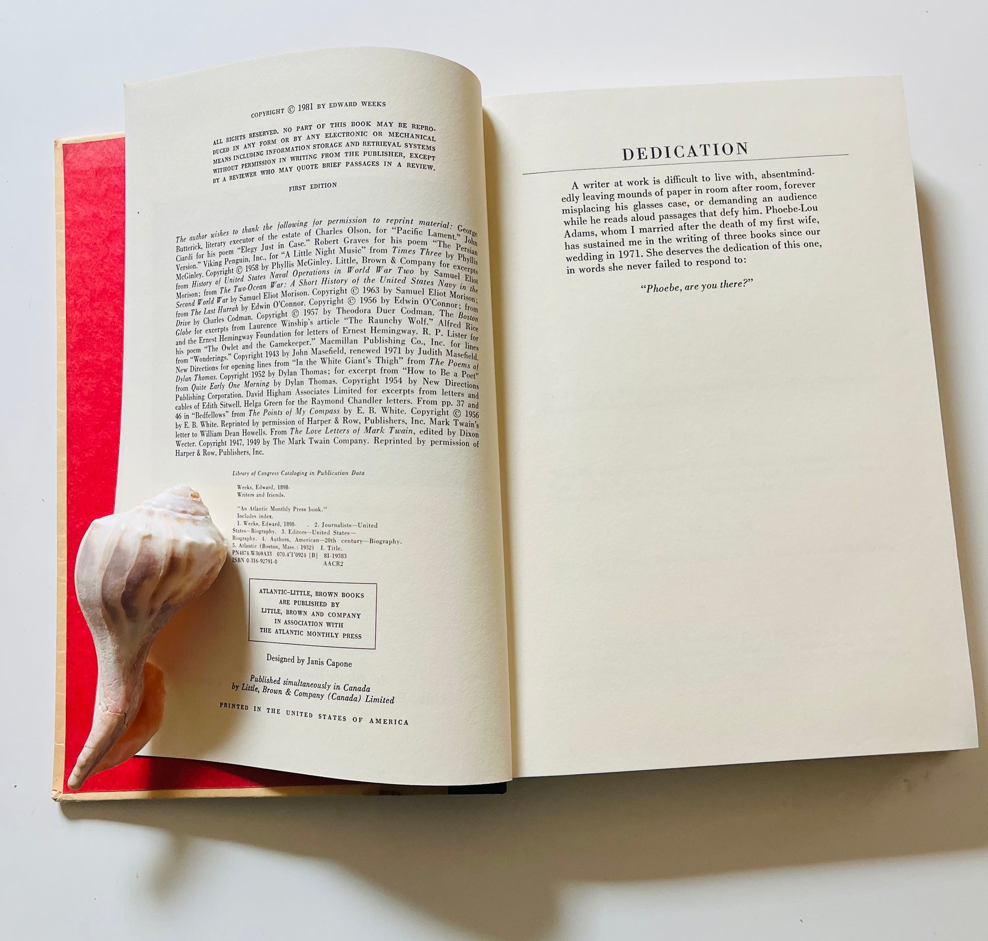 Edward Weeks. First edition. Inscribed by the author on flyleaf page. Dust Jacket: Very Good. An unclipped jacket designed by Marjorie Anderson. Photo credit by Scarpetti, Polaroid. Hardcover: Near Fine. Boston: Little, Brown and Company, 1981. Beige cloth with black spine and silver lettering. No marks or writing in the book, 321 pp. Includes b/w photographs.