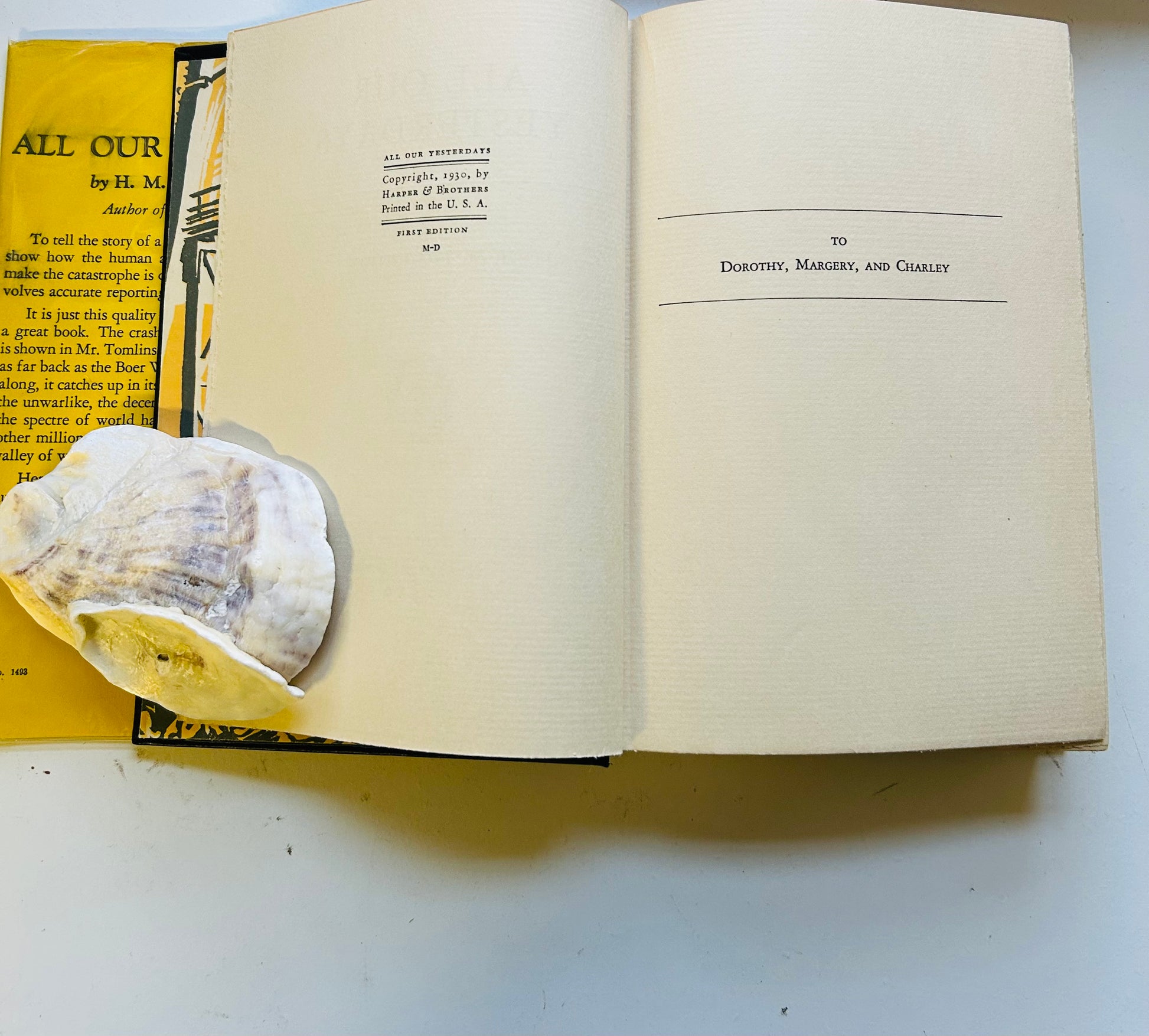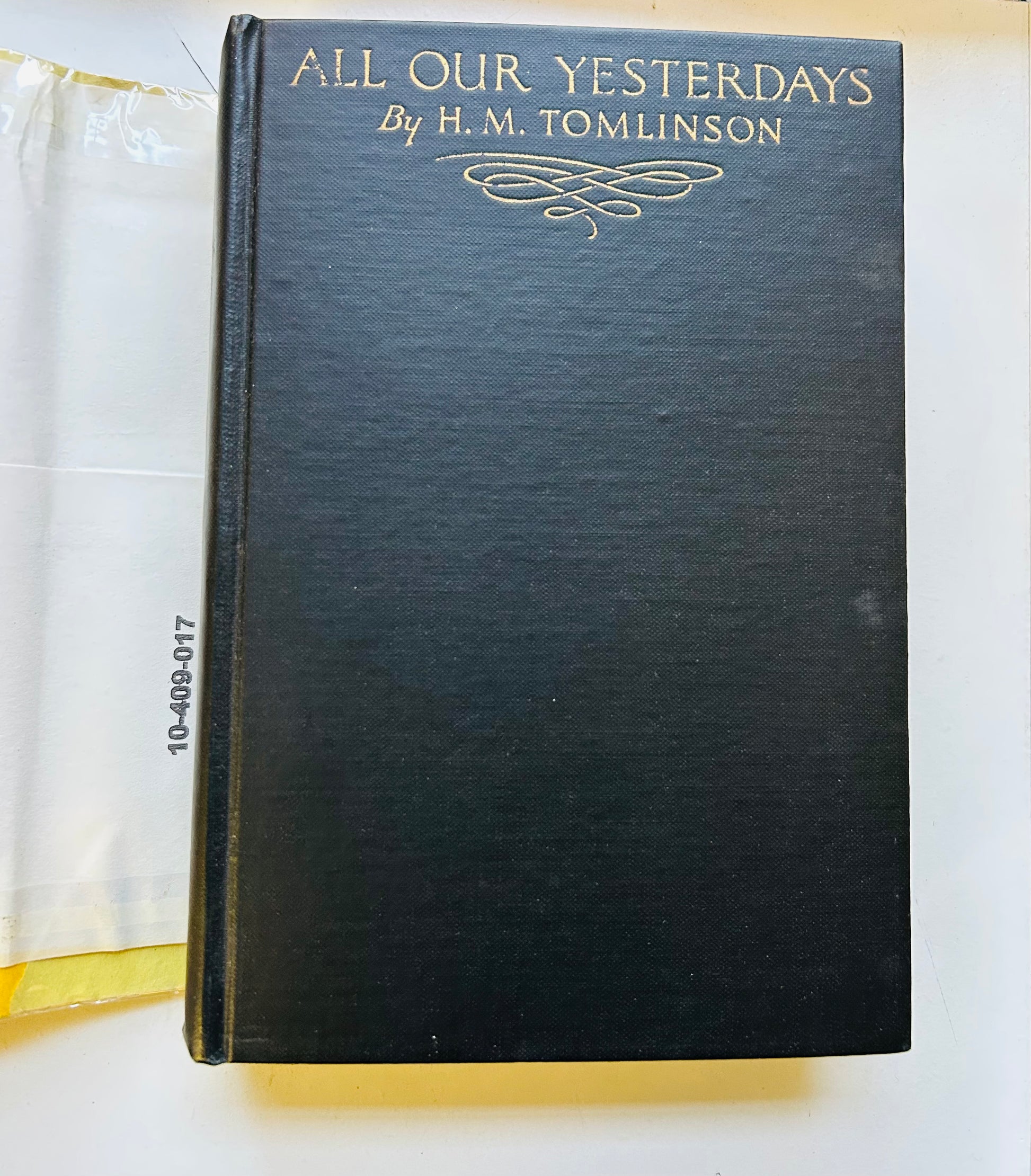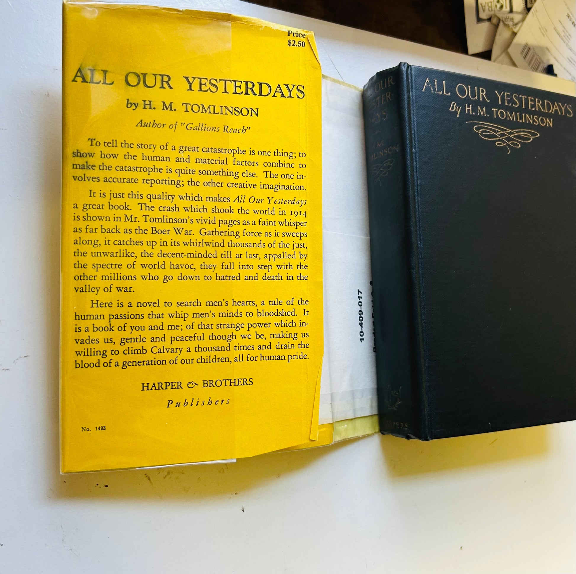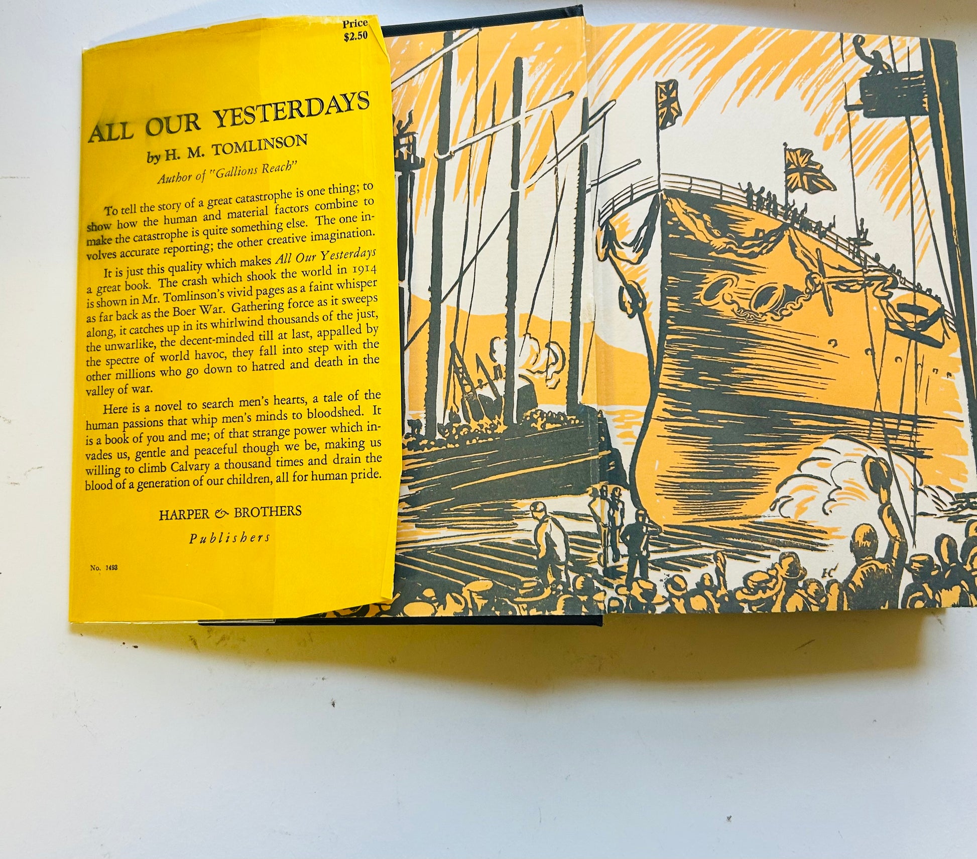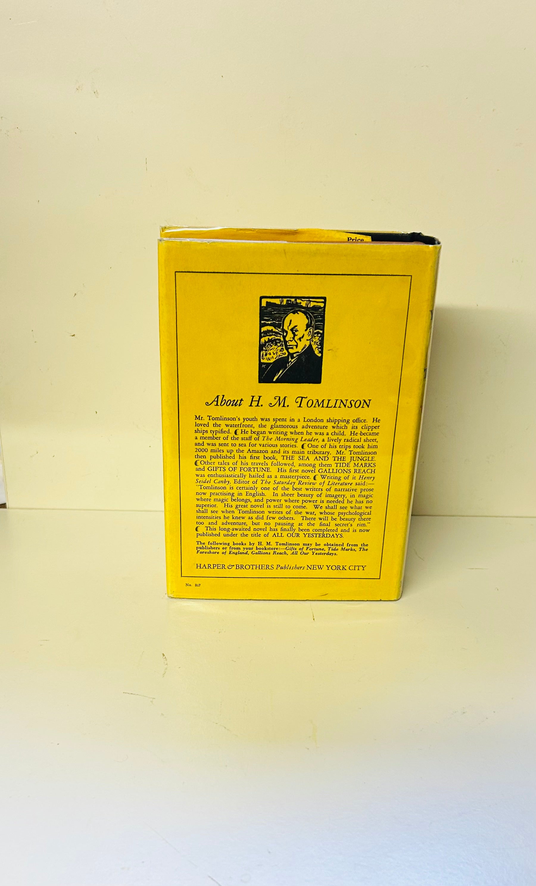 H.M. Tomlinson. Stated first edition. New York: Harper and Brothers Publishers, 1930. Unclipped dust jacket (in Mylar wrapper) in Very Good+ condition. Original price $2.50 still on inside flap. Very Good+ Hardcover with no writing or markings found inside, 445 pp., and beautifully designed endpapers.