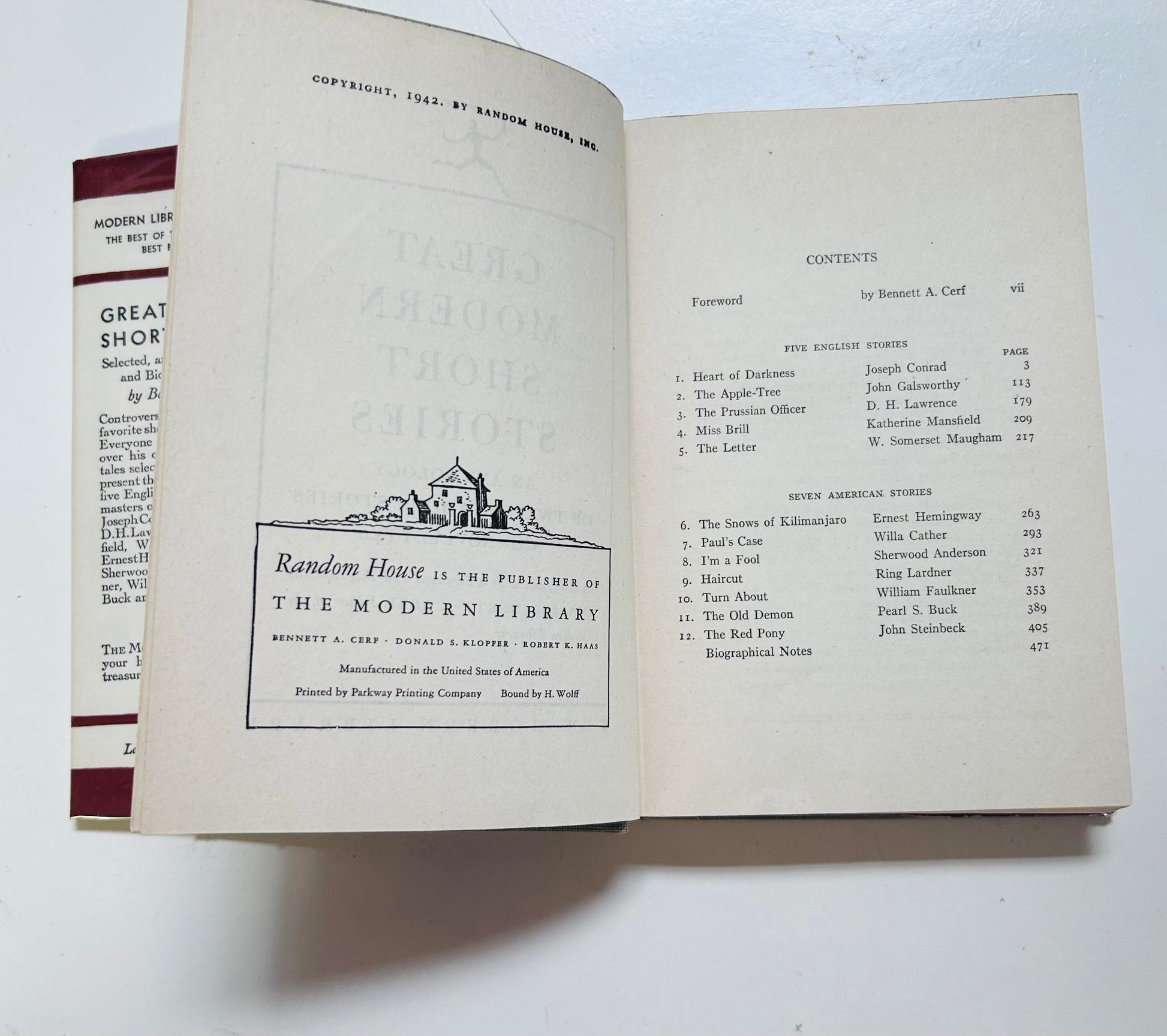 Selected by Bennett A. Cerf. First edition thus. New York: The Modern Library (#168), 1942. In a price-clipped dust jacket (in a Mylar wrapper), in Very Good+ condition. Hardcover in Very Good+ condition. No writing or markings found in the book, 480 pp.