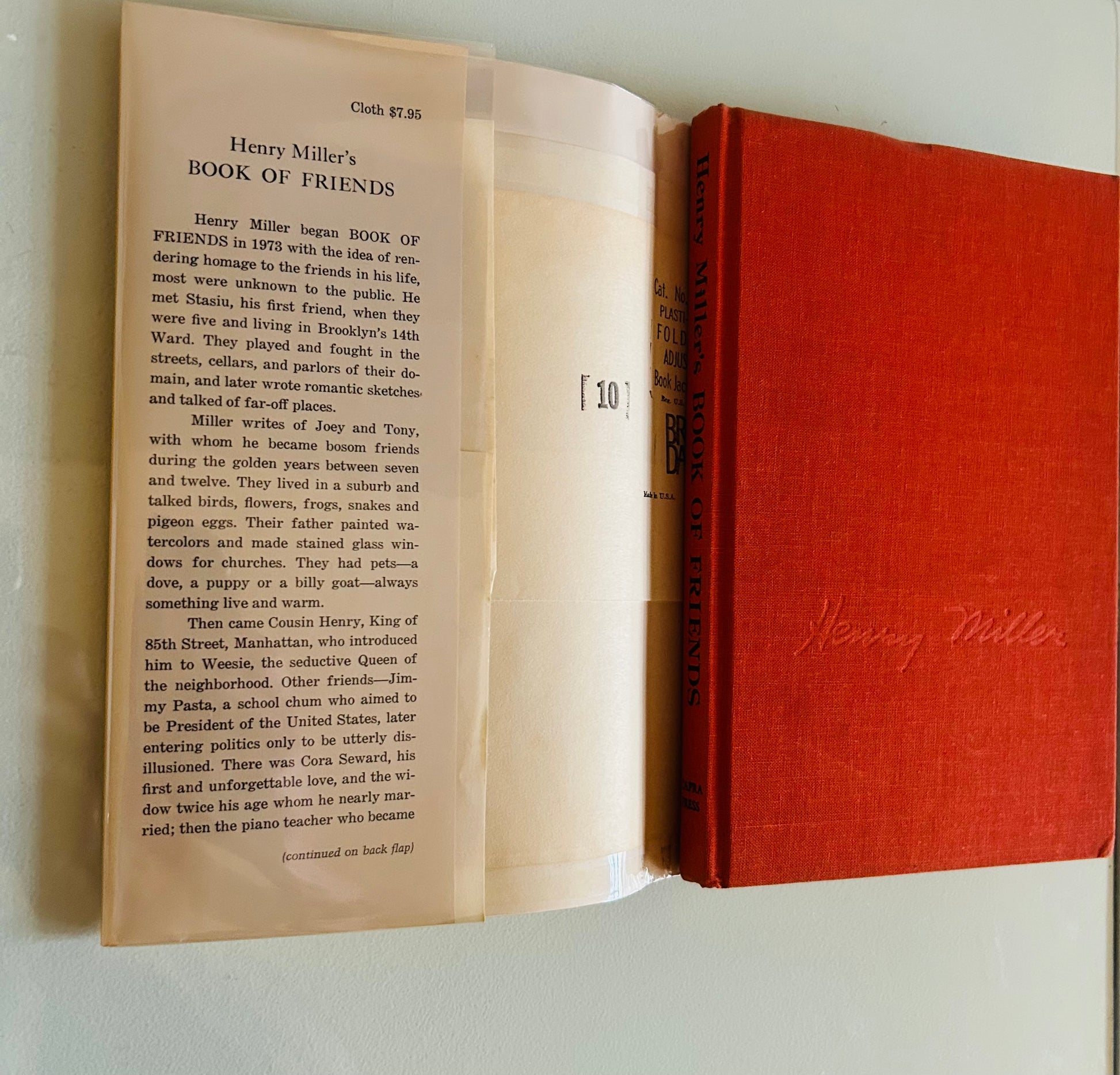 A beautiful signed first printing of Book of Friends, Henry Miller’s intimate collection of portraits and reflections on the artists, writers, and personalities who shaped his life. Published by Capra Press during Miller’s late career, this work blends memoir, literary appreciation, and personal essay — offering collectors a revealing look at Miller’s creative circle.
