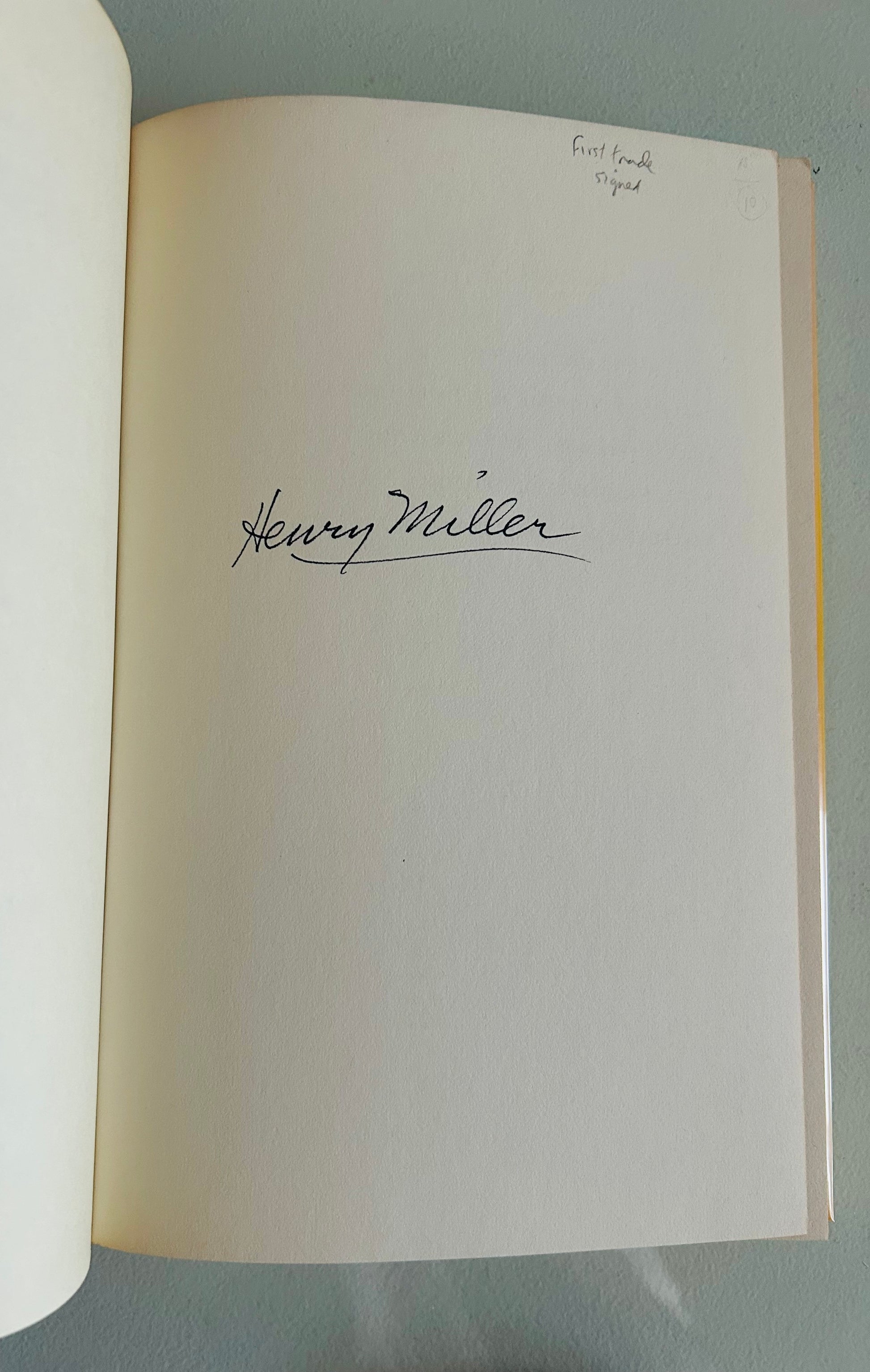 A desirable signed Henry Miller first edition — ideal for collectors of modern literature, Beat-adjacent writers, and association-focused material.