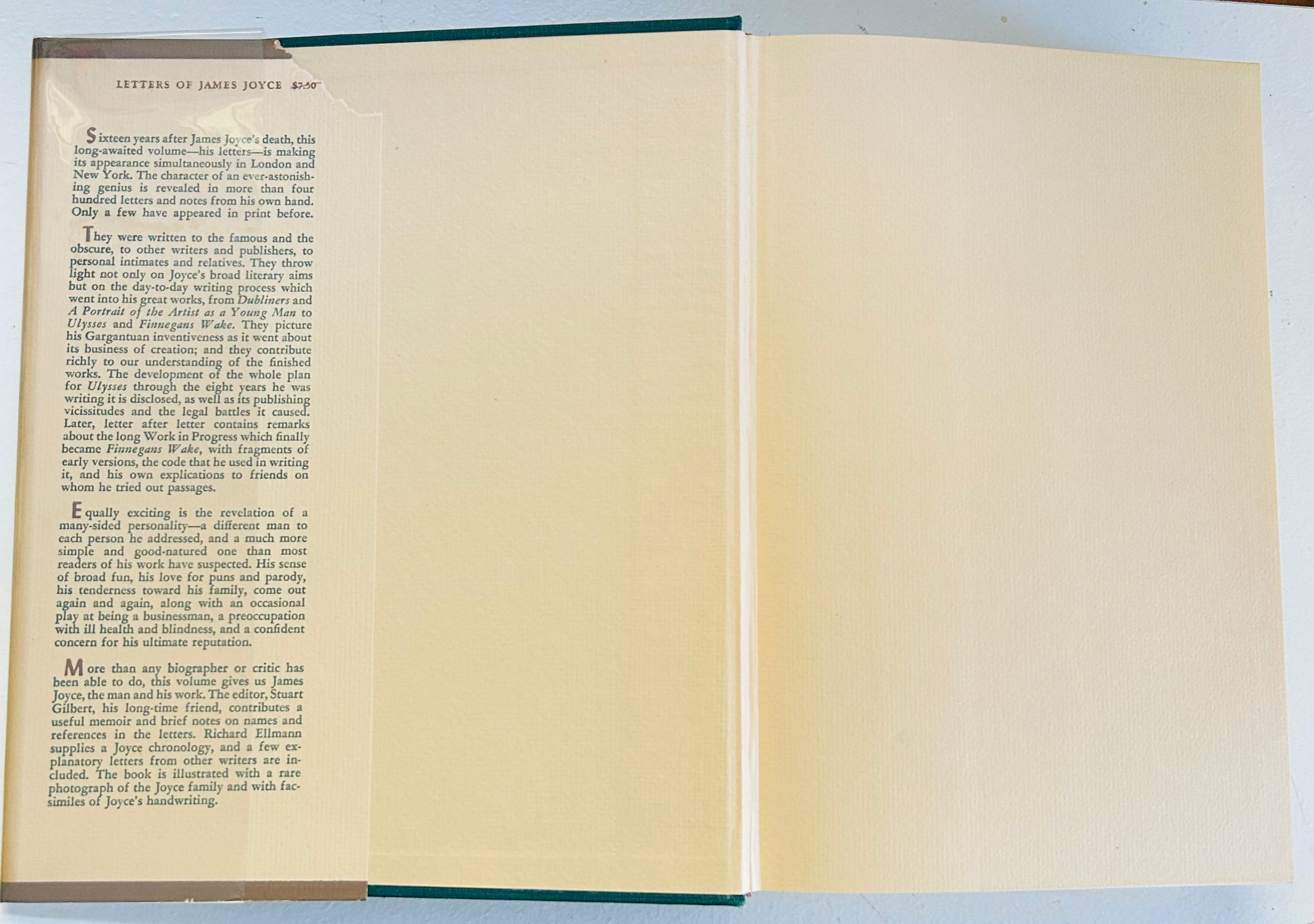 A beautiful first printing of this important collection of correspondence from the major 20th-century Irish modernist. These letters offer valuable insight into Joyce's greatest works including ULYSSES, DUBLINERS, and FINNEGAN'S WAKE, as well as the legal battles that dogged them.