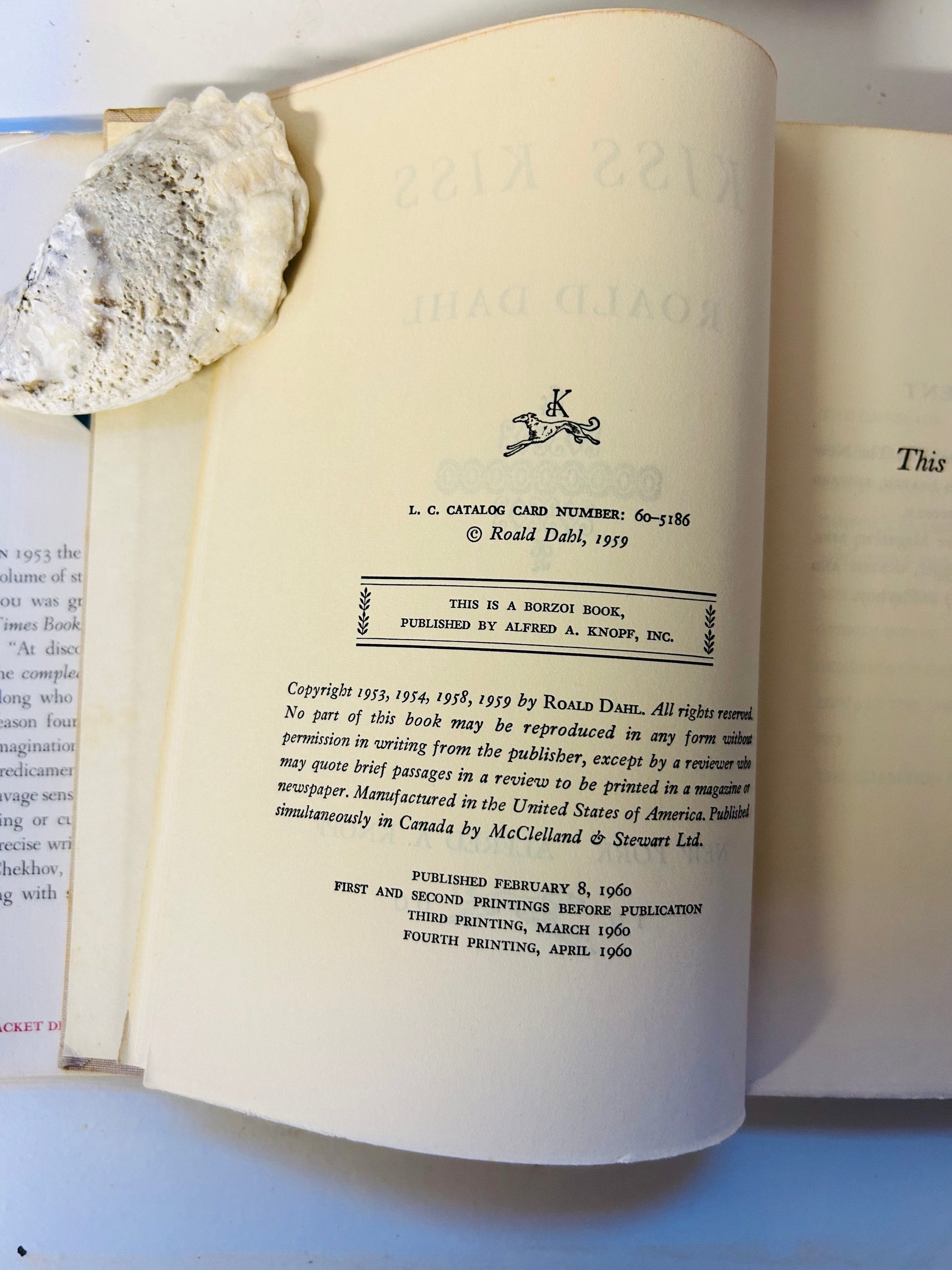 Roald Dahl. First edition, fourth printing (stated). New York: Alfred A. Knopf, 1960. Both unclipped dust jacket, in a mylar protective wrapper, and hardcover are in Very Good+ condition. Jacket designed by Charles E. Skaggs. No writing or markings in this clean, well preserved copy, 308 pp. The New York edition preceded the Toronto and London editions.