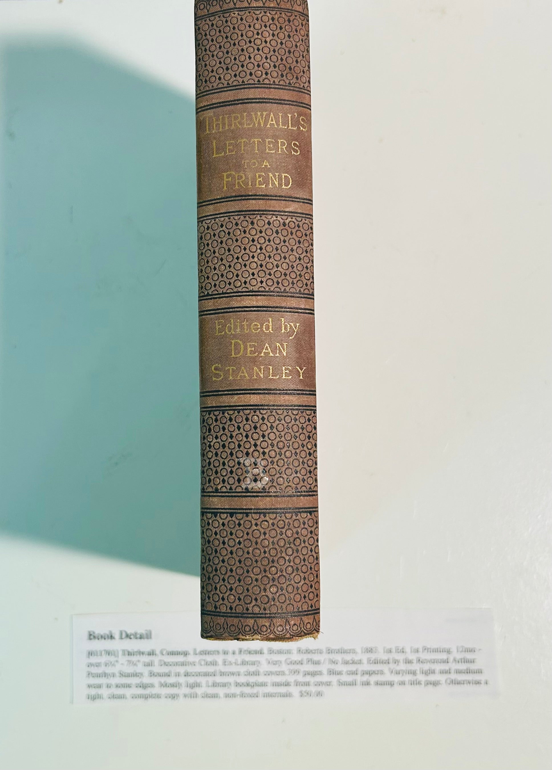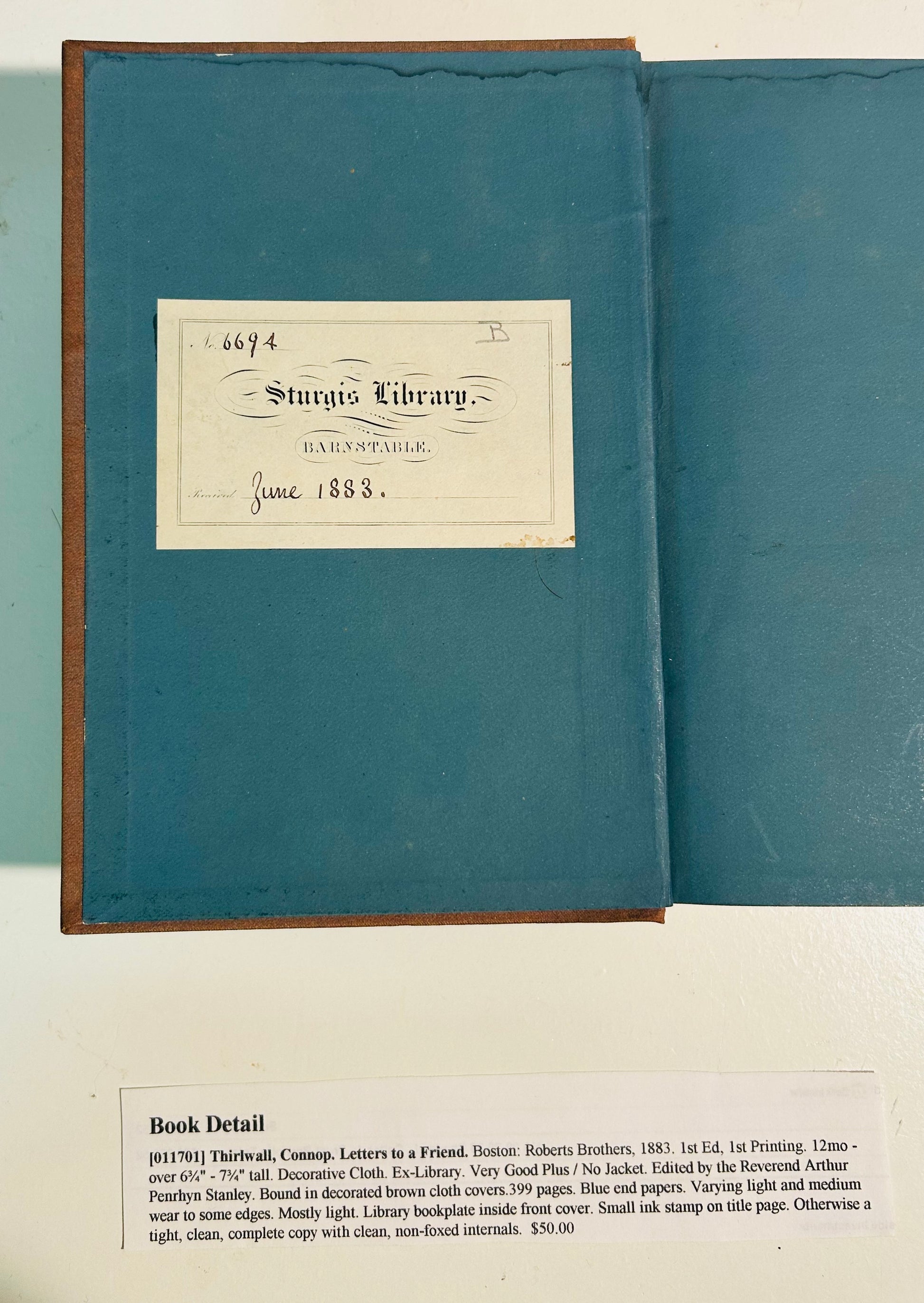 Connop Thirlwell. First edition, first printing. Boston: Roberts Brothers, 1883. Edited by the Reverend Arthur Penrhyn Stanley. No dust jacket (typical for this era). Hardcover is in Very Good+ condition. No writing or markings found in the book, 399 pp. Library ex libris sticker on inside cover.