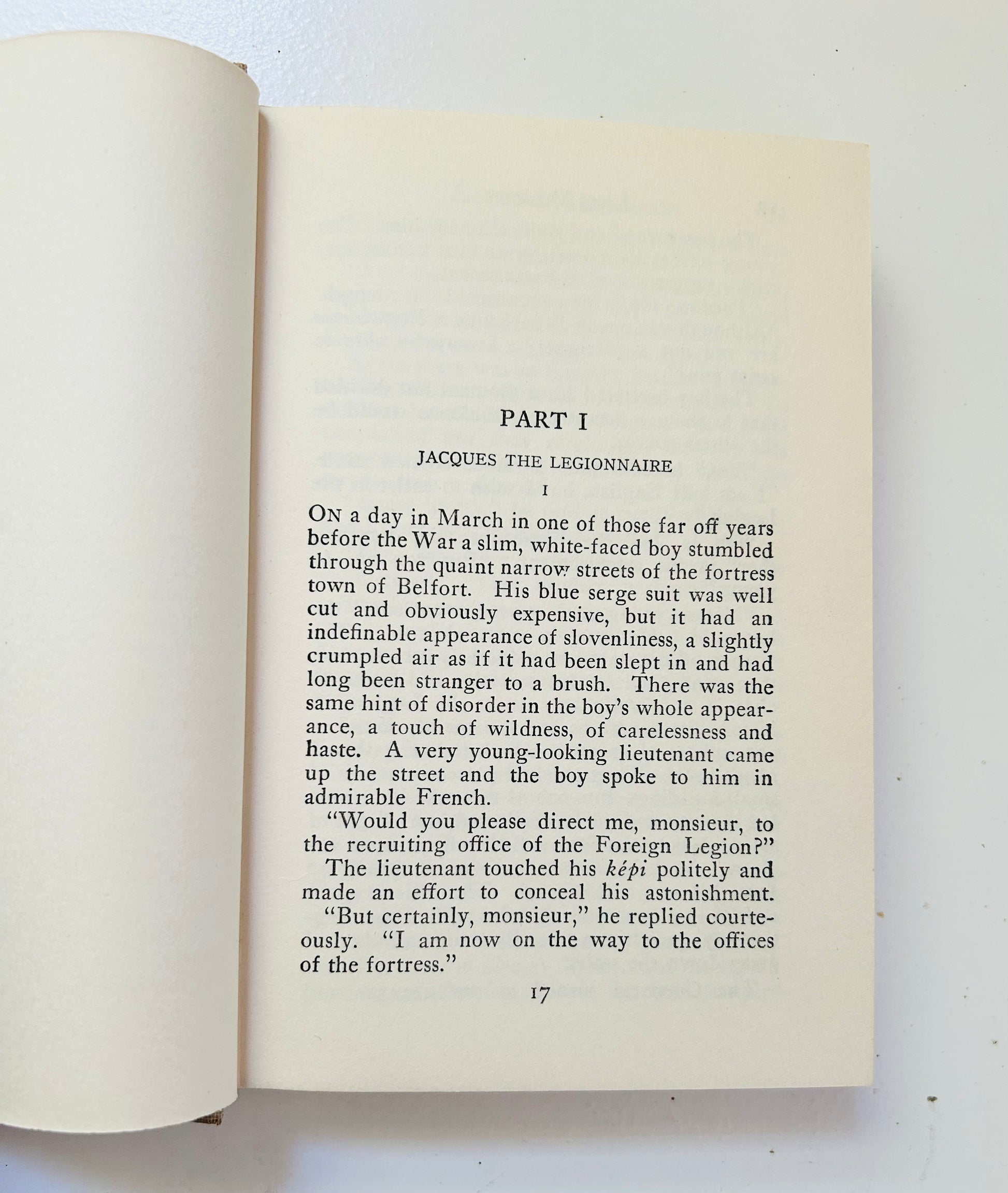 The author writes about an uncommon murder mystery, at the time, set in Morocco and within the French Foreign Legion.