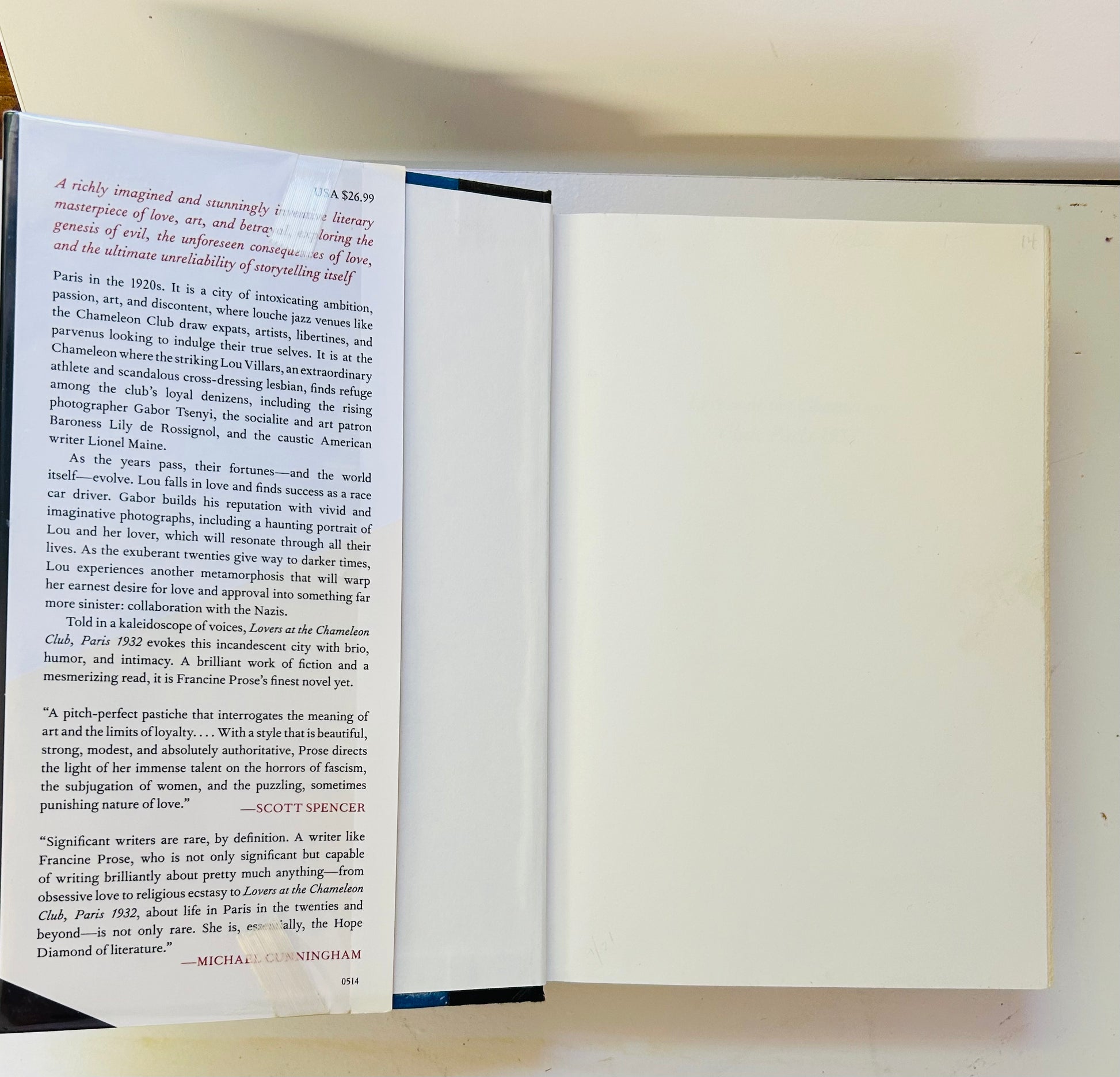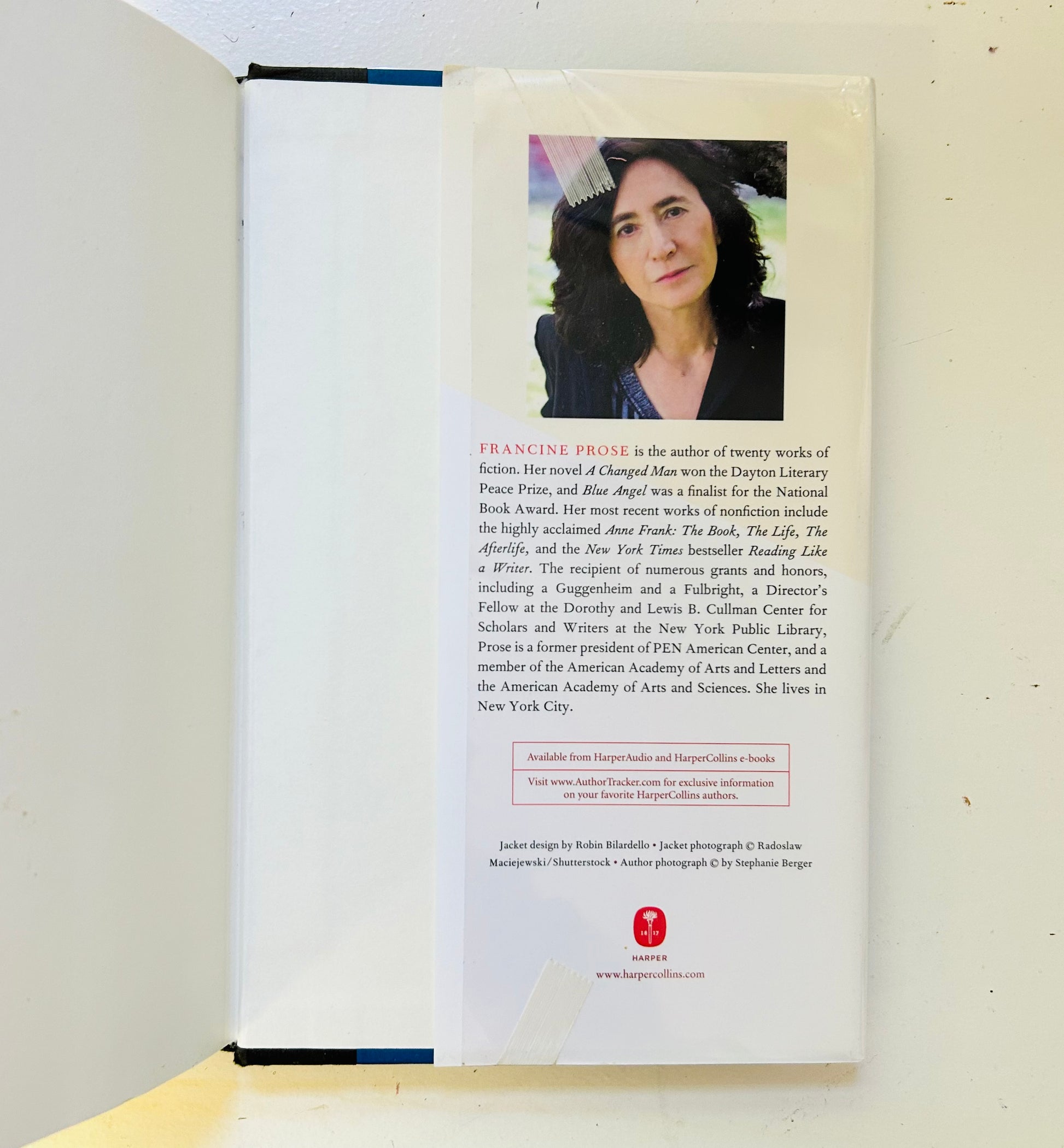 Francine Prose. First Edition (stated), first printing. New York: Harper-Collins, 2014. Both unclipped dust jacket, in a mylar protective wrapper, and hardcover in Very Good condition. There is a black marker stain on title page, and tape on four corners of dust jacket. Otherwise, no writing or markings in this well preserved edition, 436 pp. Jacket designed by Robin Bilardello.