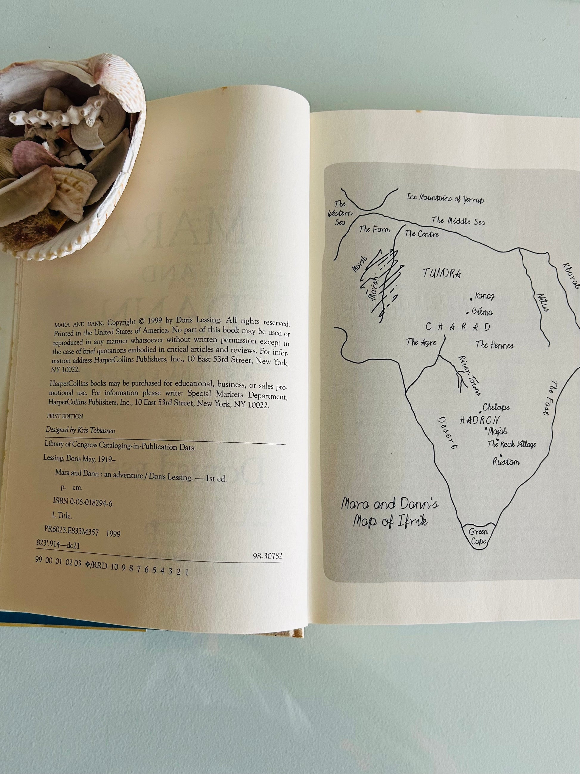 A beautiful stated first edition of Mara and Dann, Doris Lessing’s acclaimed post-apocalyptic novel exploring survival, climate collapse, and human resilience. Set in a distant future Africa transformed by environmental catastrophe, the novel follows siblings Mara and Dann on an epic journey north in search of safety and knowledge.