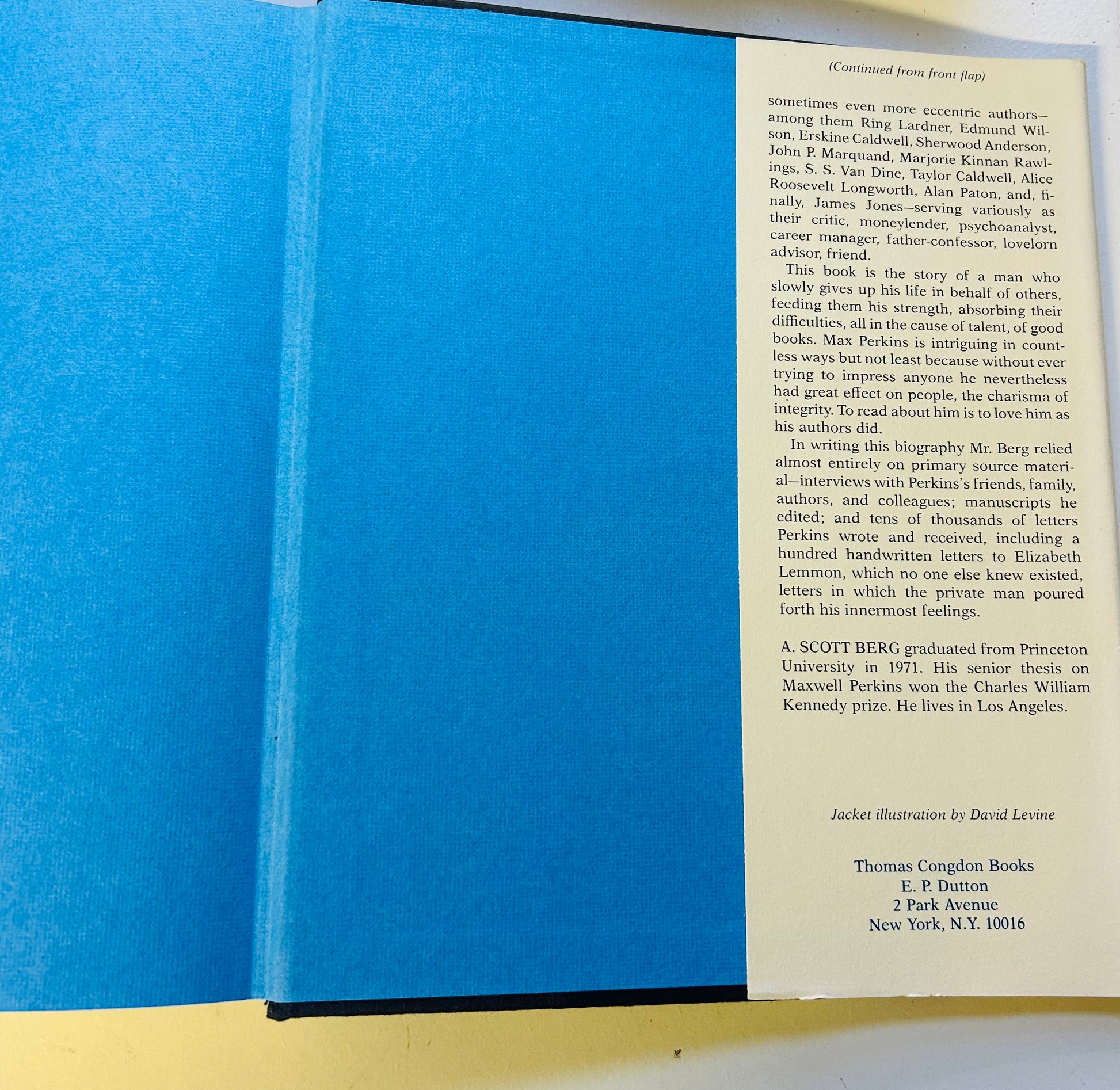 A. Scott Berg. First edition, second printing. New York: E.P. Dutton, 1978. Price-clipped dust jacket in Very Good+ condition, designed by David Levine. Hardcover in Near Fine condition with no writing or markings found inside, 498 pp. Related newspaper article laid in.