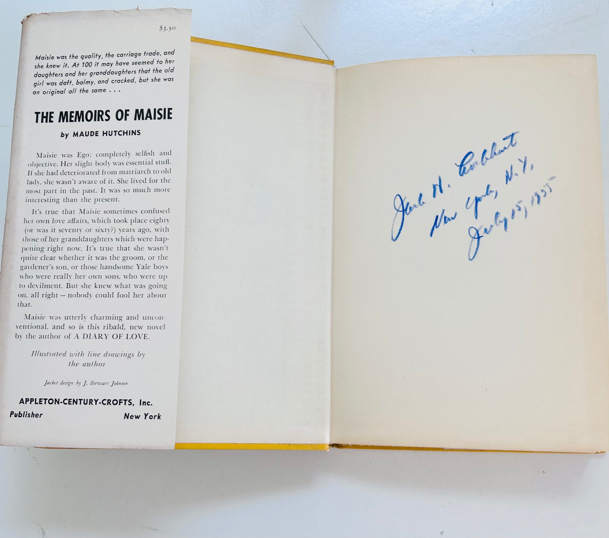 Discover a rare literary treasure from the mid-20th century—The Memoirs of Maisie by Maude Hutchins, presented in an attractive first edition, first printing from 1955. With its unclipped and original dust-jacket, this copy offers both aesthetic charm and collectible value. The jacket shows character with spine chipping and internally taped tears—but remains intact, preserving its vintage appeal. The hardcover remains in excellent shape, with crisp, clean pages and solid binding. A personal touch: the book bears the former owner’s signature on the inside cover, adding provenance without distracting from the text. From the estate of Jack Lockhart of New York, this edition captures both history and literary significance. A wonderful addition for collectors of mid-century fiction, rare dust jackets, or fans of Hutchins’s engaging narratives.