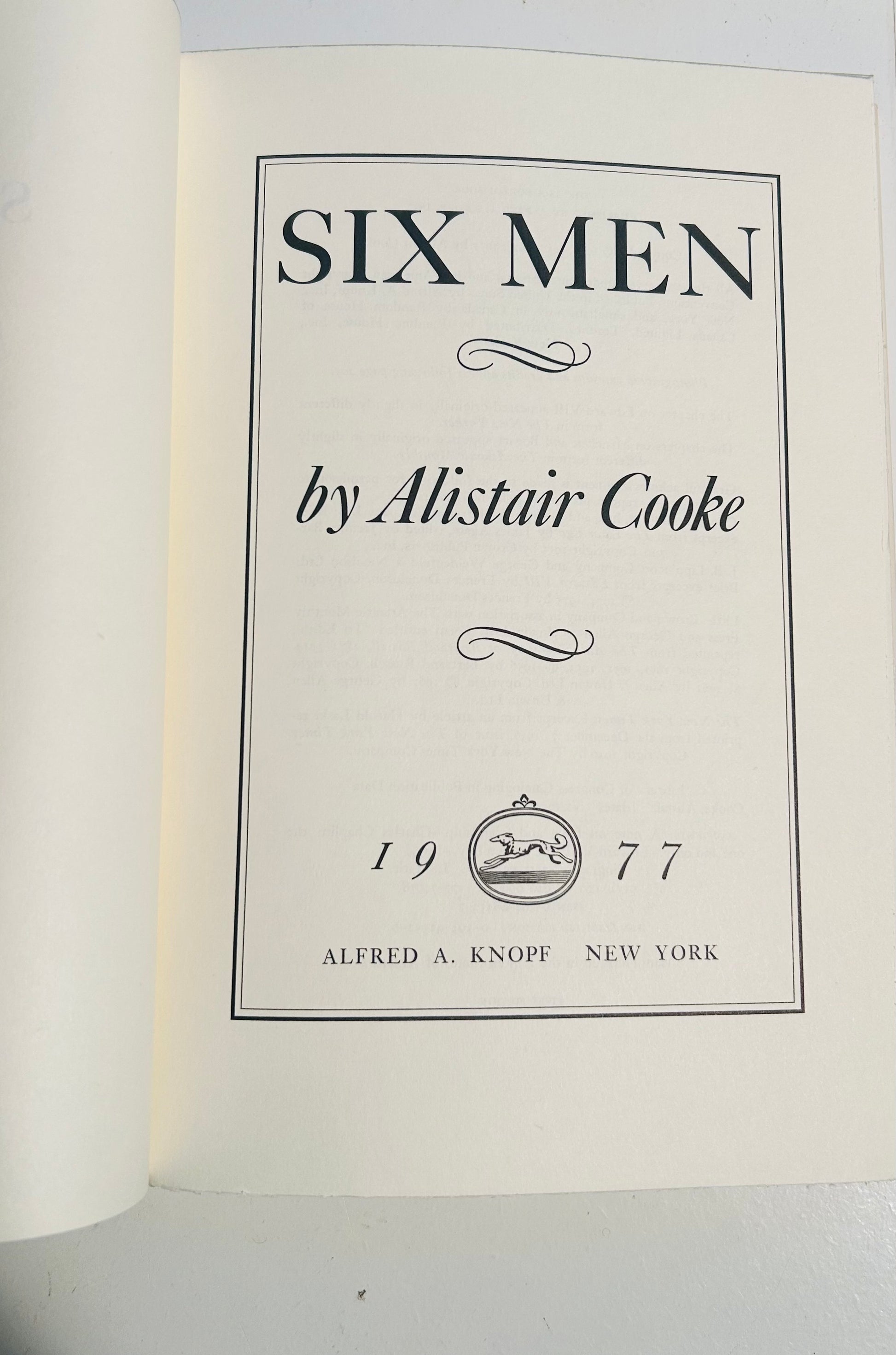 Bring a distinguished piece of 20th-century literary and journalistic history into your collection with this signed first edition of Six Men by Alistair Cooke. Published in New York by Alfred A. Knopf in 1977, this is a stated First Edition and includes the original unclipped dust-jacket, beautifully designed by Lidia Ferrara.