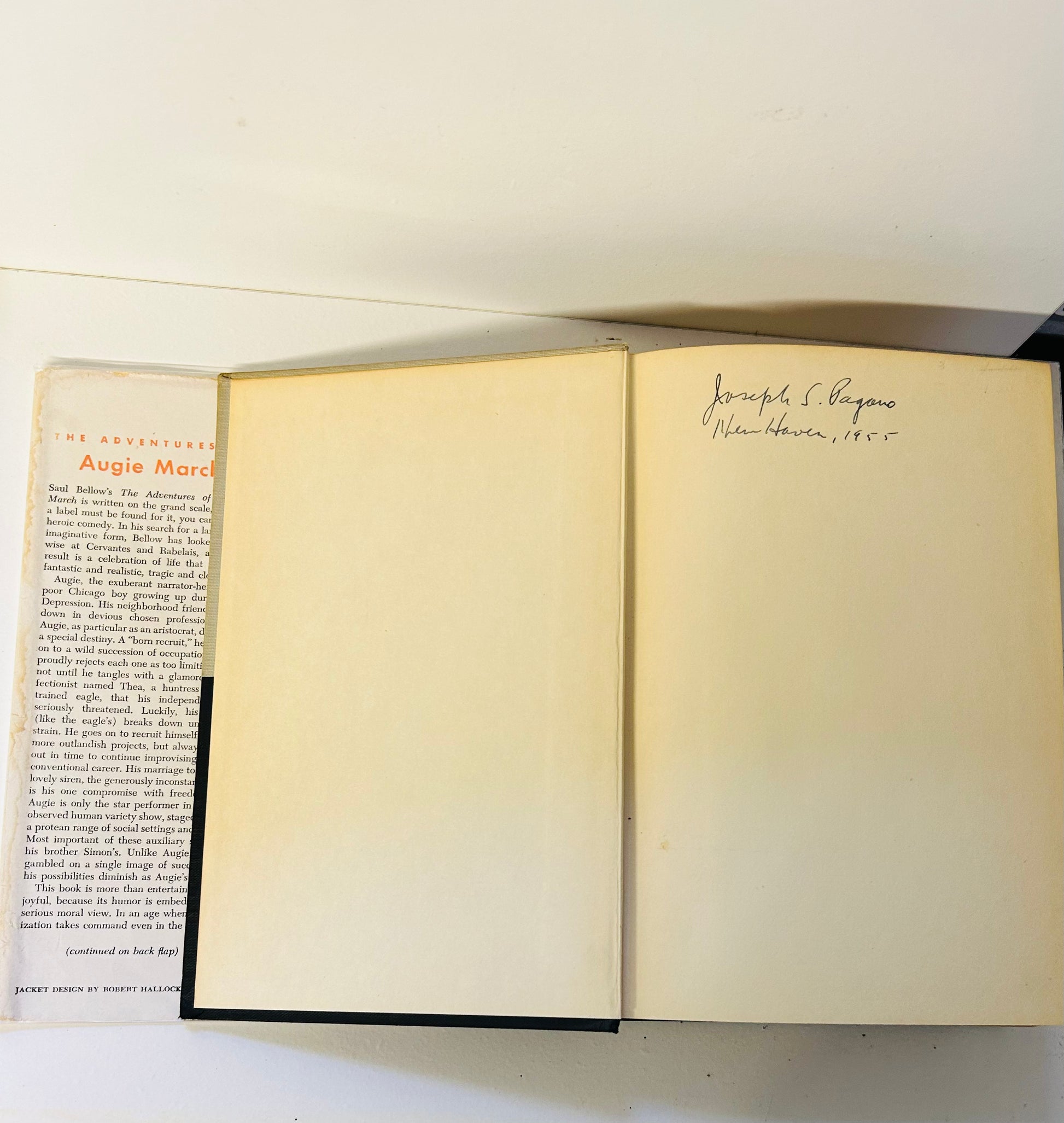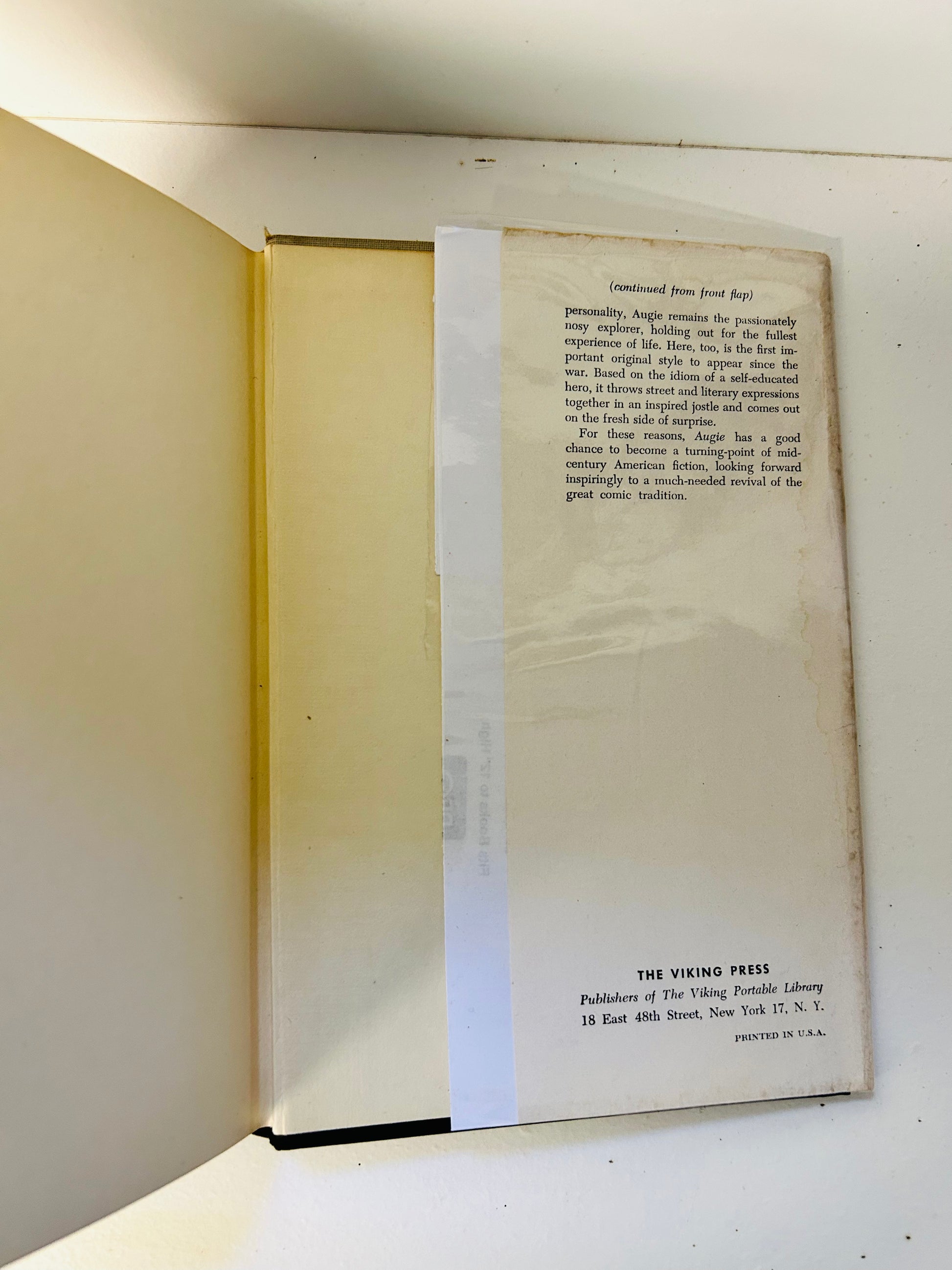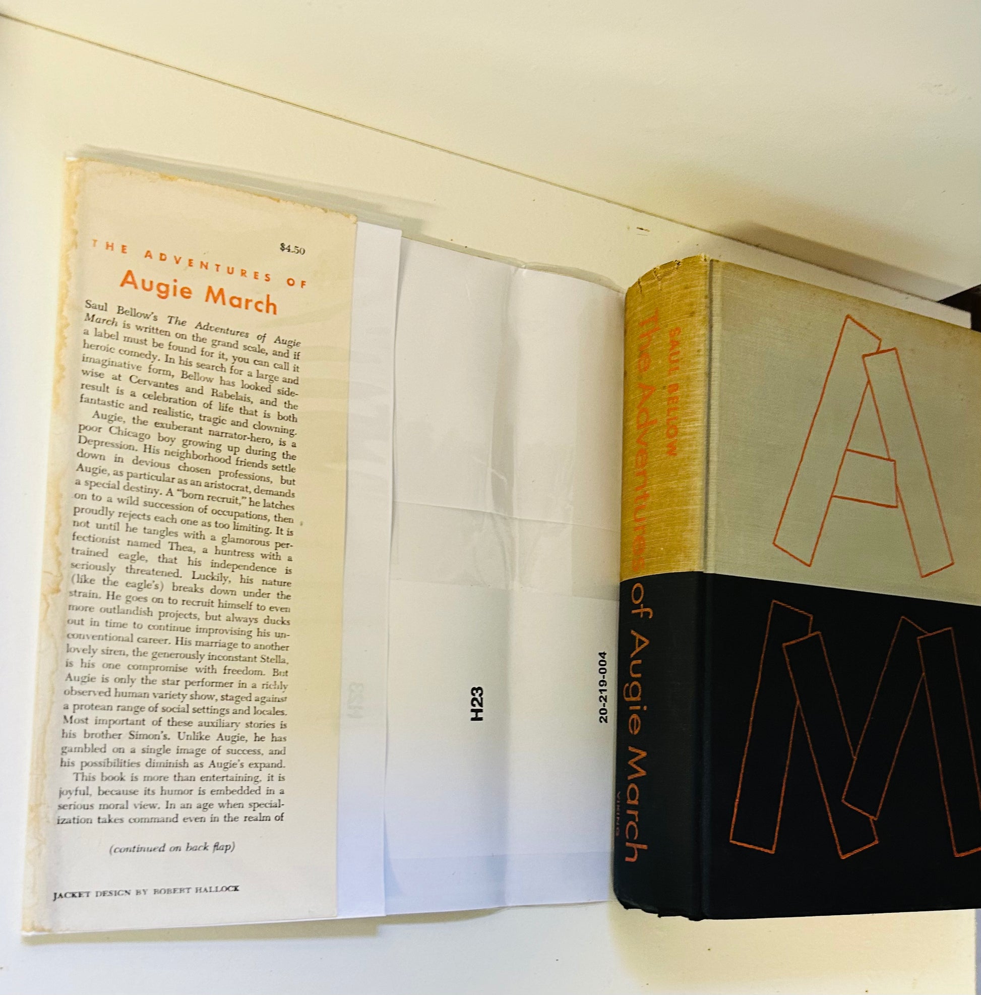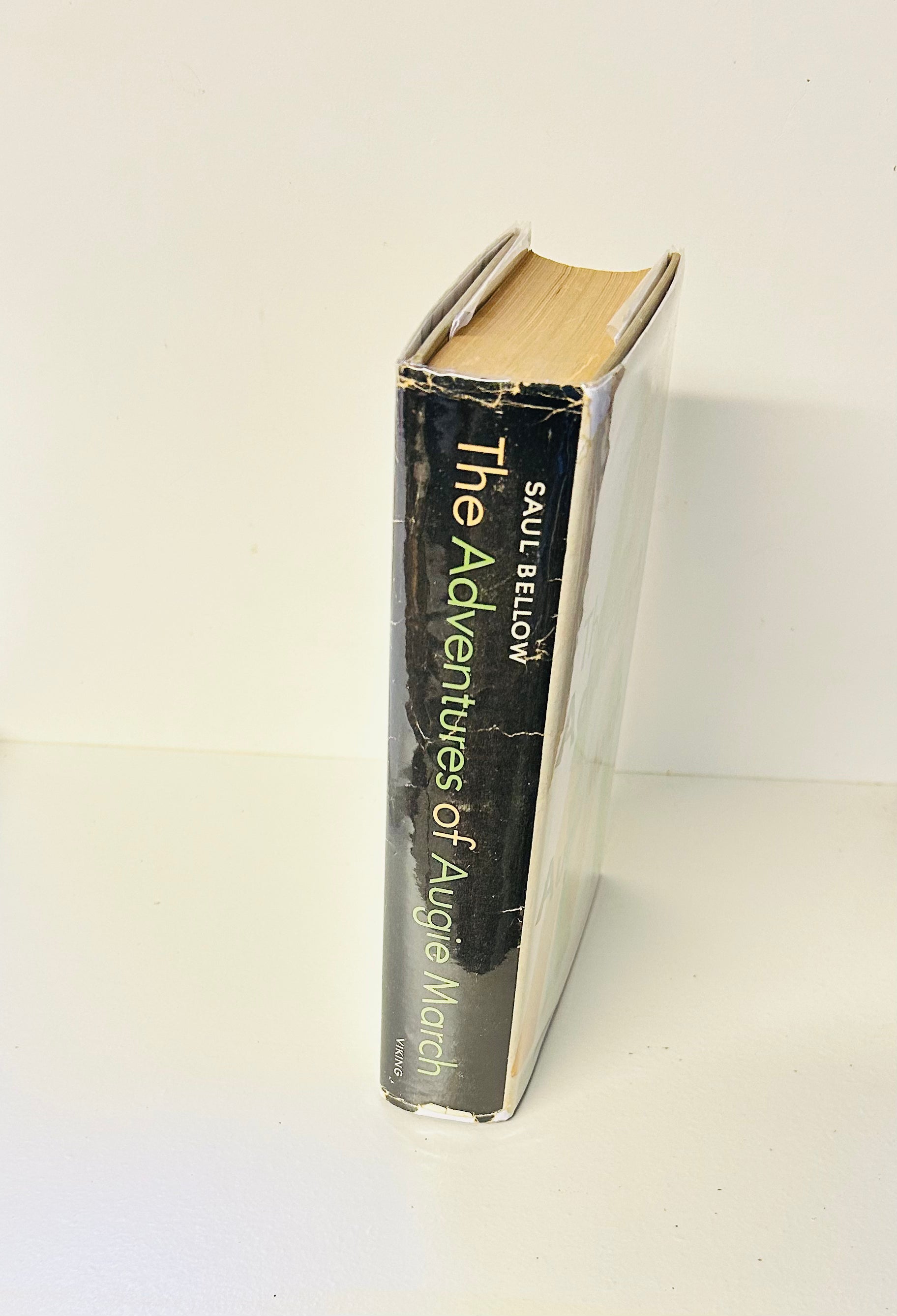 Saul Bellow. First American edition, first printing. New York: Viking Press, 1953. Both unclipped dust jacket, in a mylar protective wrapper, and hardcover are in Very Good+ condition. Jacket design by Robert Hallock. Has former owner signature on flyleaf page. Spine has some fading and is soiled. The jacket, is second state (has no reviews but is missing John Steinbeck write-up on rear flap). Has chipping on the spine as well as a small missing piece on the front corner of jacket.