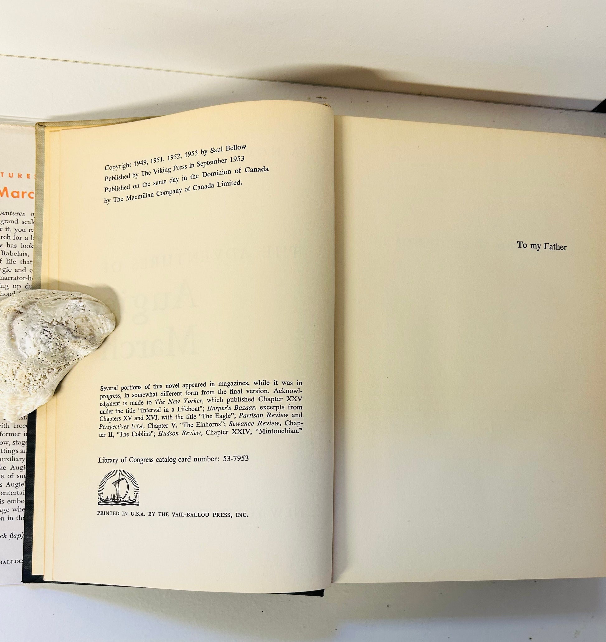 First edition of Bellow's first National Book Award winning novel. All first edition points present including "Printed In The USA By The Vail-Ballou Press Inc." statement on copyright page. A solid example of Bellow's third novel. This was the first of three separate novels Bellow would write that would win the National Book Award.