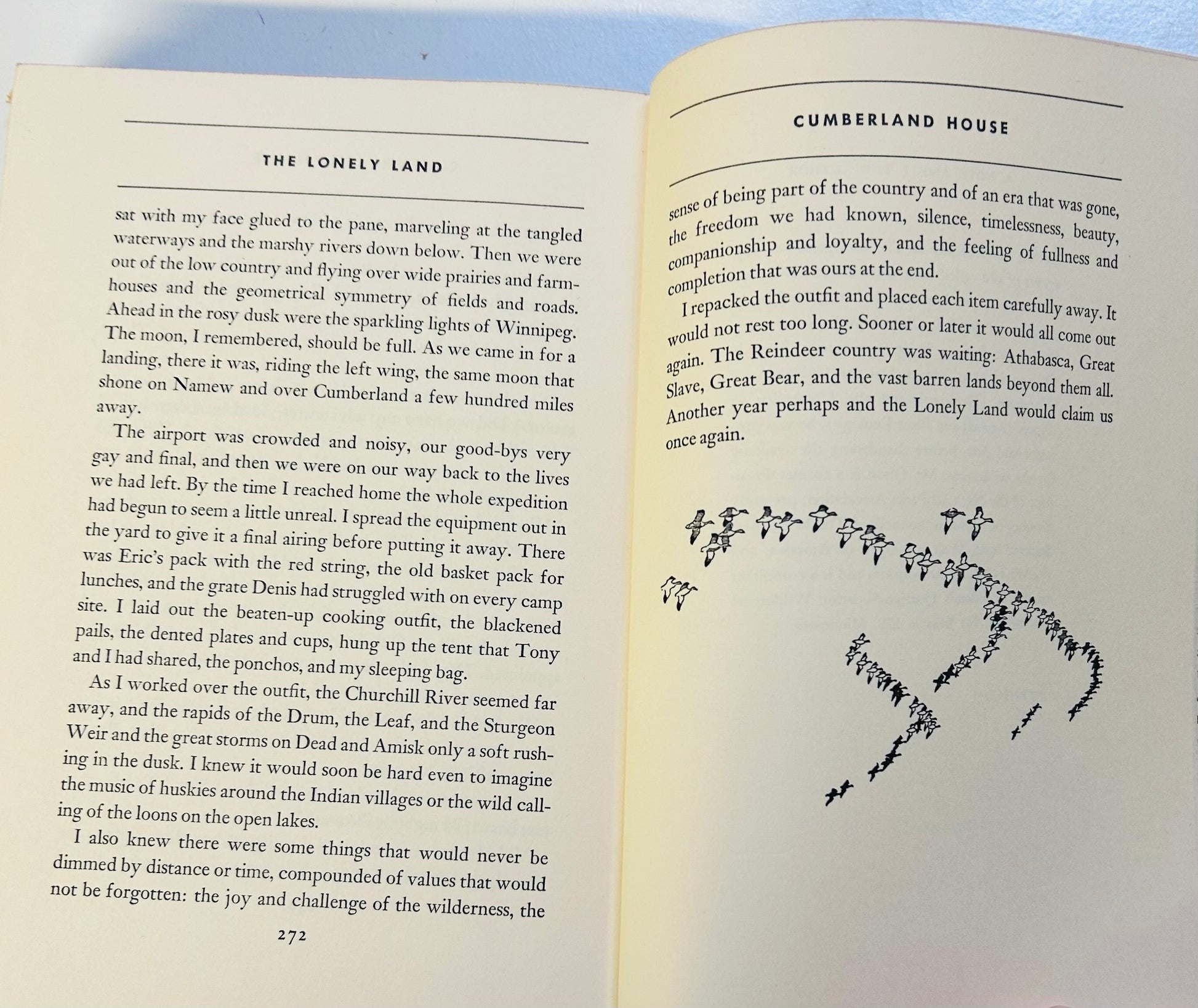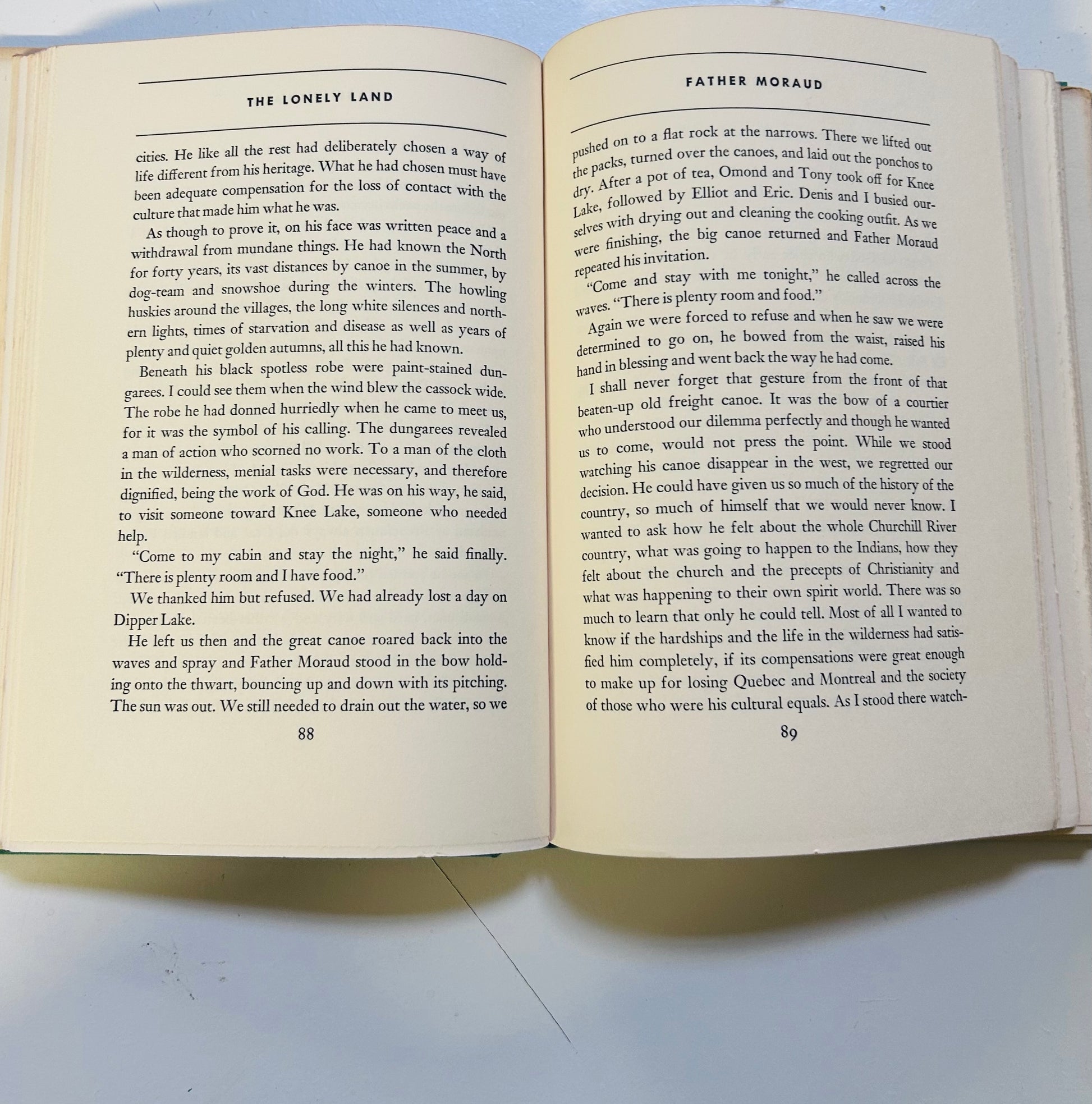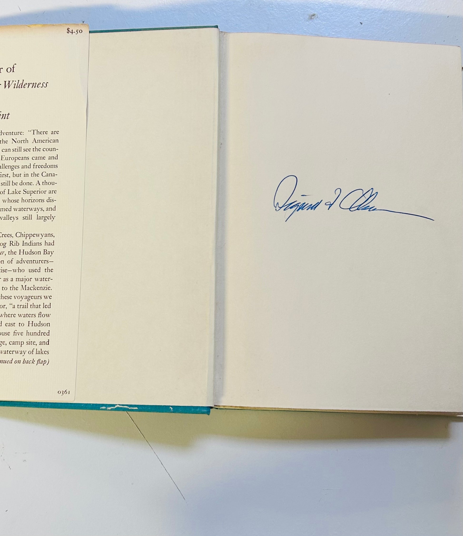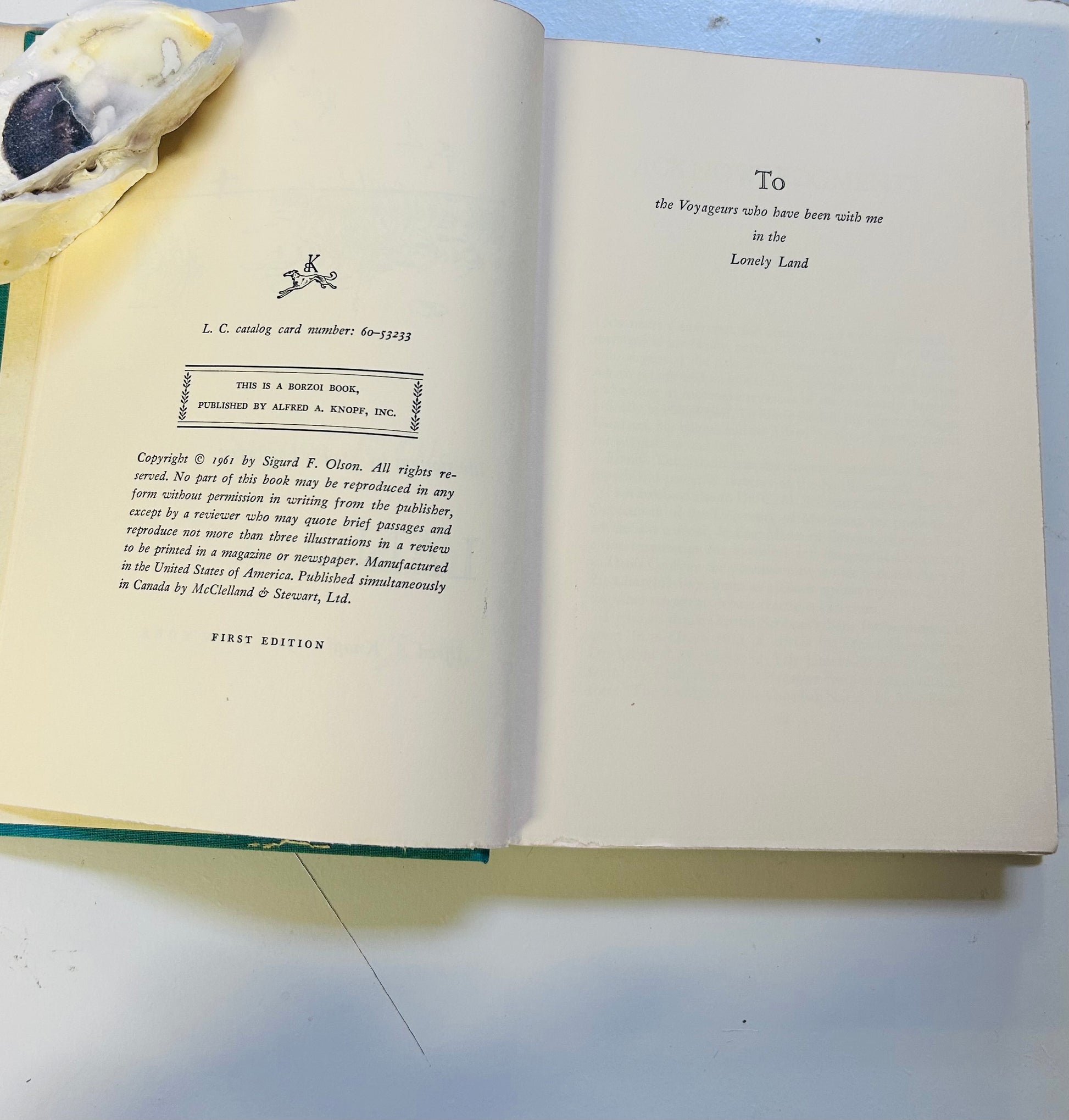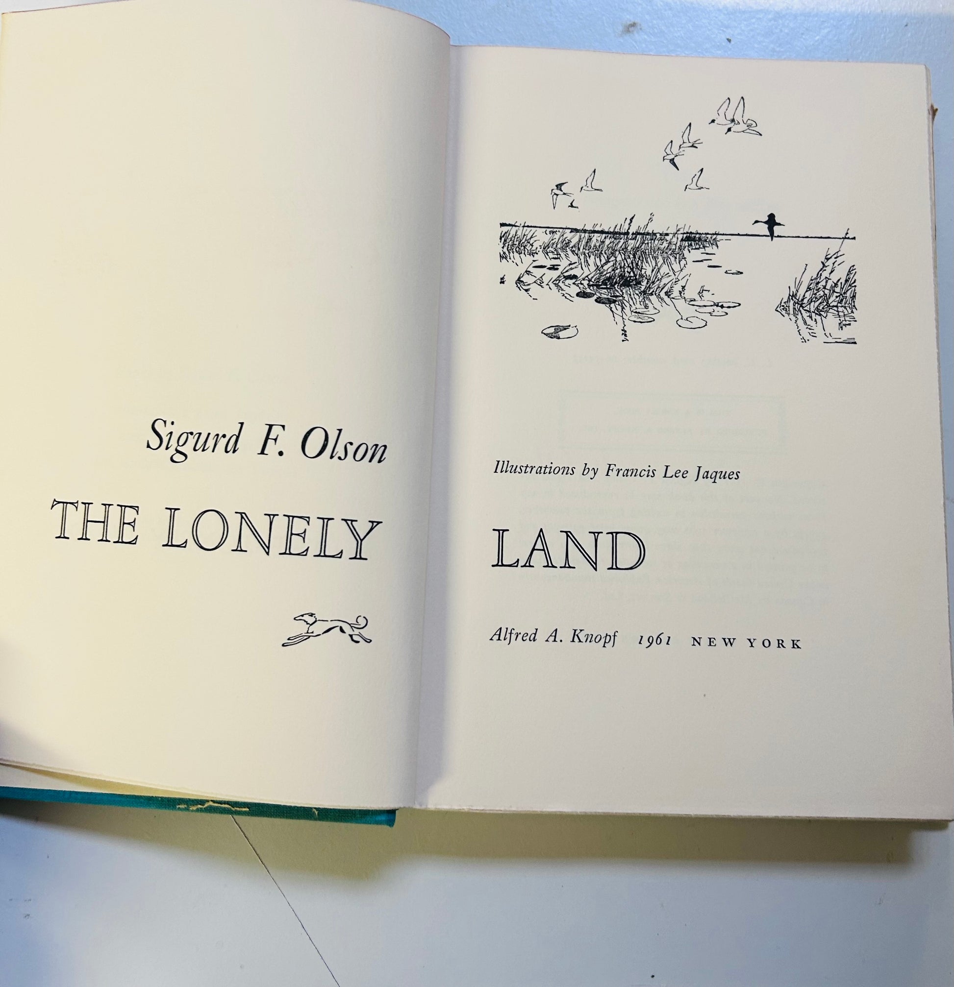 A powerful evocation of the Canadian wilderness, The Lonely Land, is Sigurd F. Olson’s deeply personal account of a 500-mile canoe expedition through the boreal forest along the Churchill River. First published in 1961 by Alfred A. Knopf, this is a stated first edition, signed by Olson on the flyleaf page.