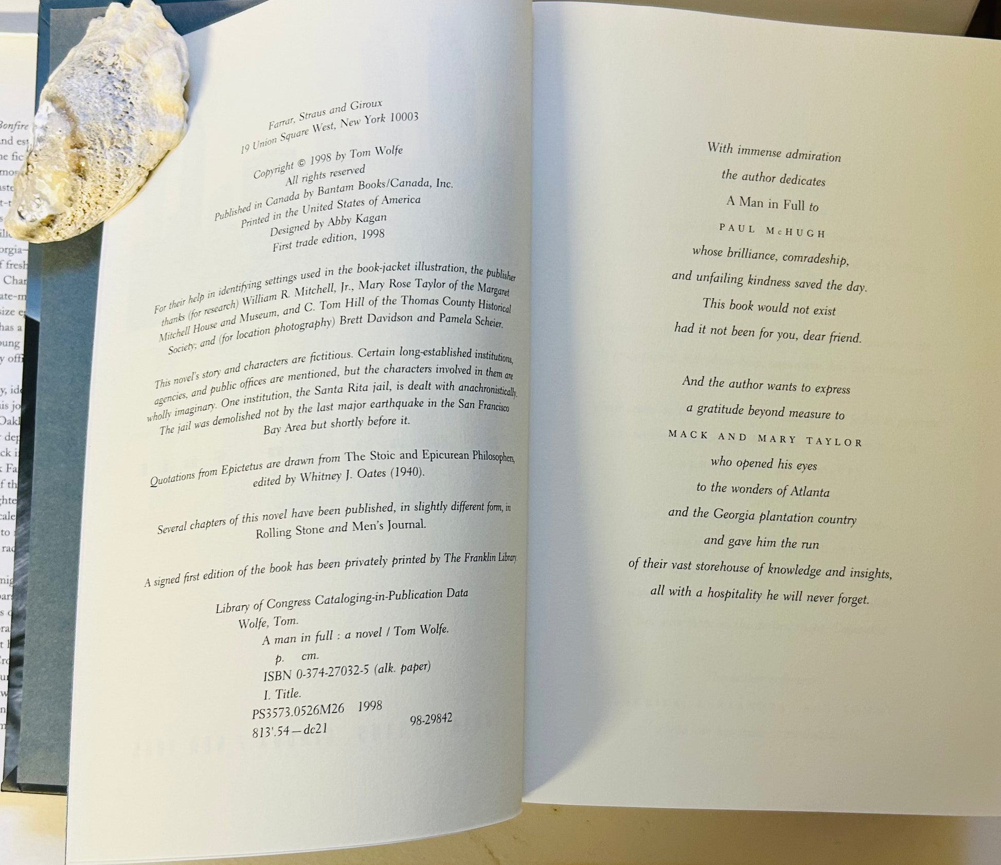 Tom Wolfe. Stated first U.S. edition, first printing. New York: Farrah, Straus and Giroux, 1998. Both unclipped dust jacket and hardcover are in Near Fine condition. Jacket design by Susan Mitchell. No writing or markings in this clean, well preserved edition, 742 pp.