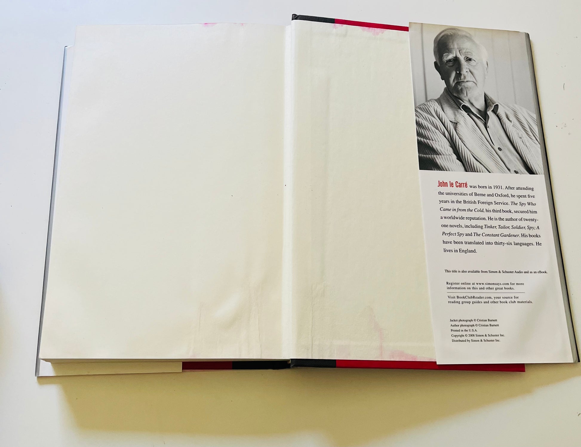John le Carre. First edition. Hardcover: New York, Scribner, 2008. No writing or markings in the book, 322 pp. there is some early signs of foxing. Back flyleaf page and dust jacket has water staining.