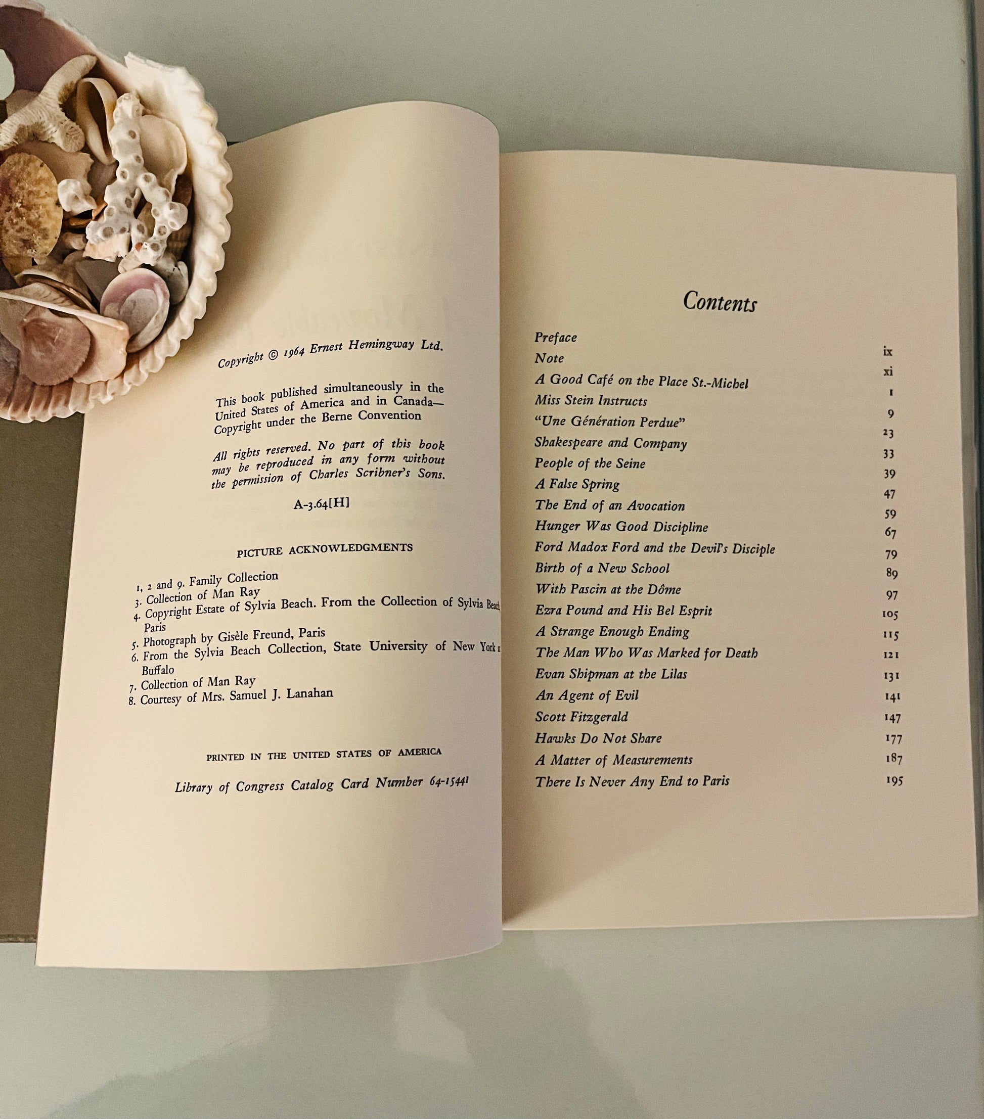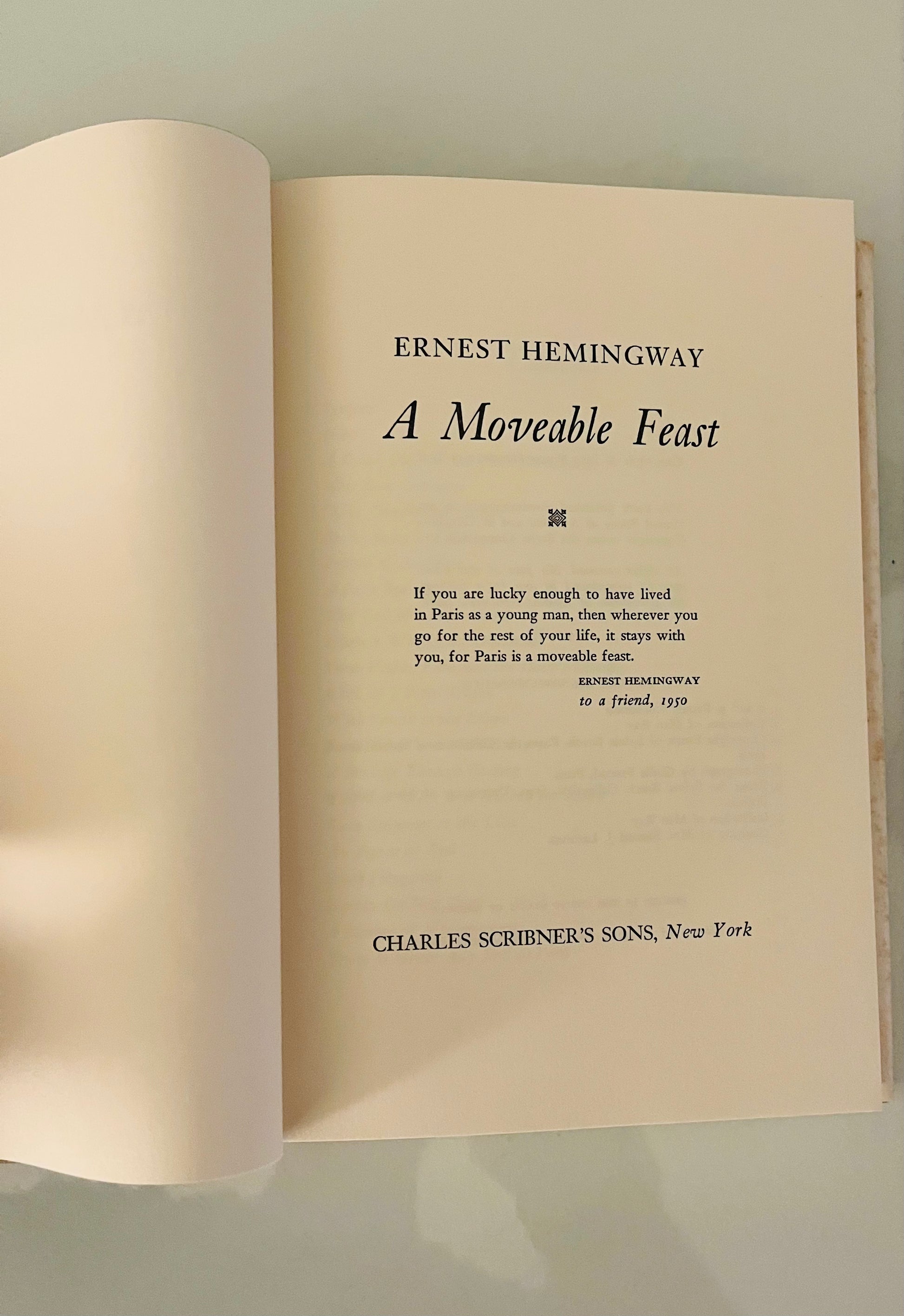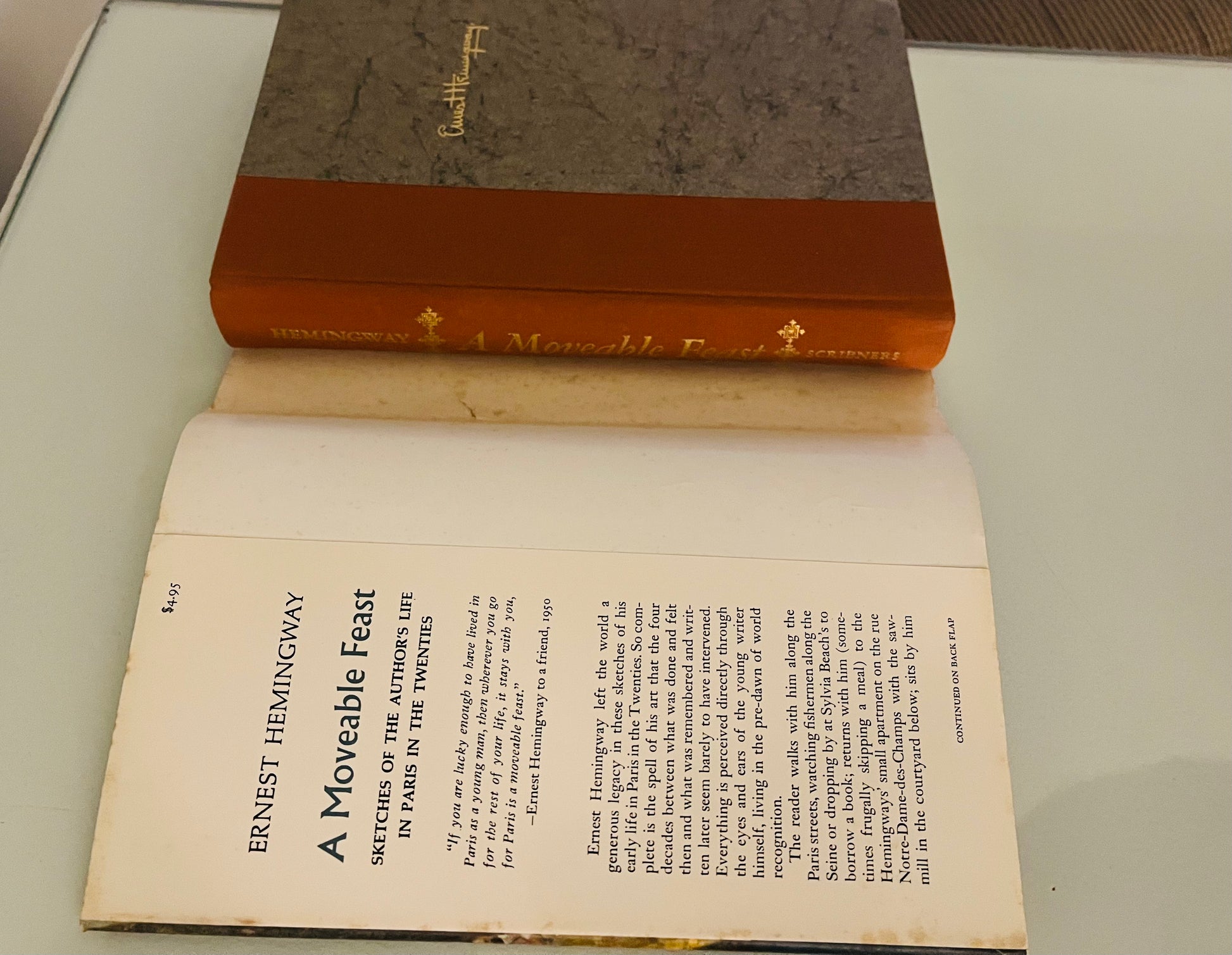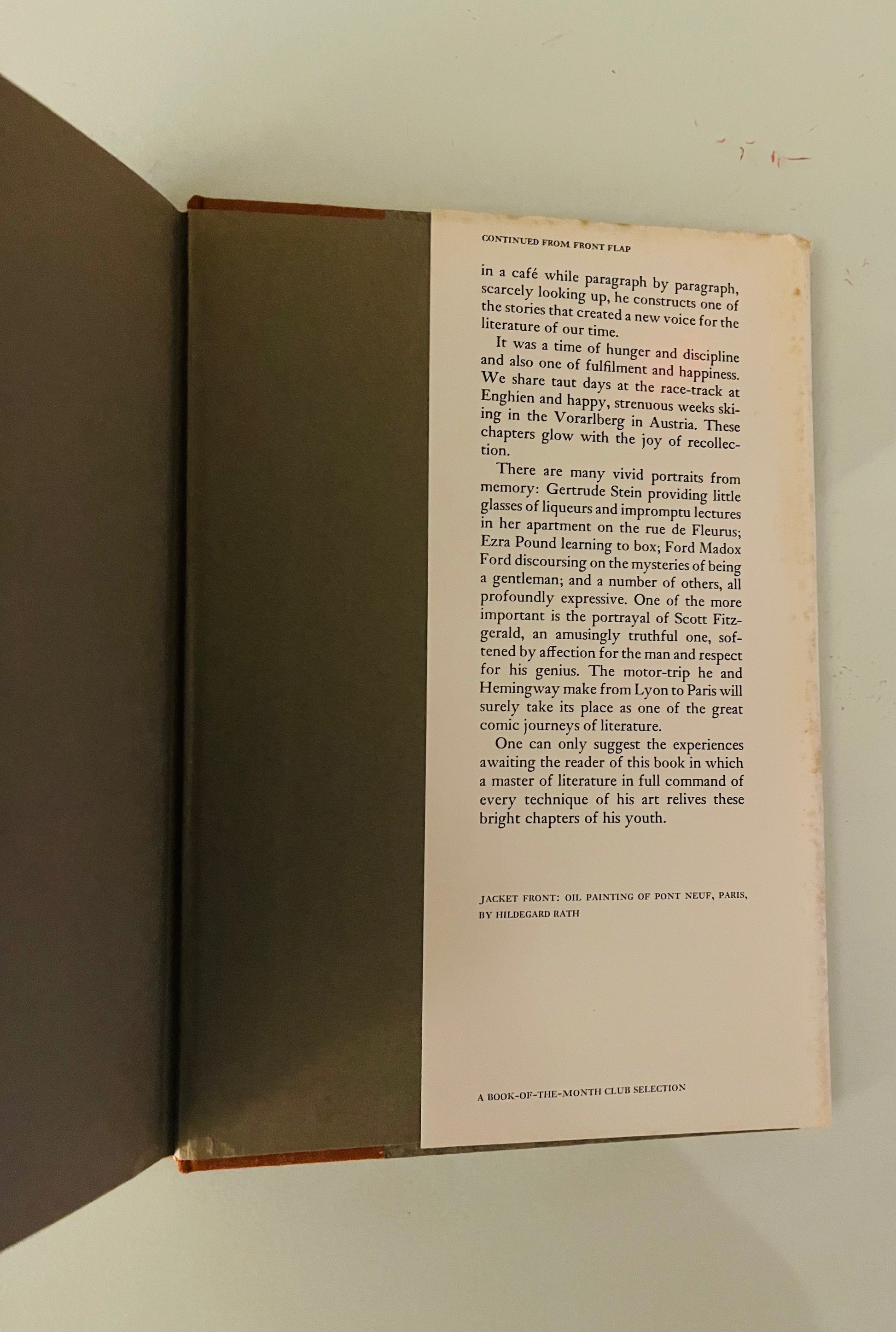 Ernest Hemingway. First edition, first printing. Dust Jacket: Very Good+ An unclipped jacket with original price $4.95 on inside flap (was eventually changed to $3.95). There is some minor chipping on the spine. There is a small area, the size of finger nail, that has some fading on front lower right of the cover. Otherwise, the jacket is in great condition. Hardcover: Near Fine. New York: Charles Scribner's Sons, 1964. Has the appropriate publishing mark, A-3.64(H), denoting a first edition. No writing or markings in this well preserved edition, 211 pp. Grey speckled cloth with orange spine and gold lettering in cover and spine. There is some foxing on the pages. Green endpapers and pastedowns. Contains black/white photographs.