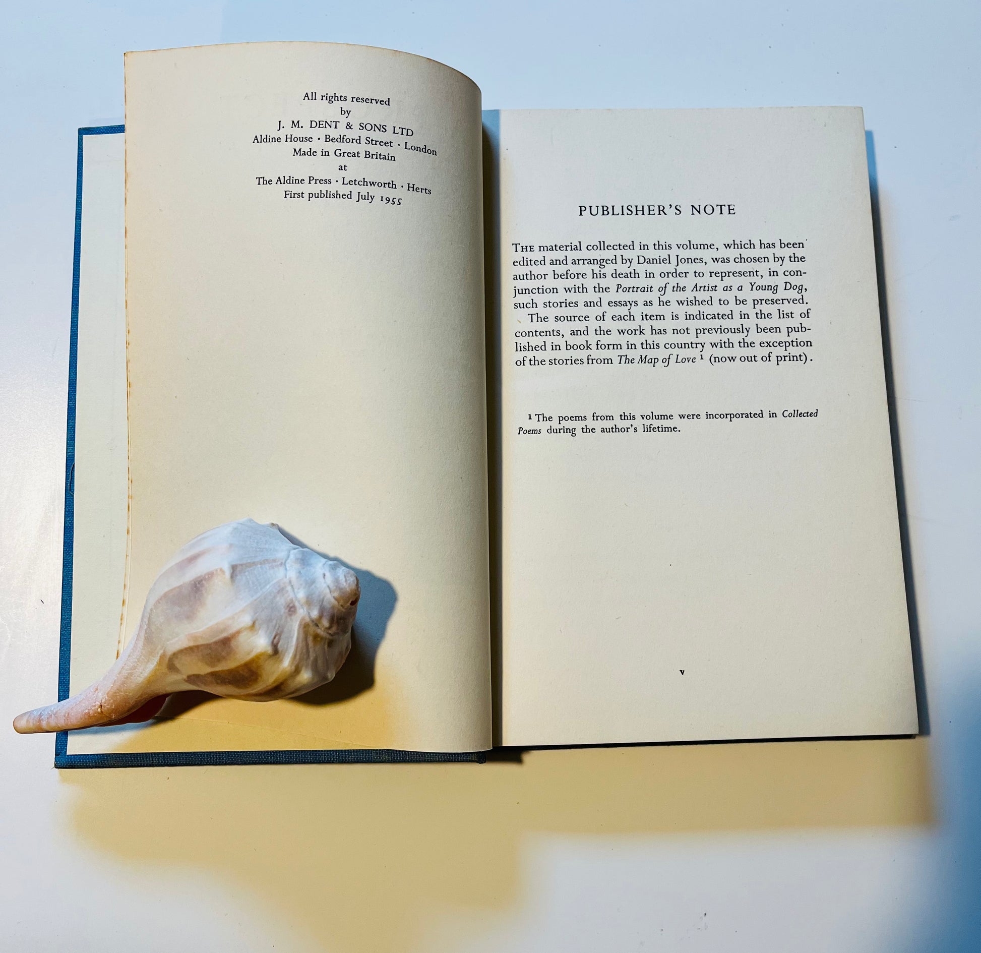 Dylan Thomas. First edition. Dust Jacket: Near Fine. A beautifully designed, unclipped jacket with original price intact. Hardcover: Near Fine. London: J.M. Dent and Sons, 1955. No writing or markings on the book, 136 pp. Blue cloth with silver lettering on the spine.