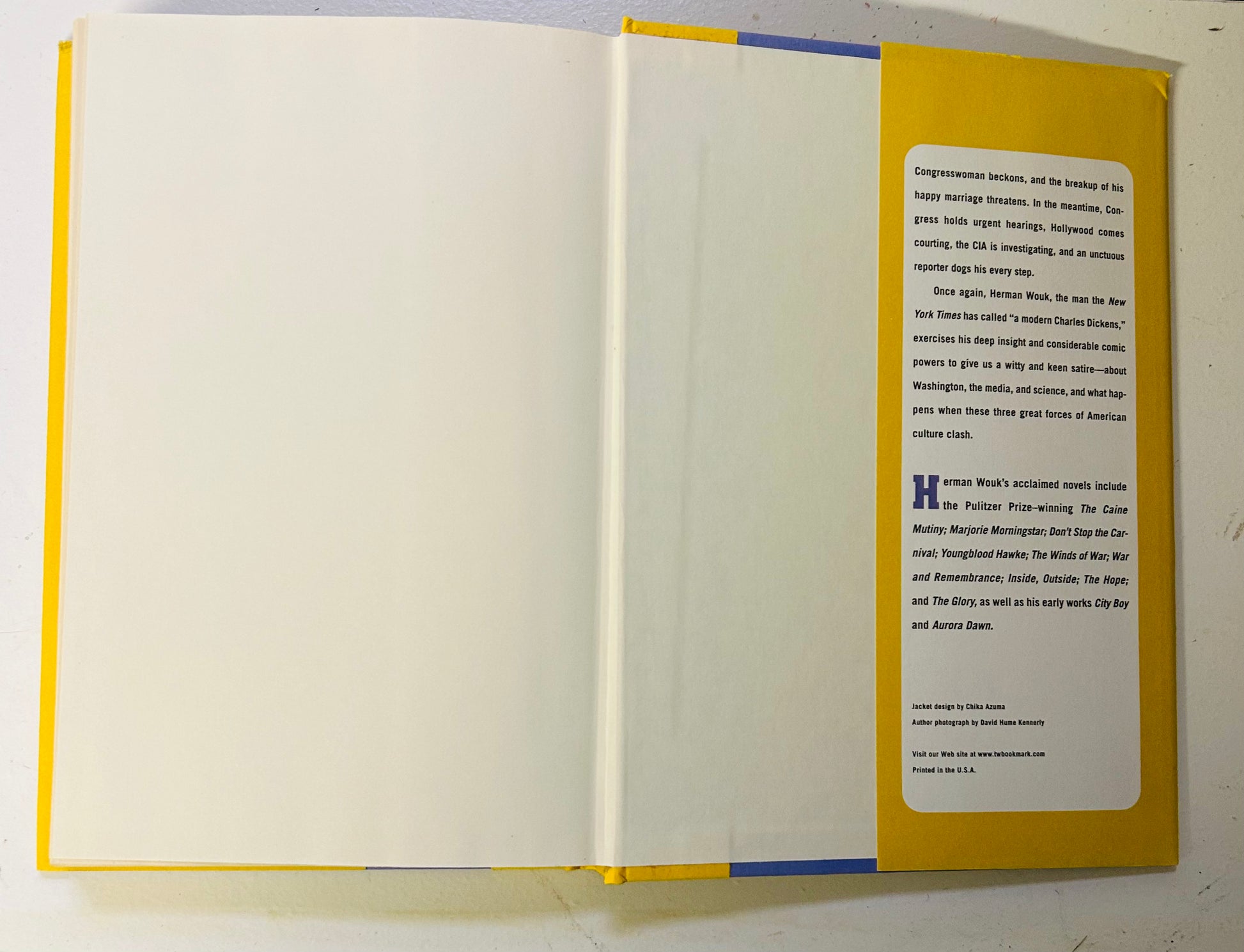 Herman Wouk. First edition (stated), first printing. New York: Little, Brown and Company, 2004. Unclipped dust jacket is in Very Good+ condition. Jacket designed by Chika Azuma. There is a small yellow sticker covering price (which was $25). The hardcover, with yellow cloth, is in Near Fine condition. No writing or markings in this well preserved book, 278 pp.