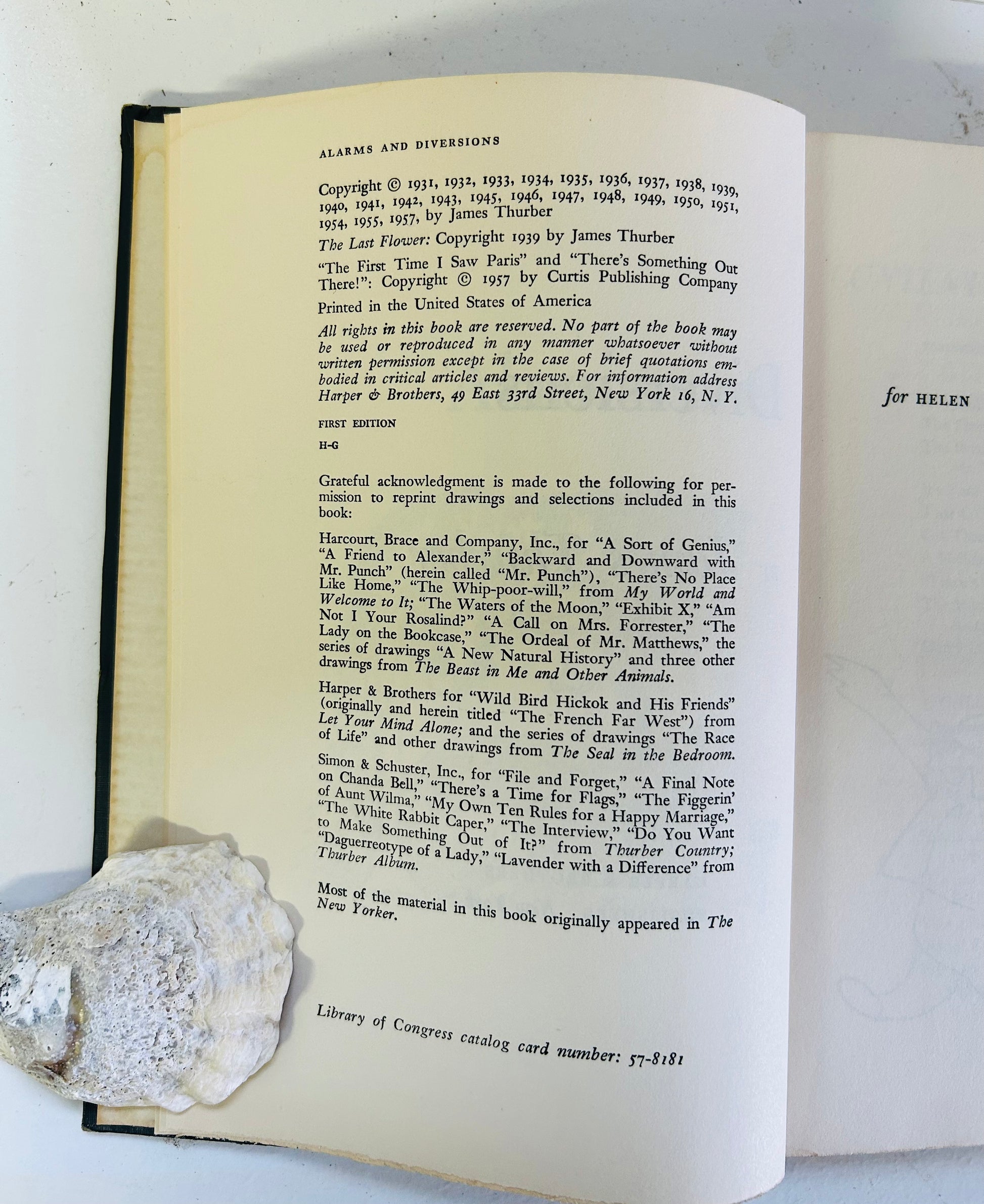 James Thurber. Stated first edition. New York: Harper and Brothers Publishers, 1957. Missing dust jacket. Hardcover is in Very Good condition. Other than the former owner signature and sticker on flyleaf, there are no additional markings or writing in the book, 367 pp.