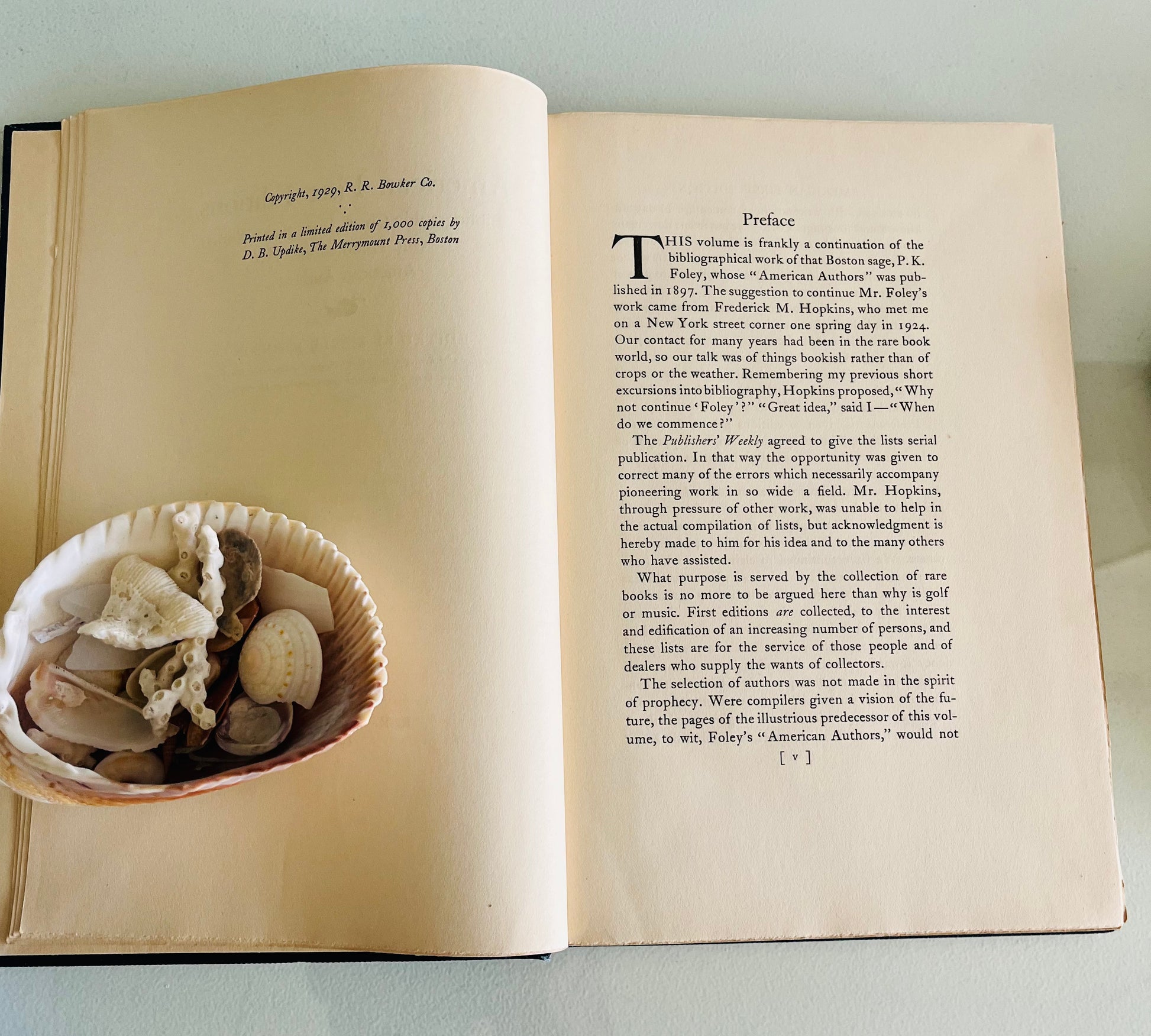 Merle Johnson (ed.) New York: R.R. Bowker, Co., 1929. American First Editions: Bibliographic Check Lists of the Works of One Hundred and Five American Authors. Dust Jacket: None. Hardcover: Very Good+ Blue cloth with black lettering on spine. No writing or markings in the book, 241 pp.