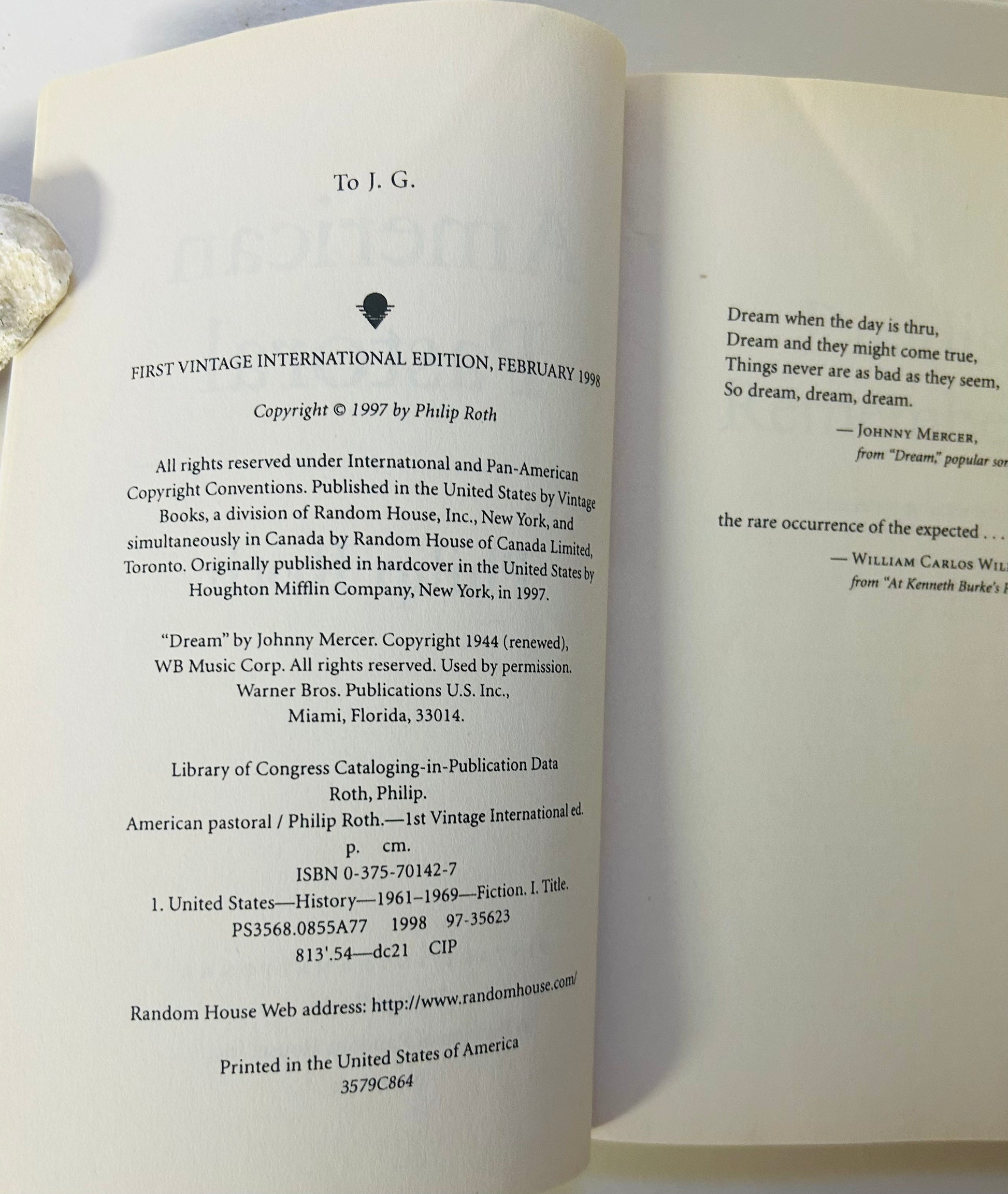 Philip Roth. Softcover. New York: Vintage Books, 1998. The paperback is in Very Good+ condition. No writing or markings in the paperback book, 423 pp.