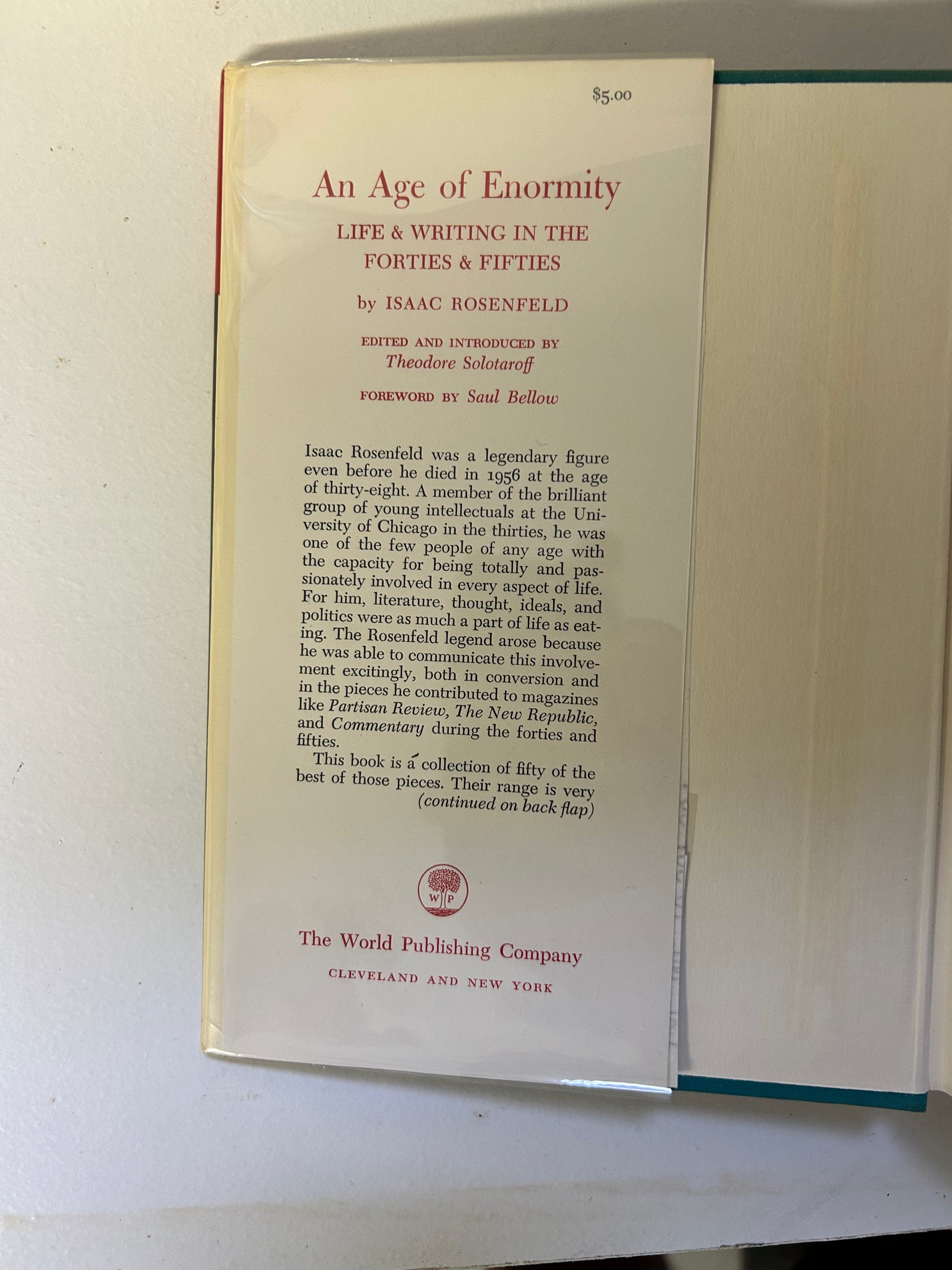 Isaac Rosenfeld. First edition (stated). New York: The World Publishing Company, 1962. Both unclipped dust jacket, in a mylar protective wrapper, and hardcover are in Very Good+ condition. There is some chipping on top of spine. No writing or markings in this well preserved copy, 347 pp. Edited and introduced by Theodore Solotaroff. A wonderful foreword written by the great Saul Bellow.