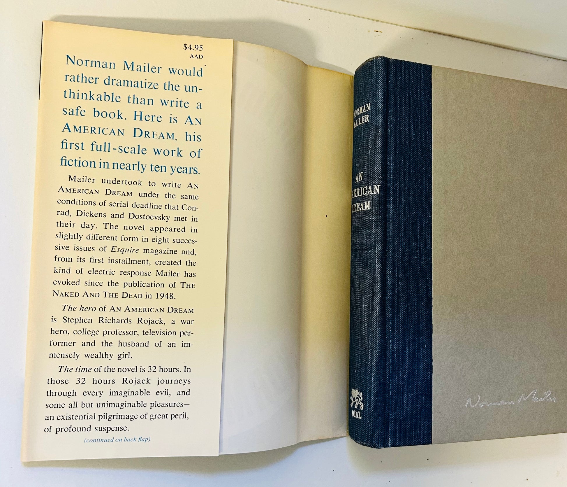 Norman Mailer. First edition. New York: The Dial Press, 1965. Both unclipped dust jacket and hardcover are in Very Good+ condition. The jacket was designed by the great Paul Bacon. No writing or markings in the book, 270 pp. Photograph of author by Anne Barry.
