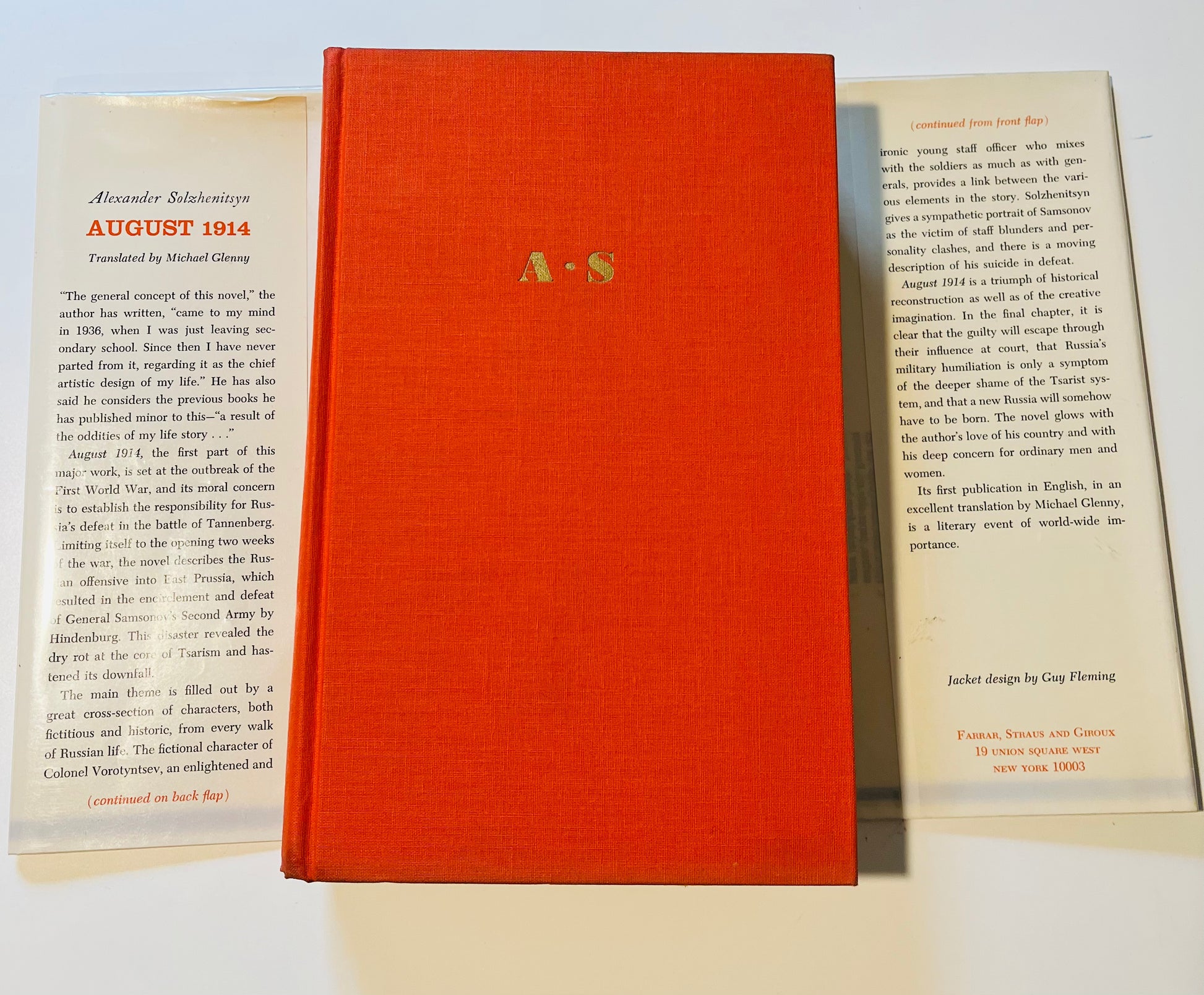 Alexander Solzhenitsyn. First American edition. Dust Jacket: Near Fine. An unclipped brilliant jacket designed by Guy Fleming. Drawing of author on rear jacket by Karl W. Stuecklen. In mylar, protective wrapper. Hardcover: Near Fine. New York: Farrar, Straus and Giroux, 1972. Translated by Michael Glenny. Red cloth gold lettering on cover and spine. No markings or writing in the book, like new, 622 pp.