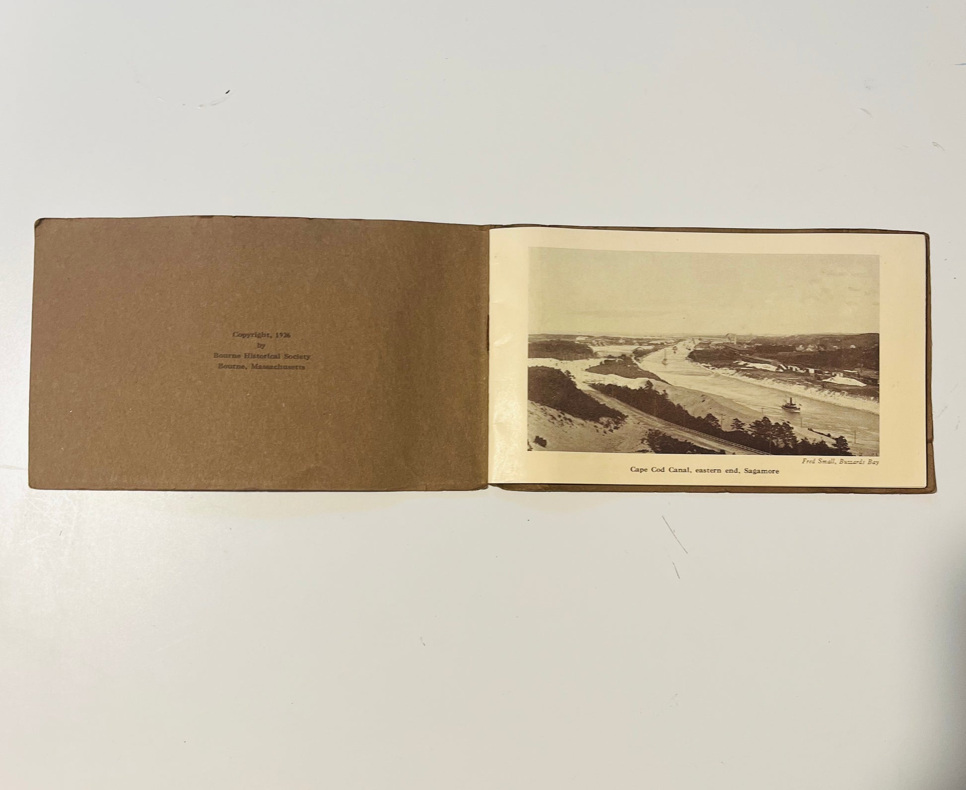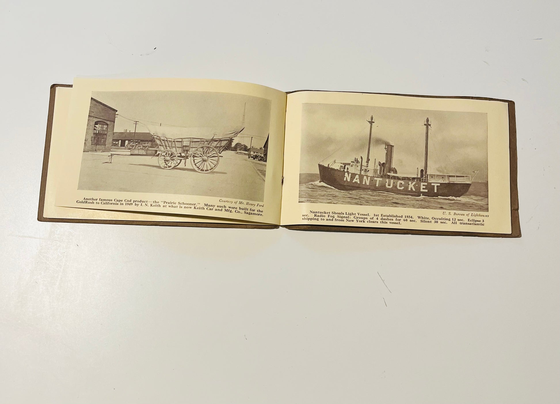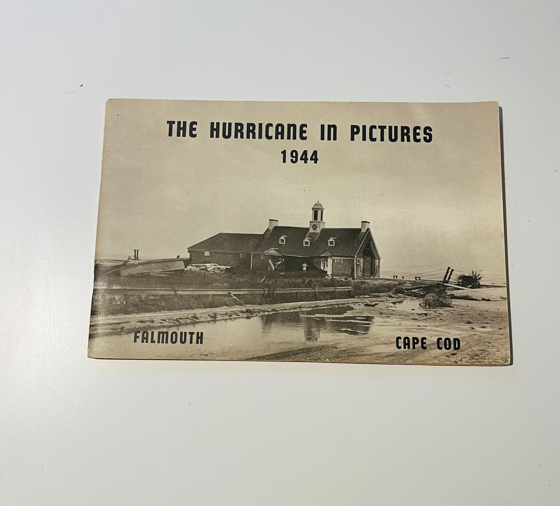 Two pieces of ephemera regarding Cape Cod. The first one, a smaller piece, was published in 1926. It is from the Bourne Historical Society in Bourne, MA. It is a small black and white picture book with a leather cover of what the Cape was like approximately one hundred years ago. The second, larger piece is a softcover pit tire booklet depicting the 1944 hurricane that hit Falmouth, MA. Both piece are in Near Fine conditioning with no writing or markings in both.