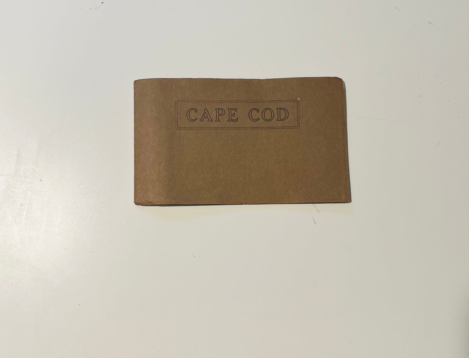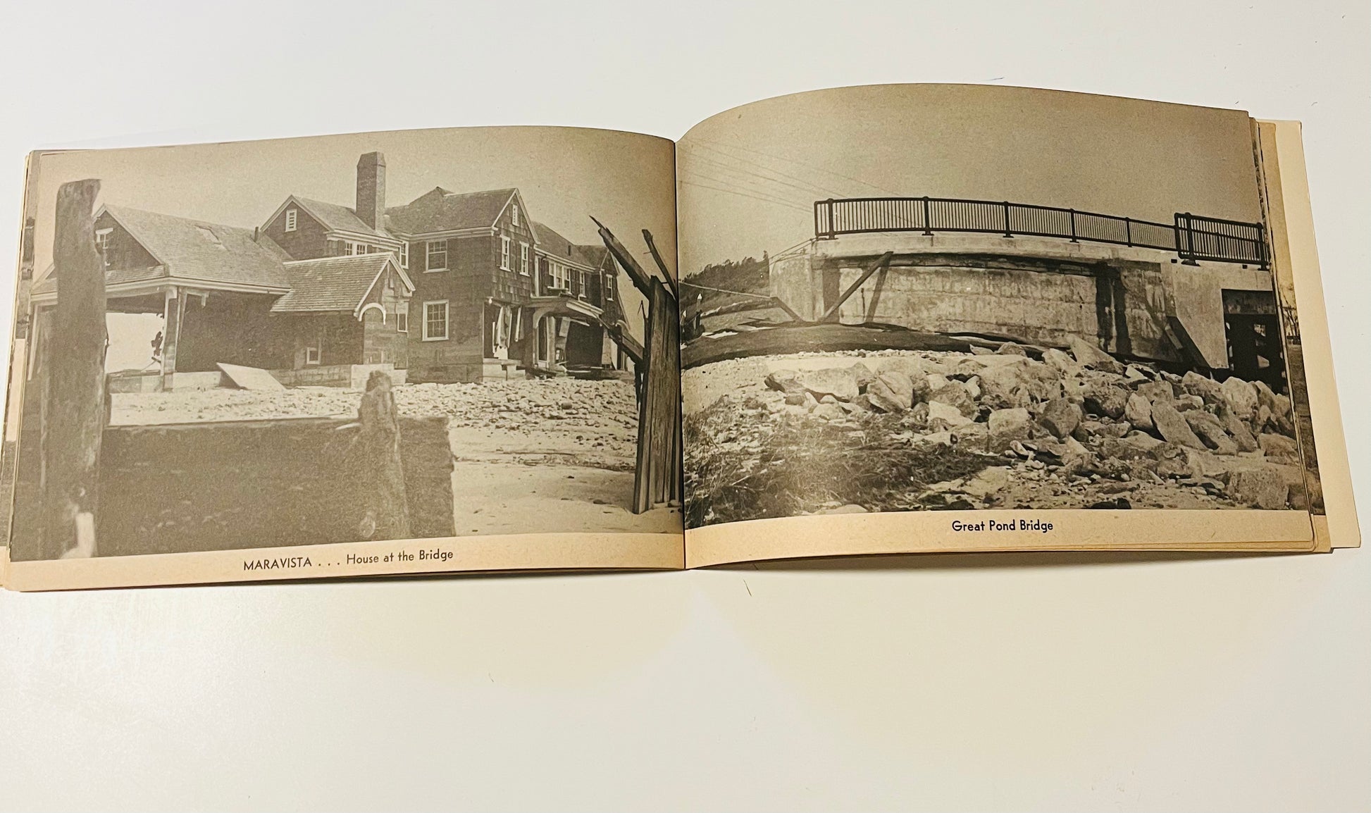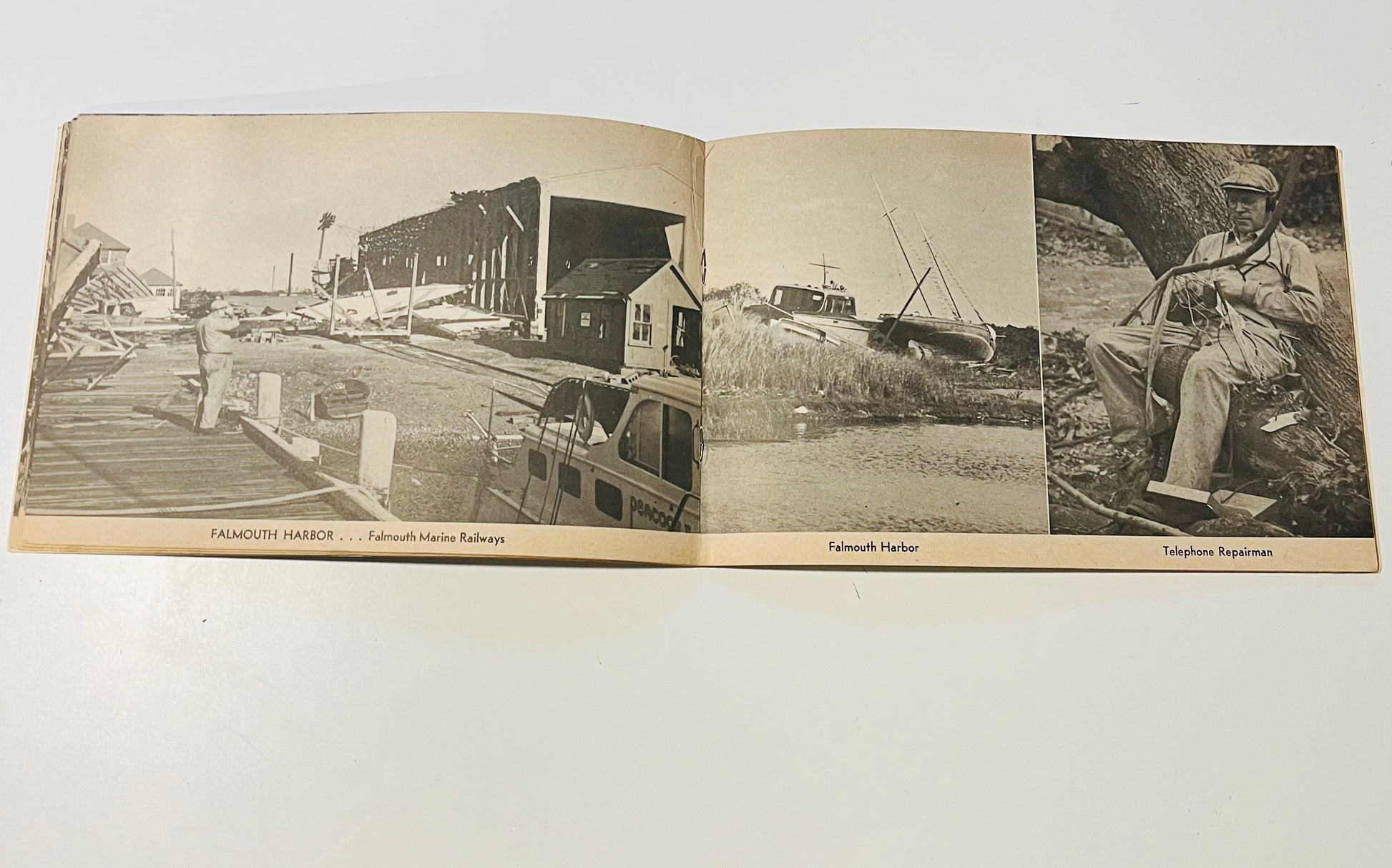 Two pieces of ephemera regarding Cape Cod. The first one, a smaller piece, was published in 1926. It is from the Bourne Historical Society in Bourne, MA. It is a small black and white picture book with a leather cover of what the Cape was like approximately one hundred years ago. The second, larger piece is a softcover pit tire booklet depicting the 1944 hurricane that hit Falmouth, MA. Both piece are in Near Fine conditioning with no writing or markings in both.