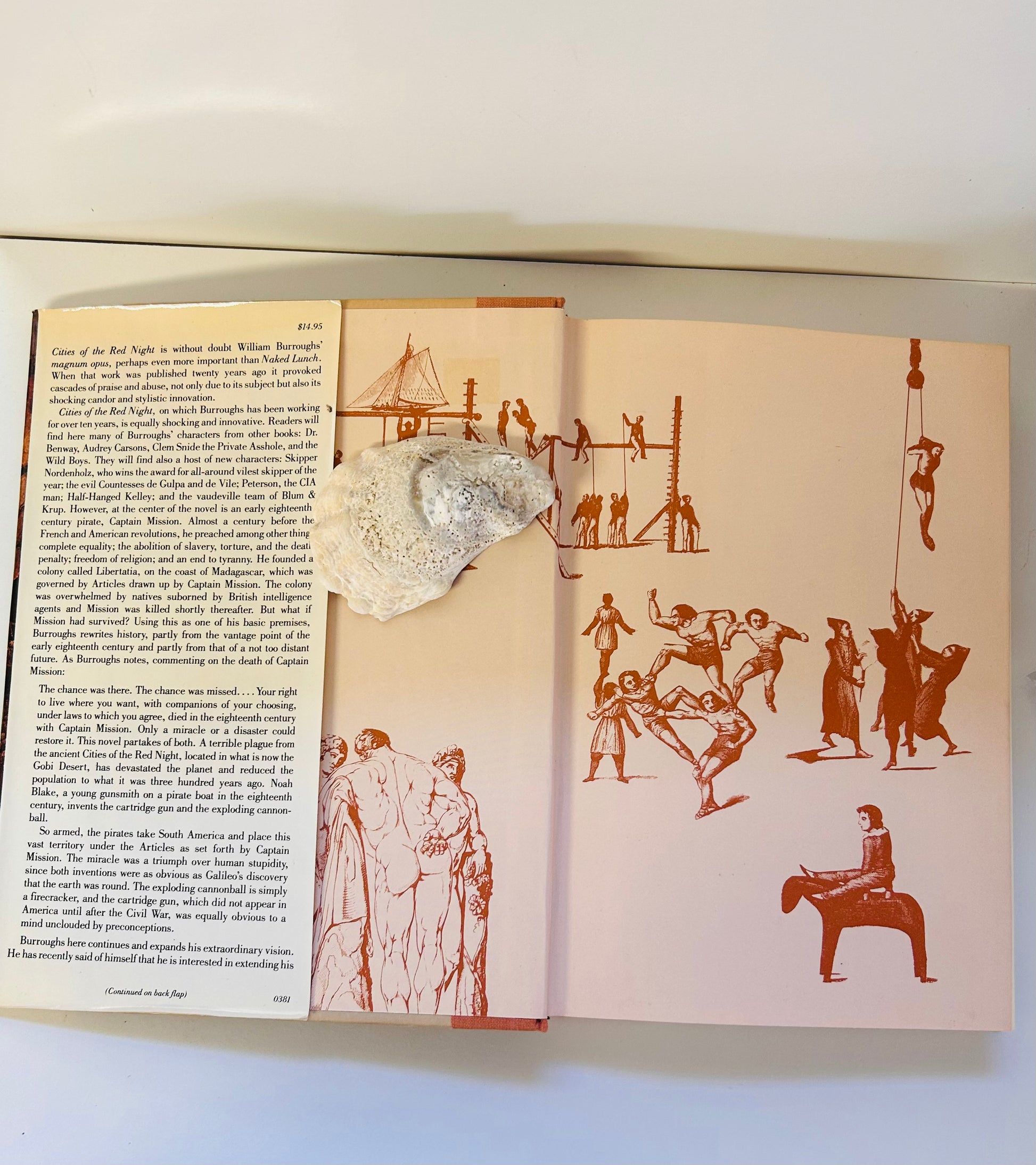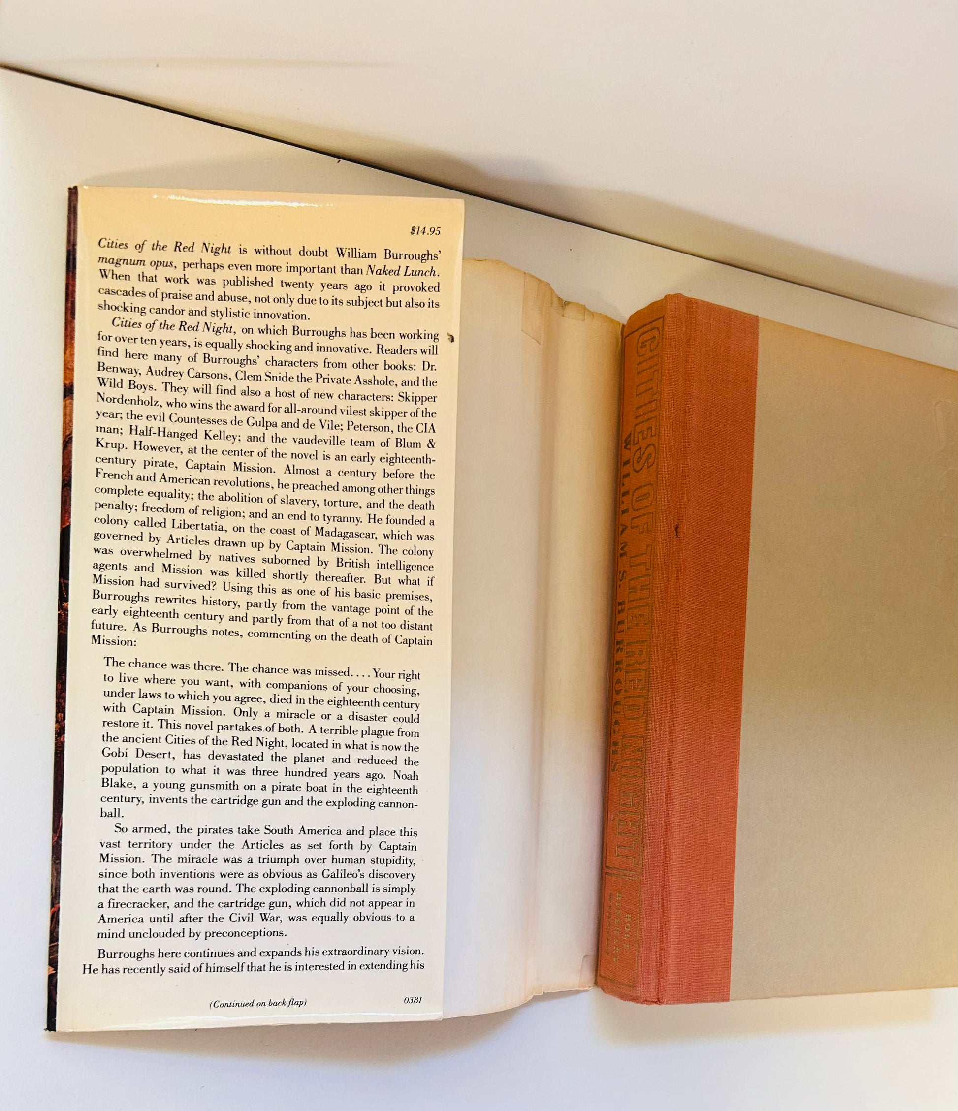 The writing of Cities of the Red Night, first installment of this trilogy, coincided with Burrough's move from Manhattan's Bowery to Lawrence, Kansas, in 1981. The trilogy "proposes a revisionary history of the Americas that would avoid the horrors of colonialism, slavery and despotism. The first volume rewrites history to make gay pirates founders of pan-American communes that become havens for nonconformists from all over the world. In the sequels, libertarian gunslingers attempt to prevent the formation of despotic centralised governments.
