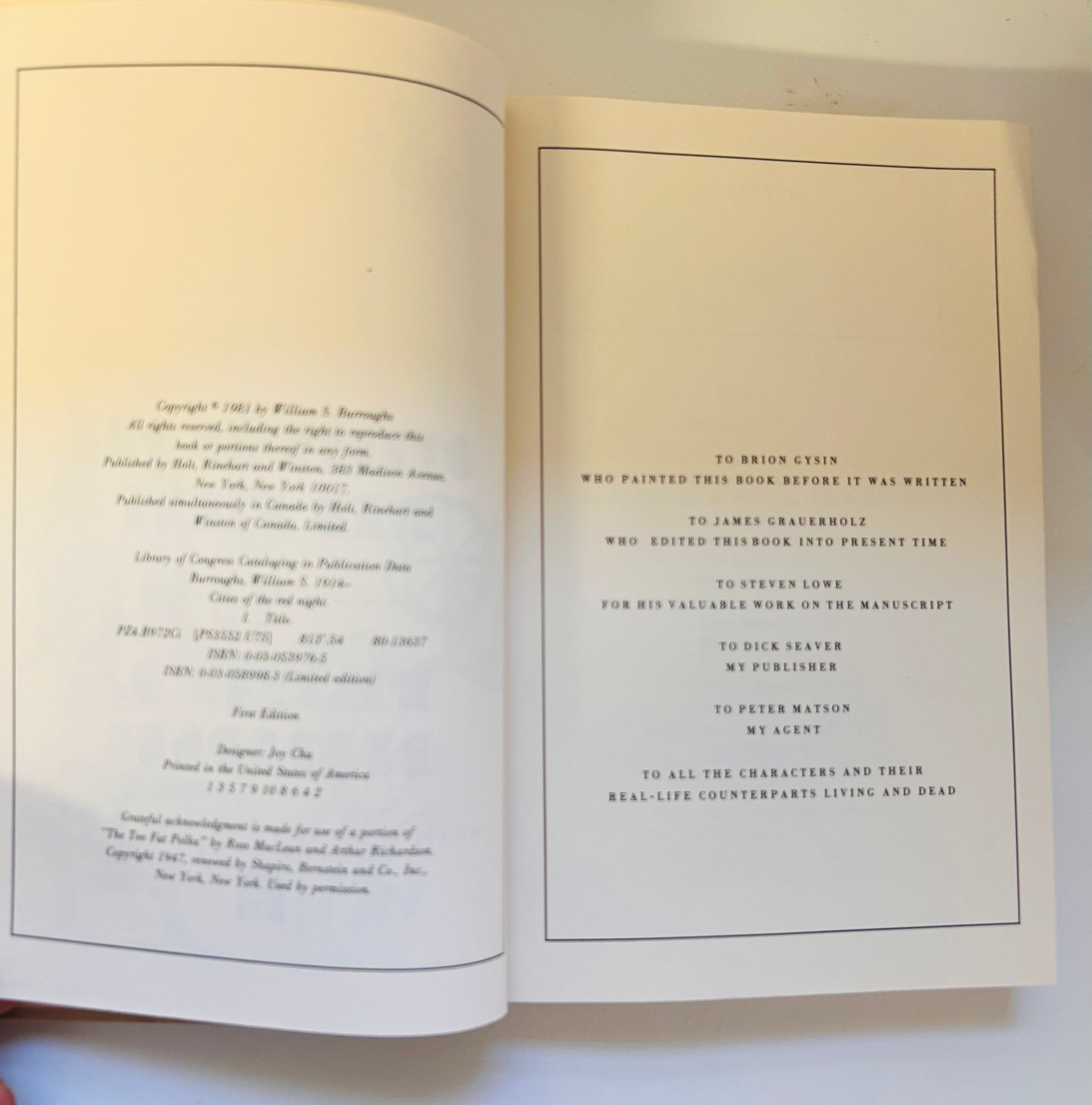 William S. Burroughs. Stated first edition, first printing. New York: Holt, Rinehart and Winston, 1981. Both dust jacket and hardcover in Very Good+ condition. Jacket is unclipped with original price on inside flap. No writing or markings in the book, 331 pp.