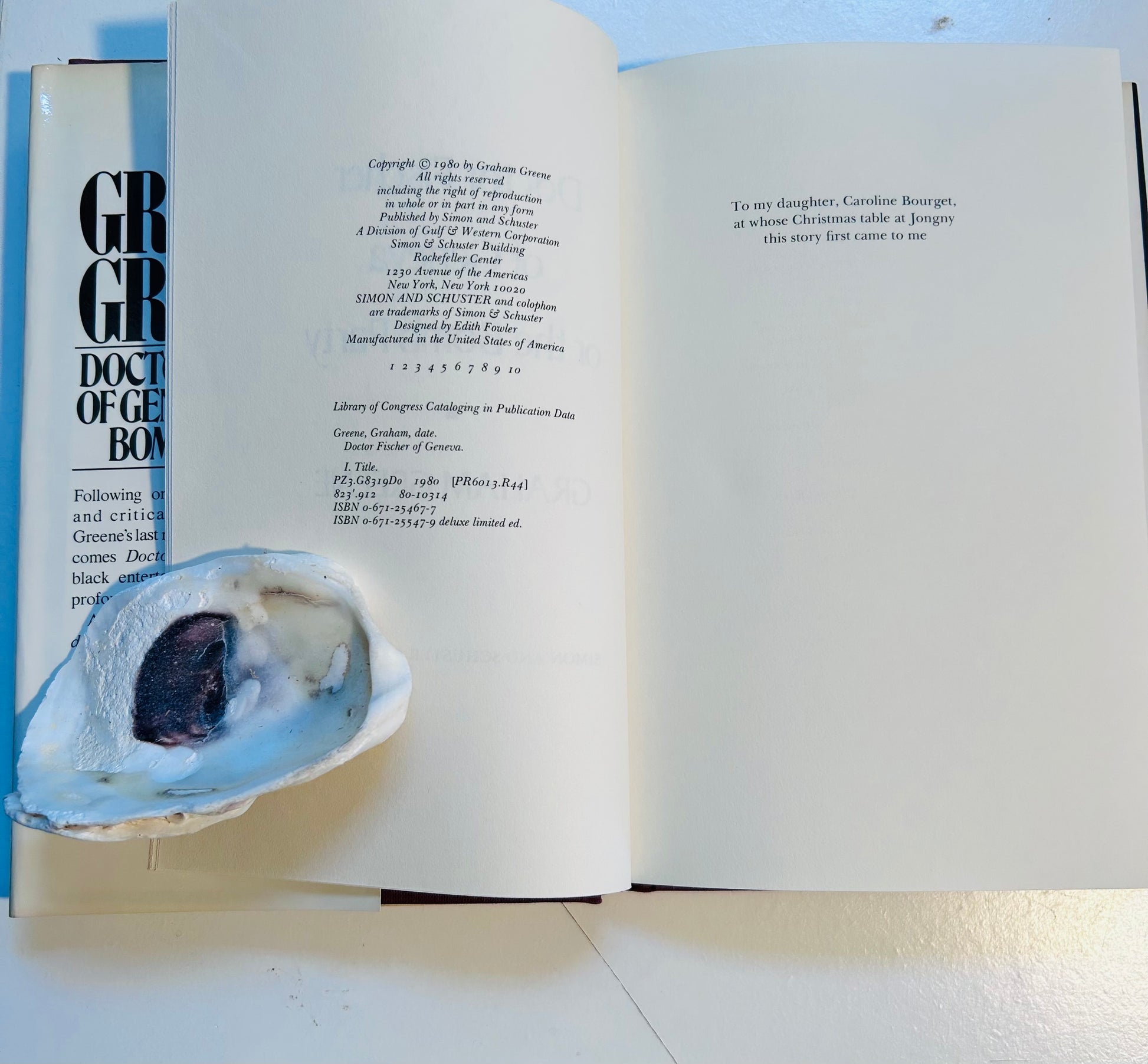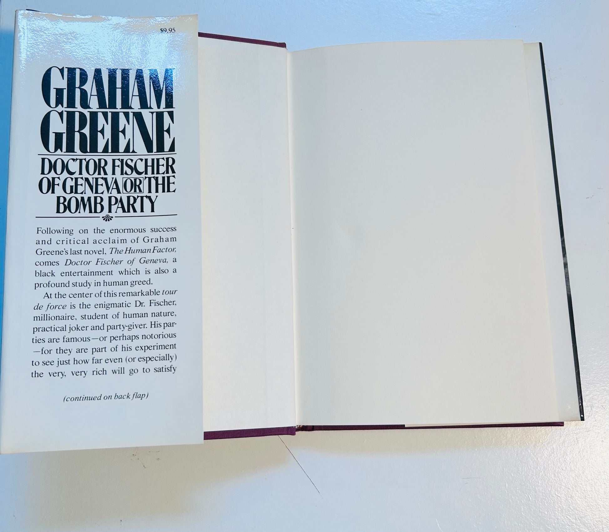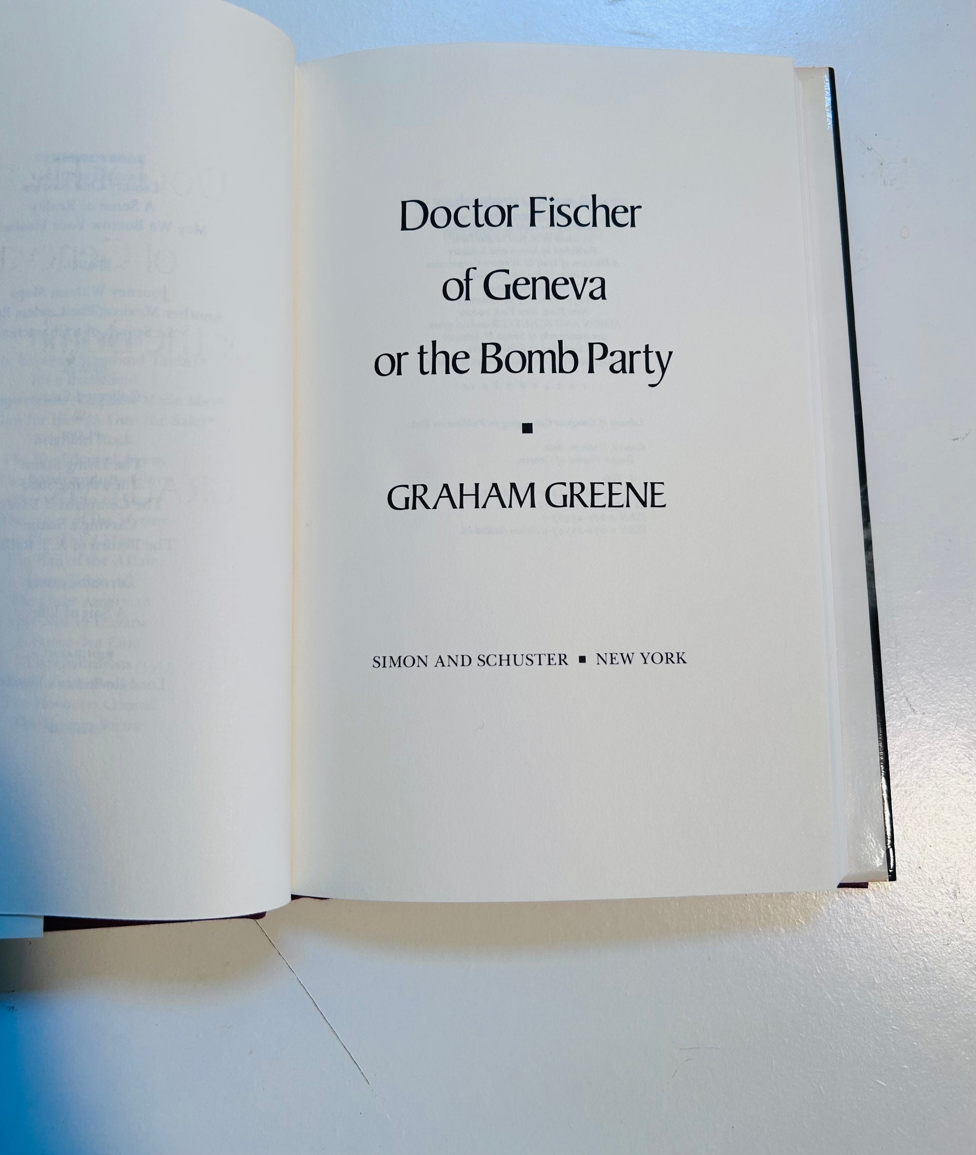 Step into the sharp, satirical world of Graham Greene with this first edition, first printing of Dr. Fischer of Geneva or The Bomb Party, published in 1980 by Simon and Shuster (New York) and The Bodley Head (London). Greene, known for his penetrating explorations of human nature, delivers a biting novella that examines greed, cruelty, and the moral decay of the ultra-rich.