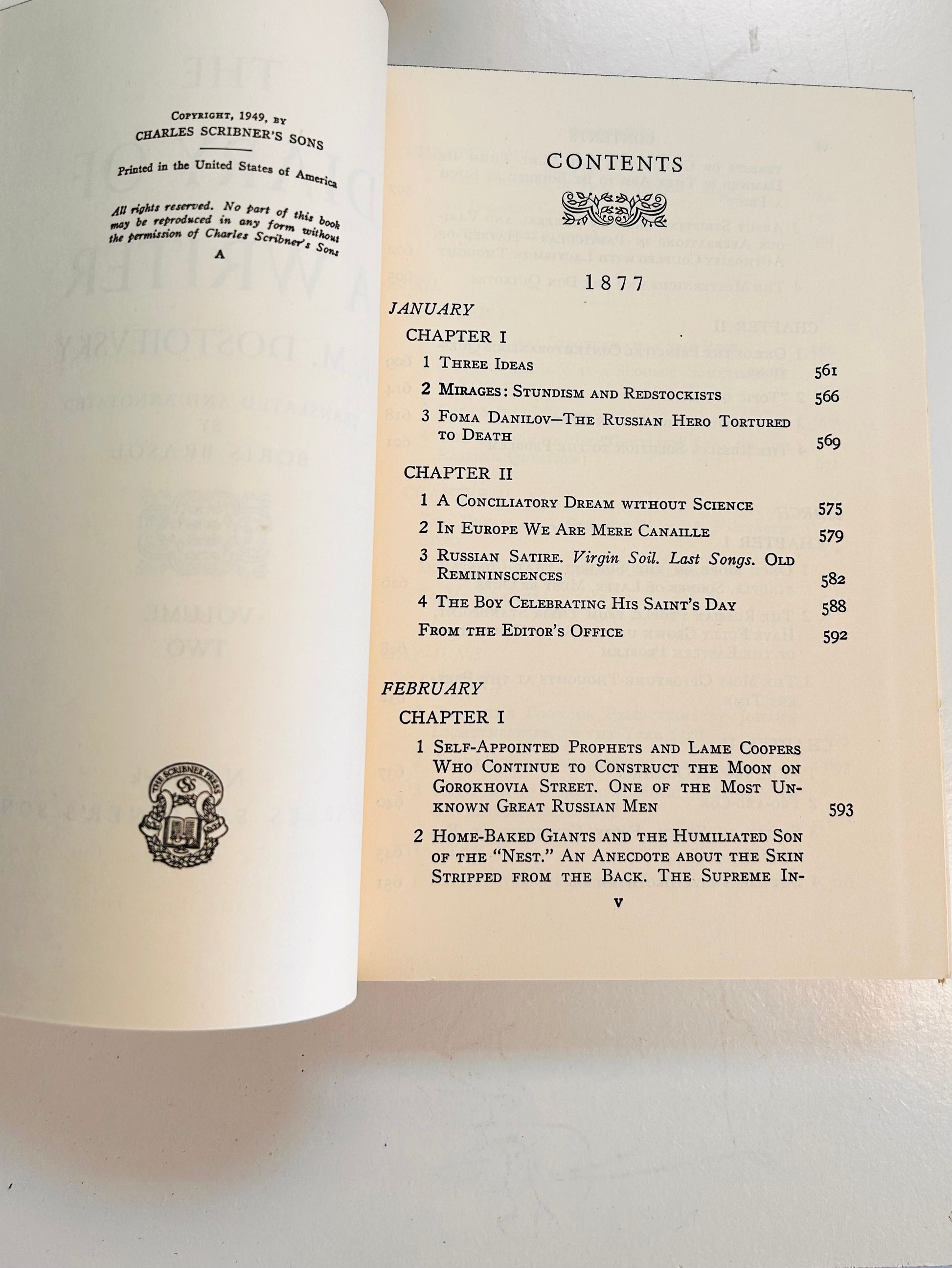 F.M. Dostoeivsky. First edition, first printing. Two volume box set. New York: Charles Scribner's Sons, 1949. Translated by Boris Brasol. Slipcase is in Very Good+ condition, with some wear but in overall good shape. Both hardcovers are in Near Fine condition. No writing or markings in either book. The Scribner seal and "A" on copyright pages in both editions. Scarce in slipcase.